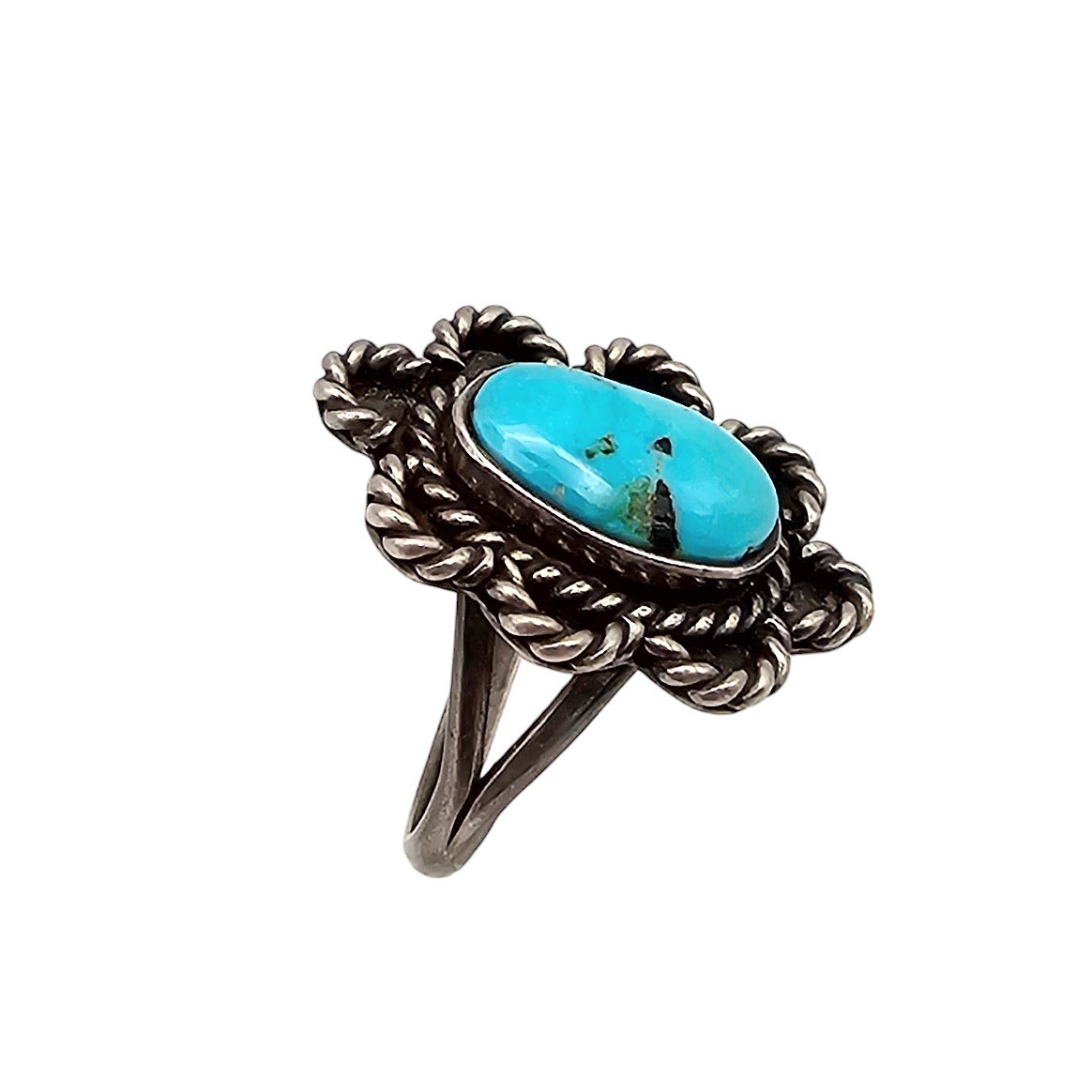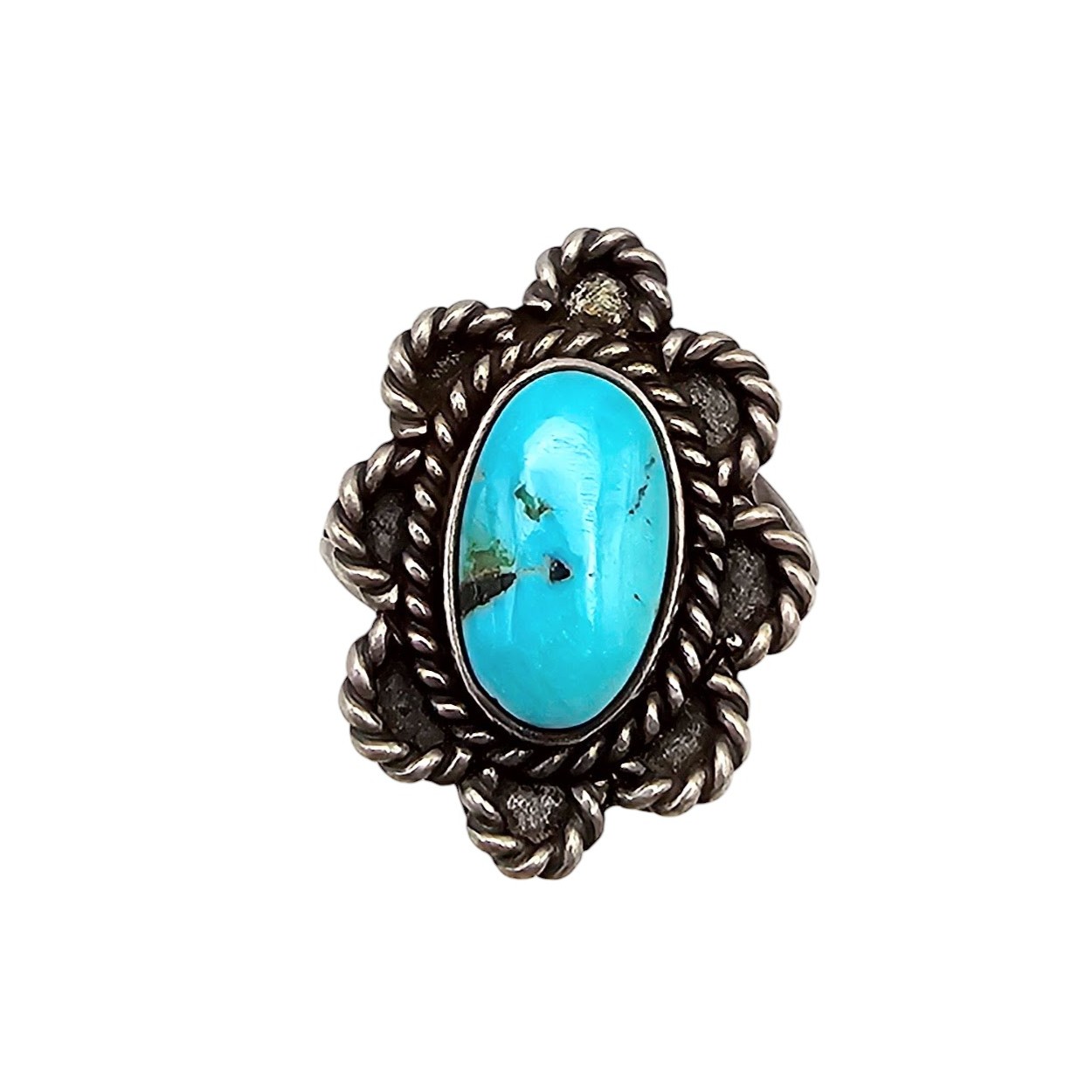 Turquoise Sterling Silver Flower Ring Size 6.5 4.7 G