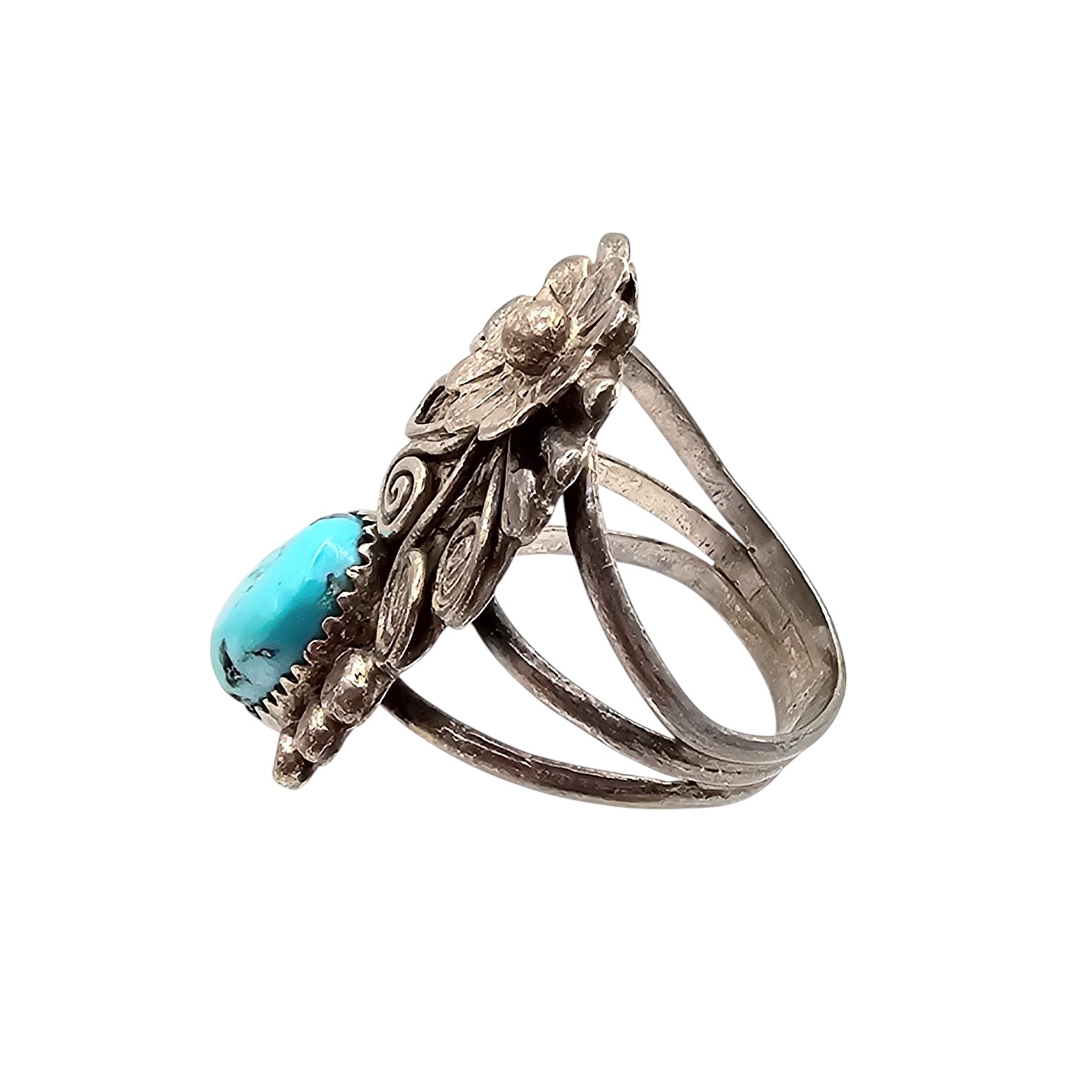 Navajo Turquoise Floral Sterling Silver Ring Size 7.25 8.1 G