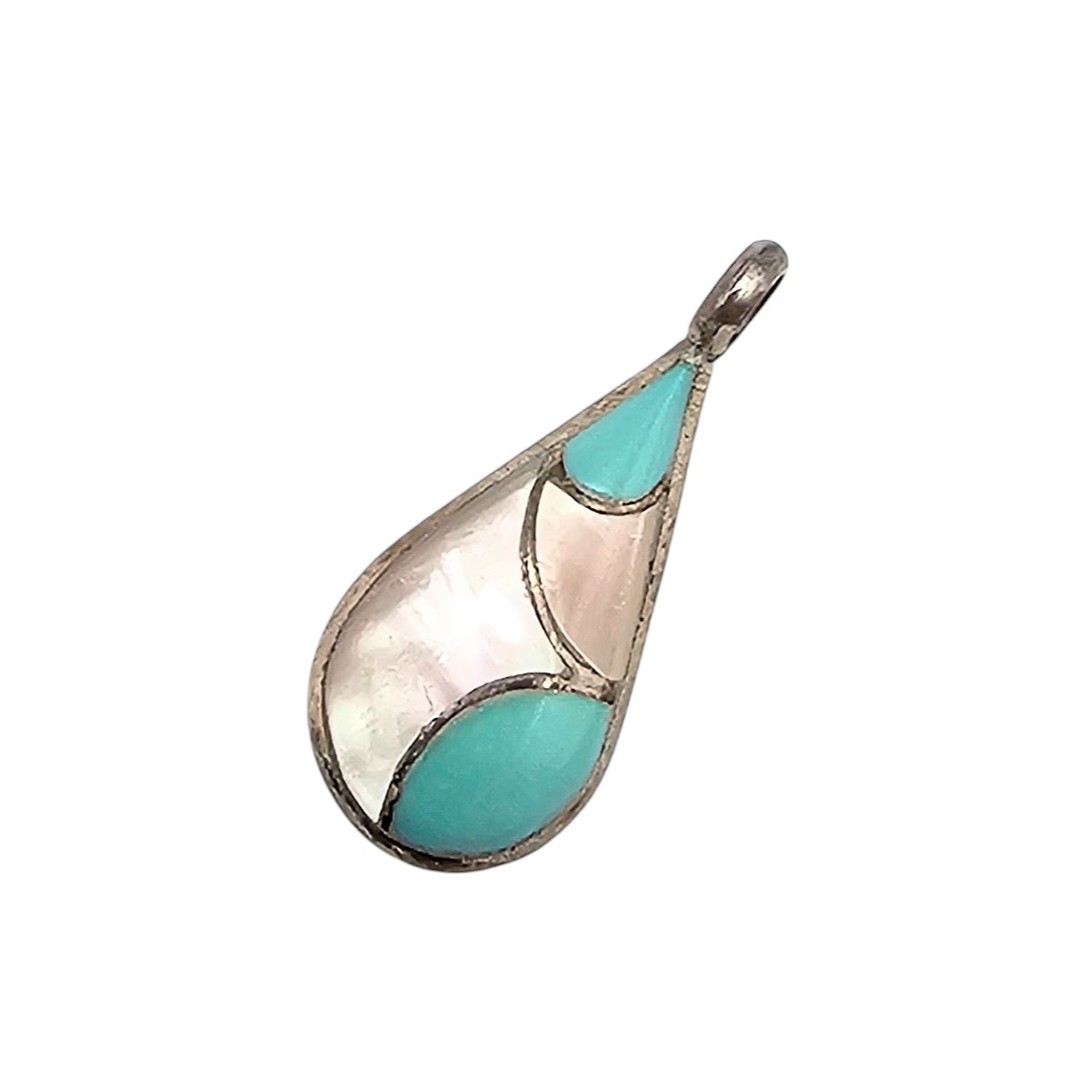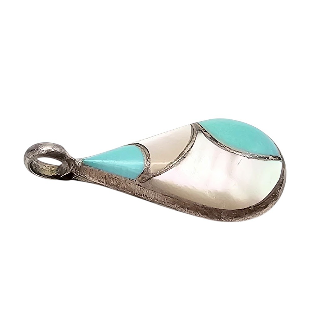 Abel Toledo Navajo Mother of Pearl Turquoise Sterling Silver Pendant 1.6 G