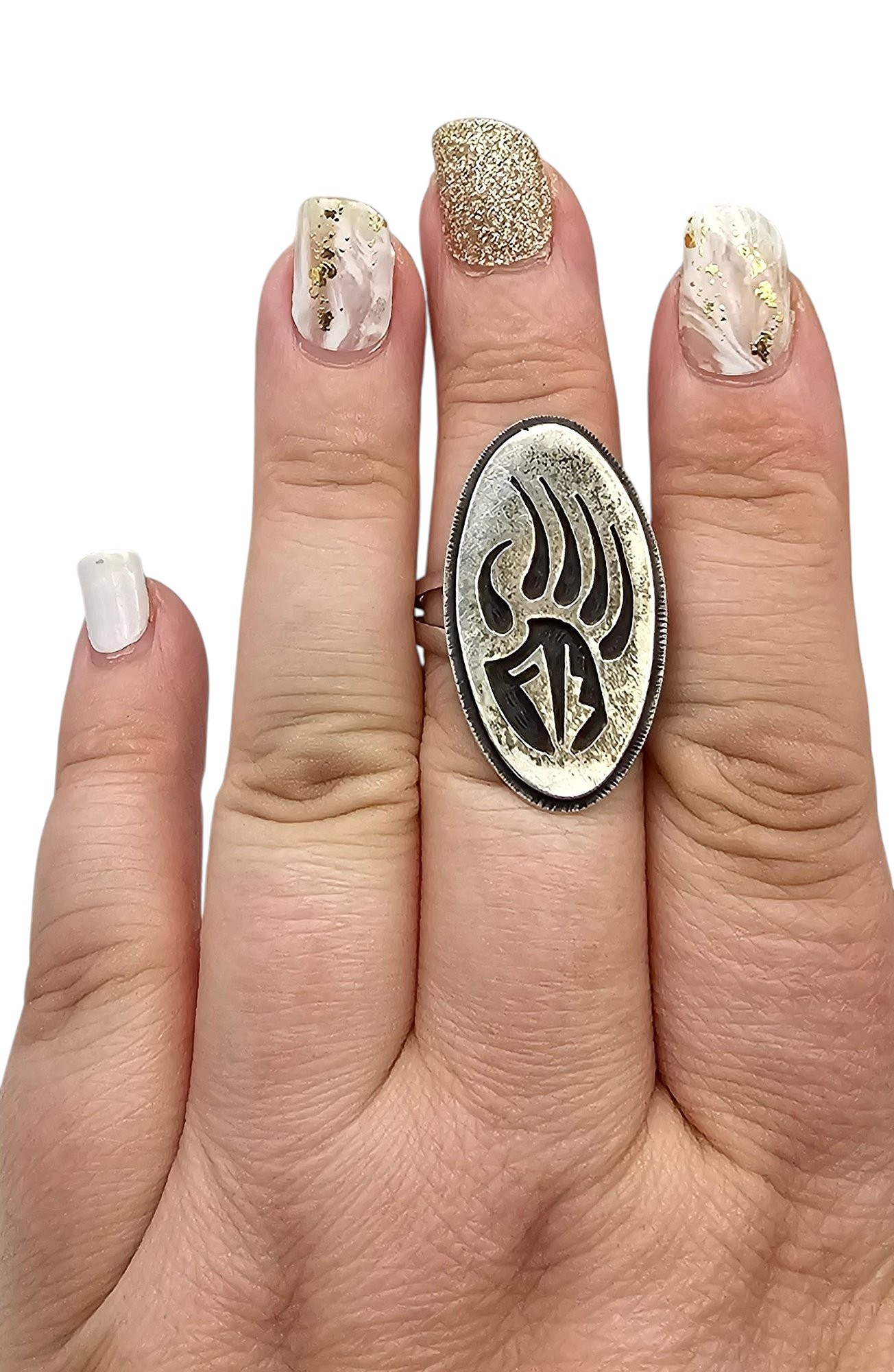 Hopi Layered Sterling Silver Bear Paw Ring Size 8 6.8 G
