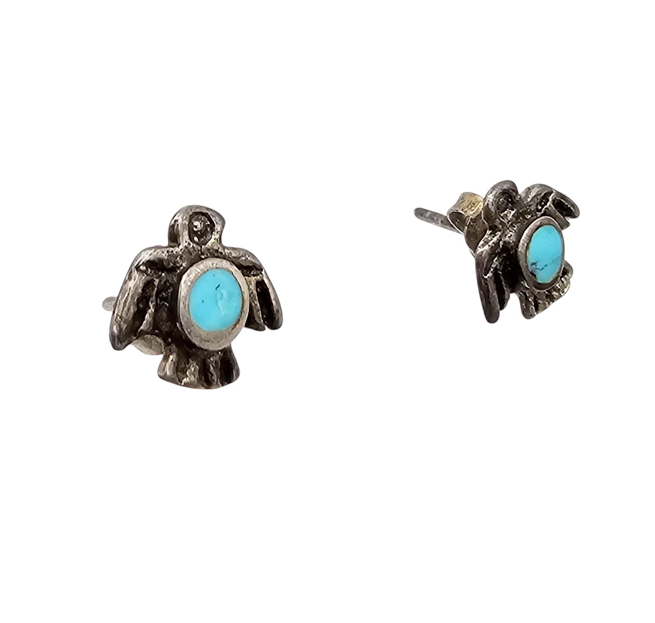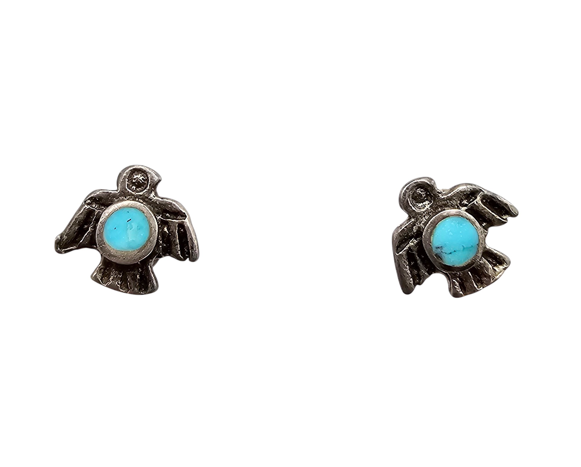 Navajo Turquoise Sterling Silver Bird Earrings 1.1 G