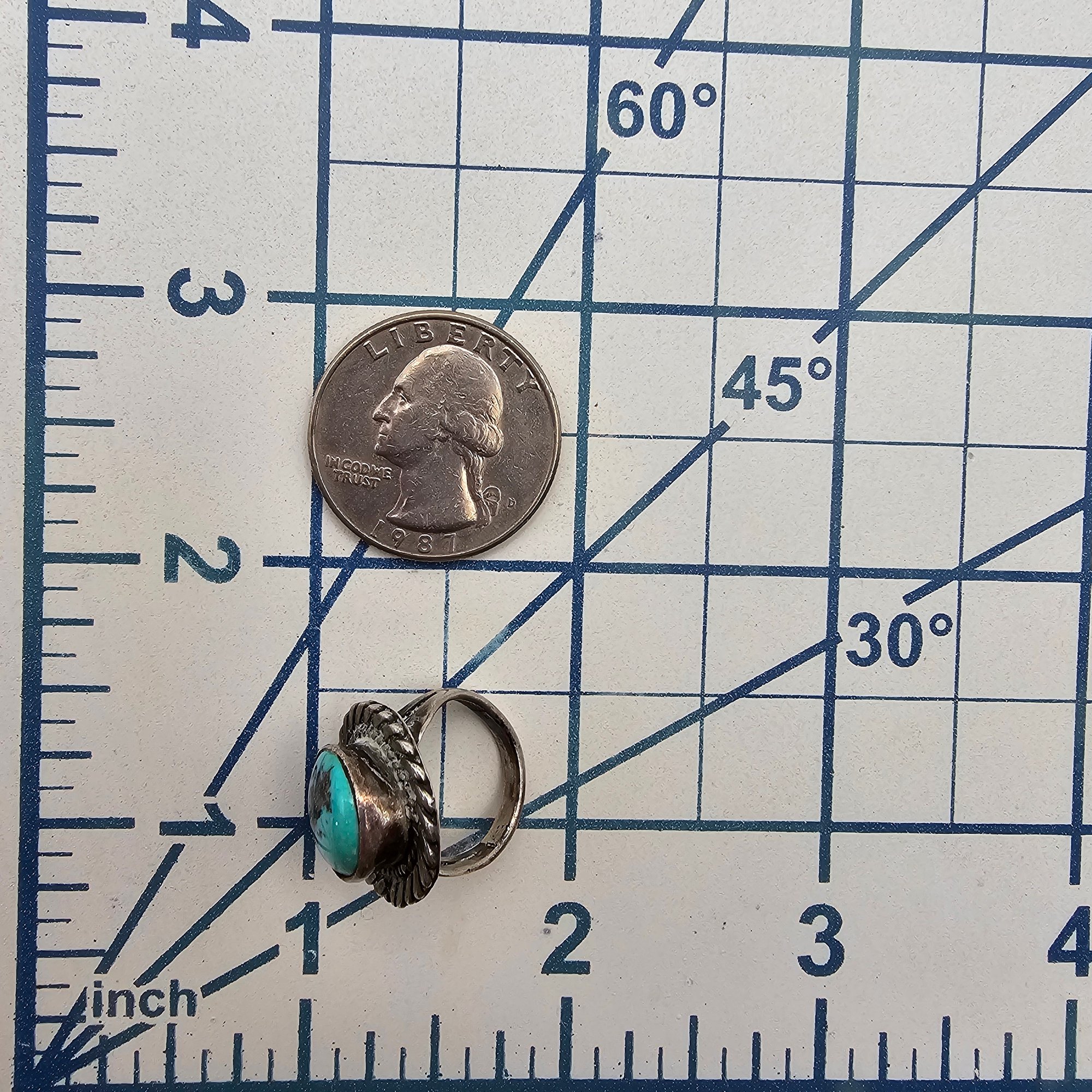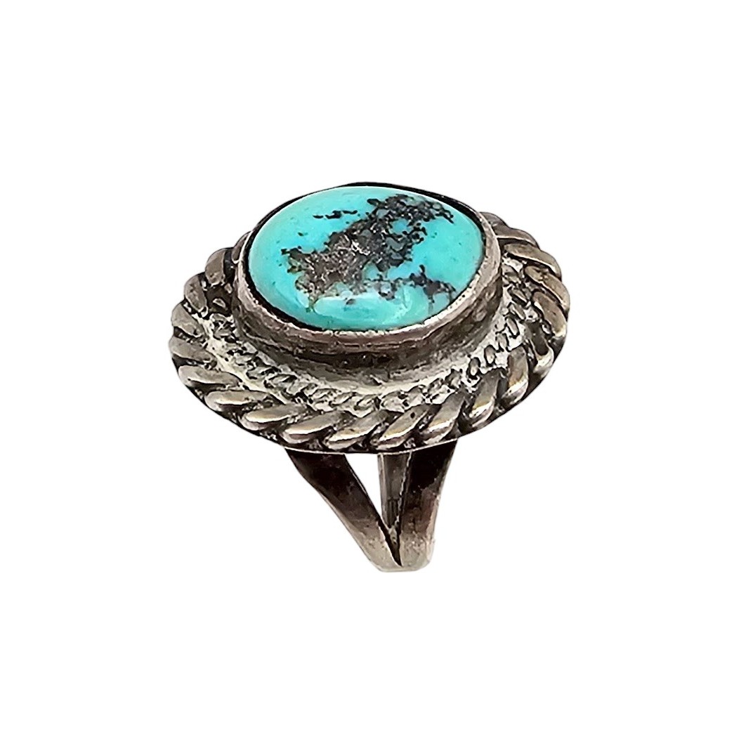 Navajo Turquoise Sterling Silver Ring Size 2 5.1 G
