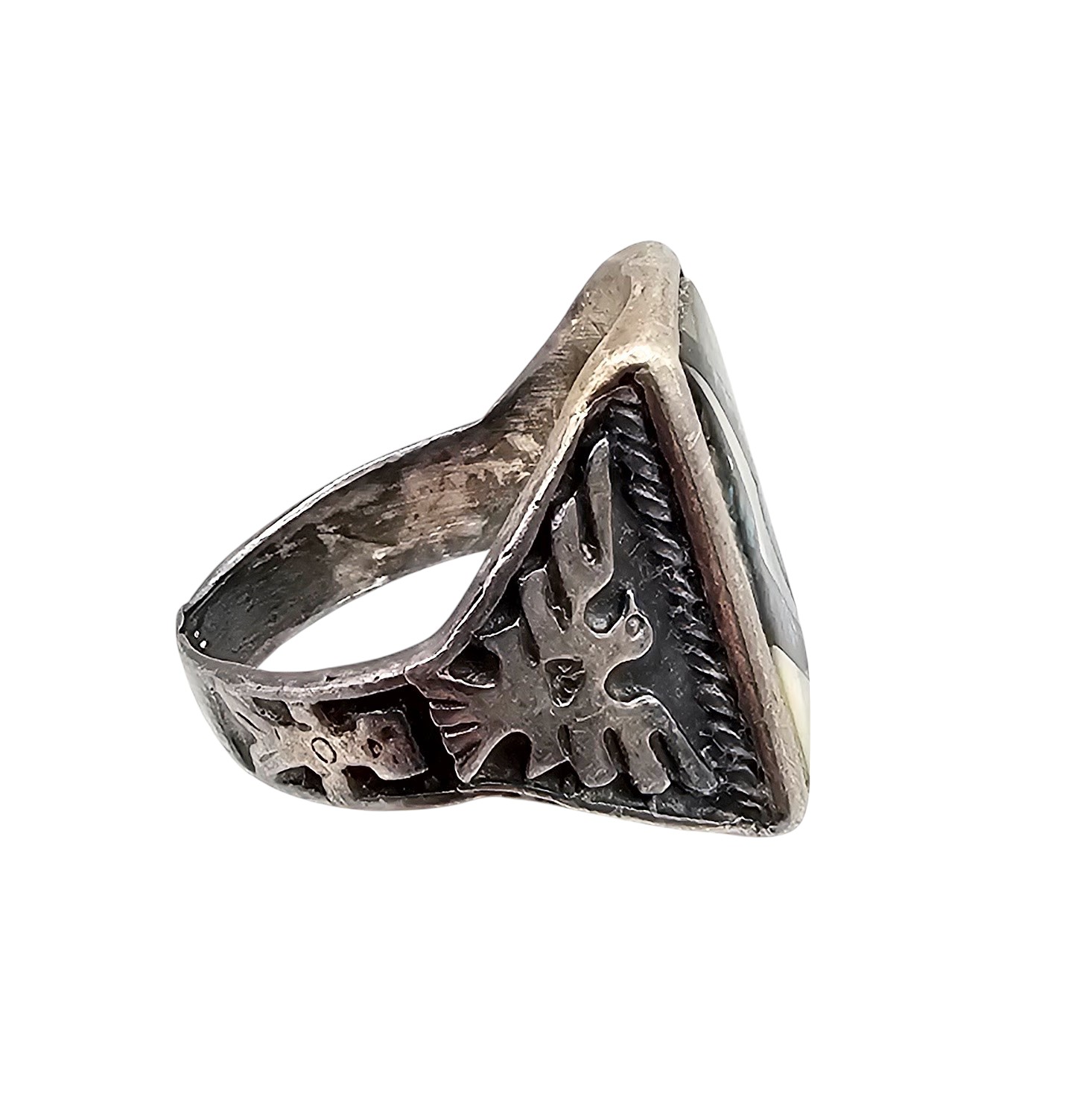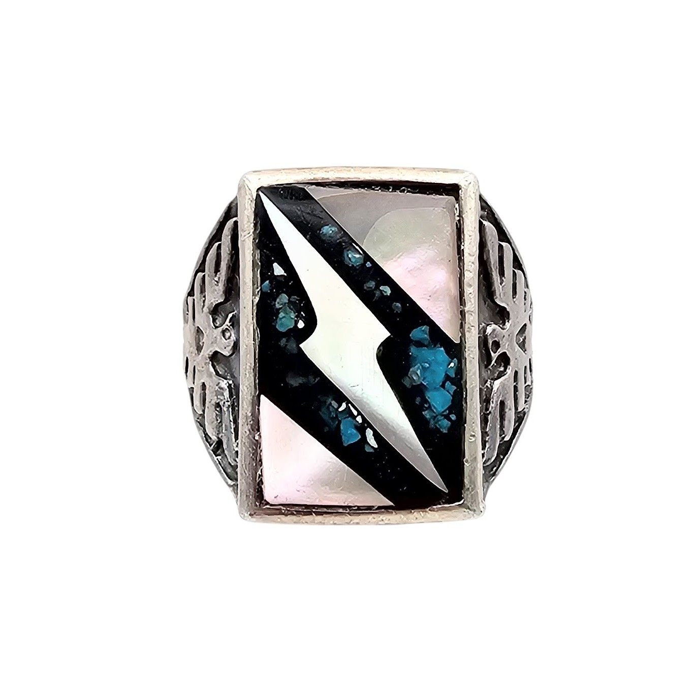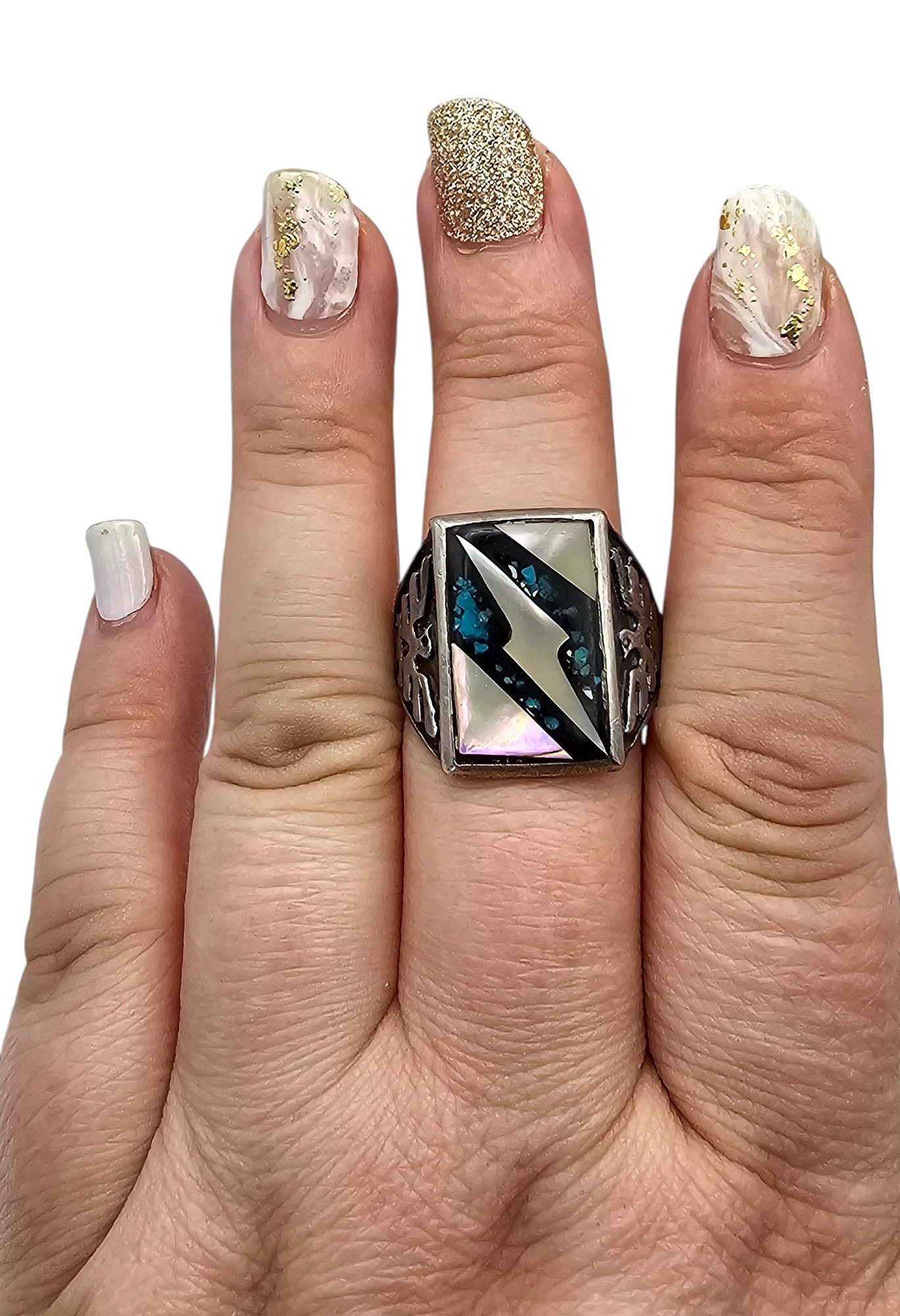Navajo Crushed Turquoise Abalone Sterling Silver Ring Size 10 10.4 G