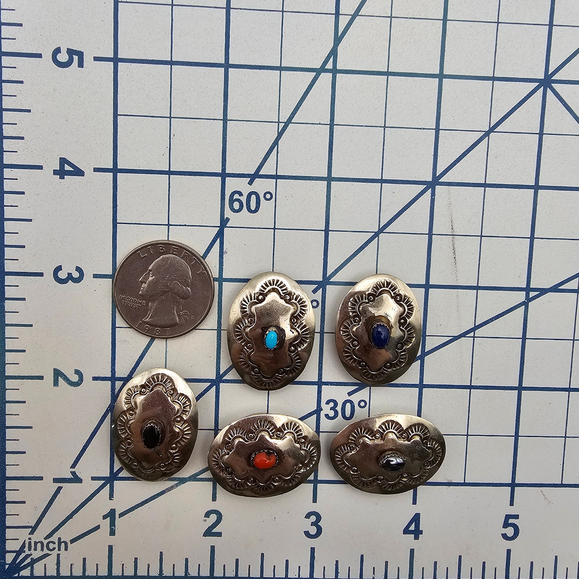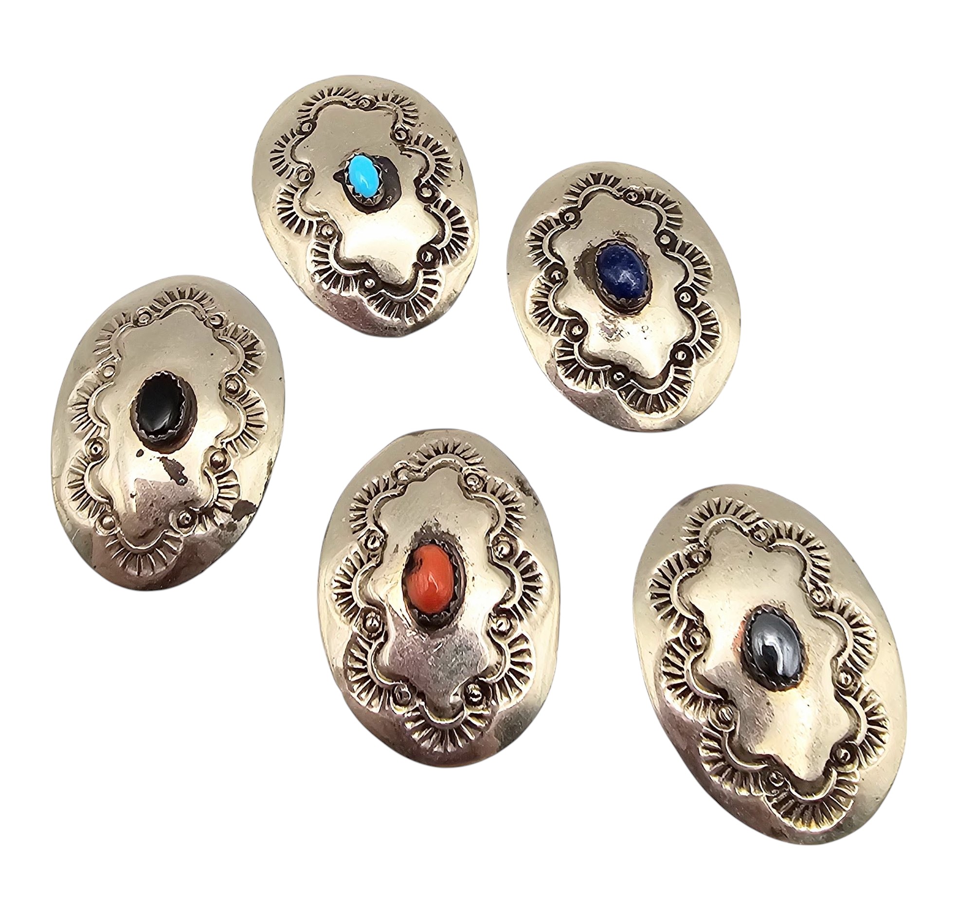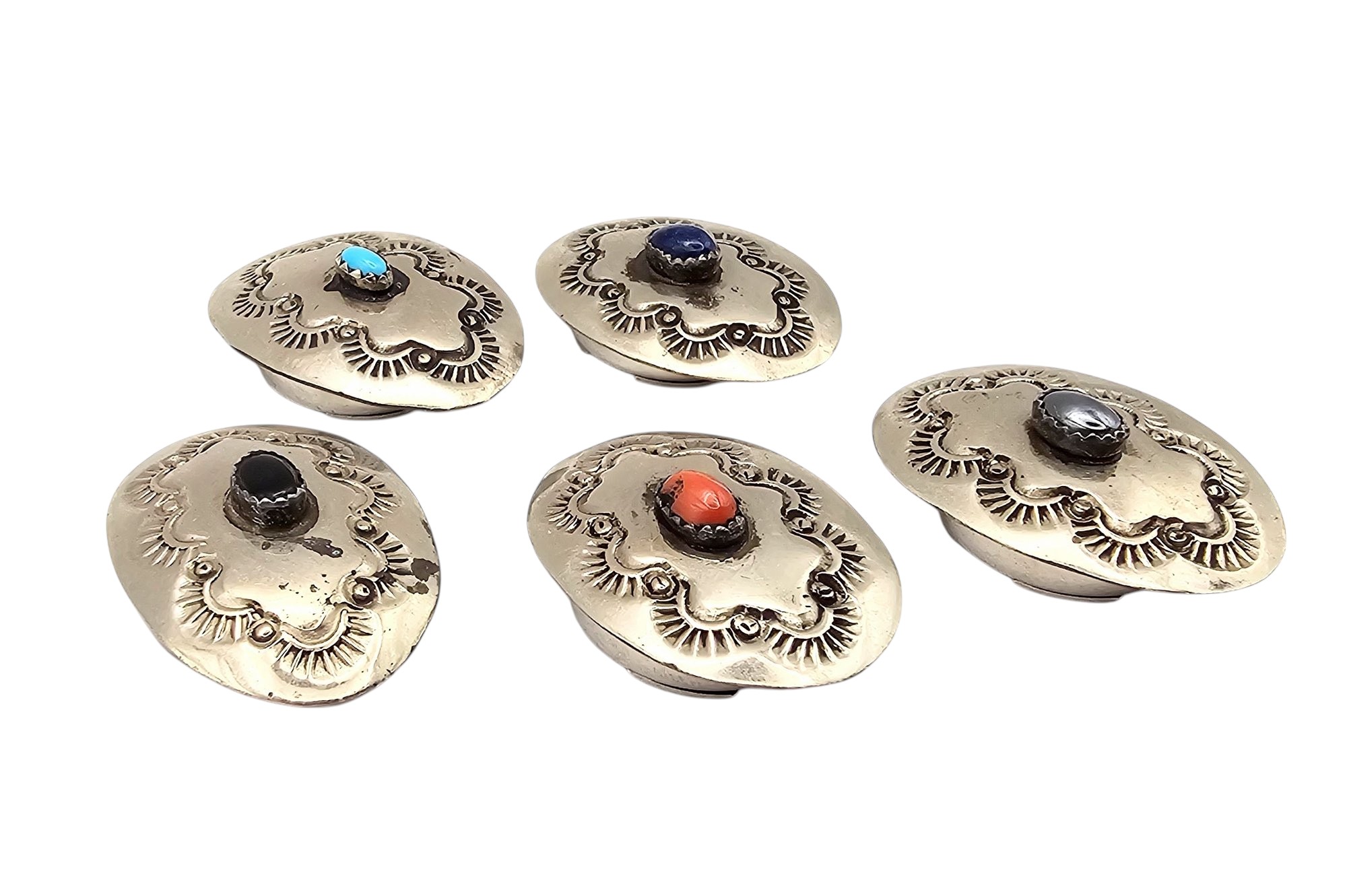 Navajo Multi Stone Sterling Silver Stamp Work Botton Covers 27.2 G