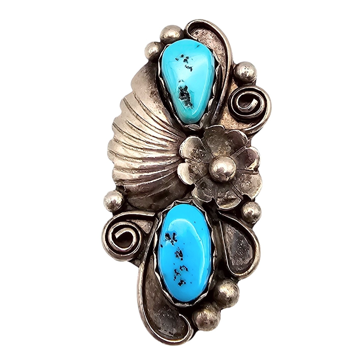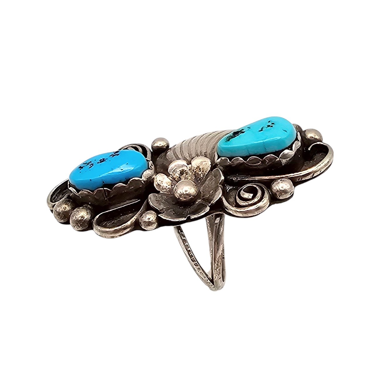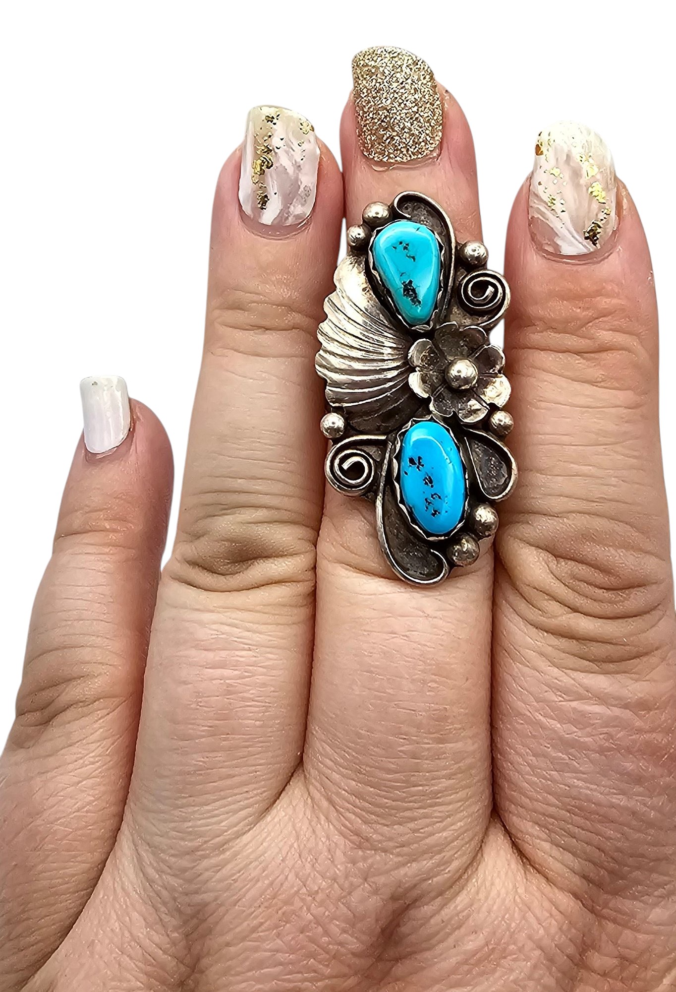 Native Double Turquoise Sterling Silver Ring Size 6.5 9.3 G