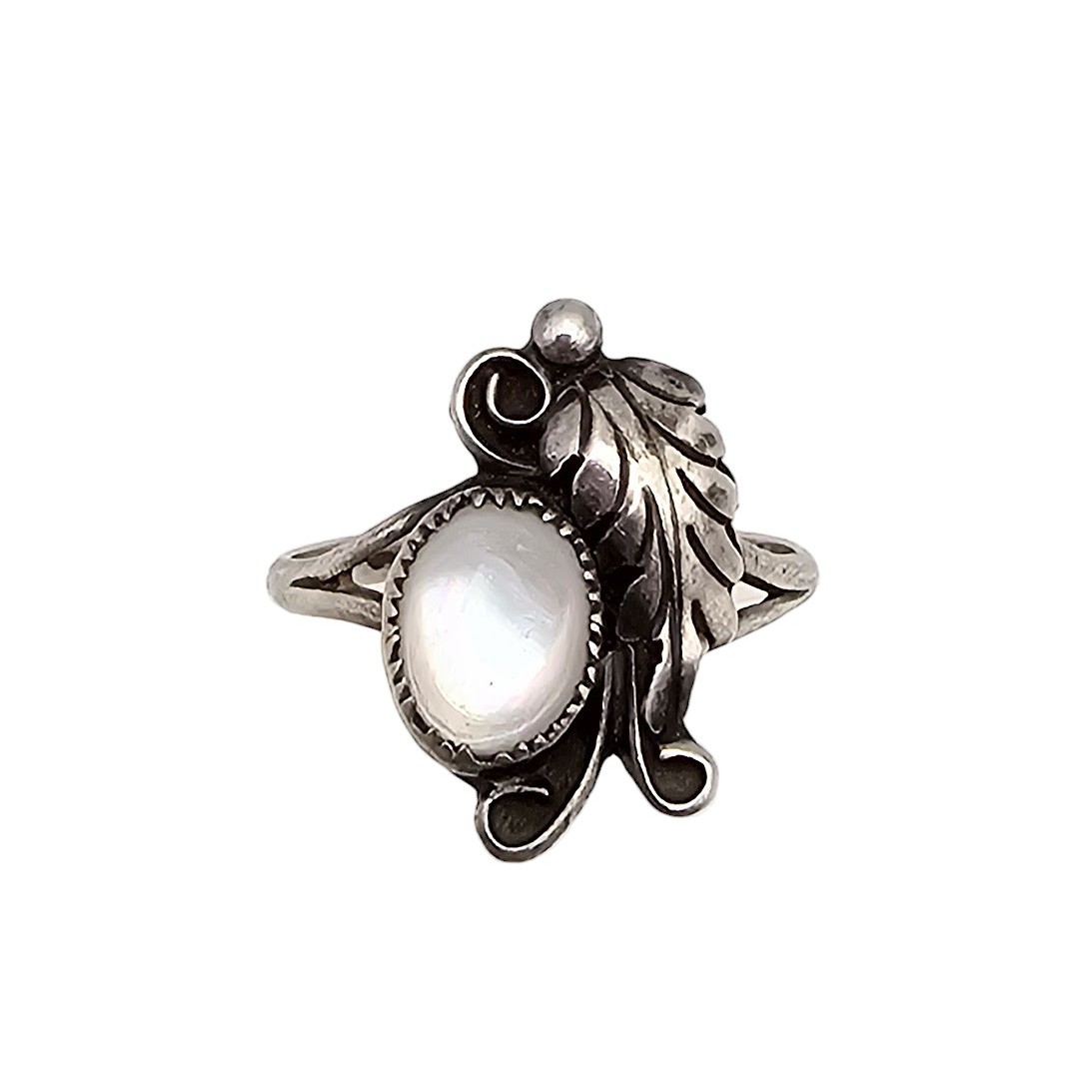 Signed L? Native Mother Of Pearl Sterling Silver Ring Size 5.5 1.8 G