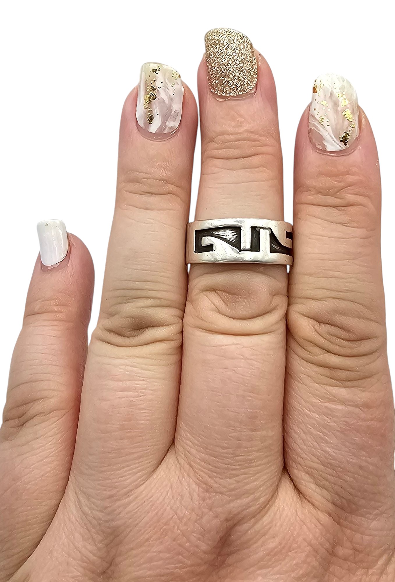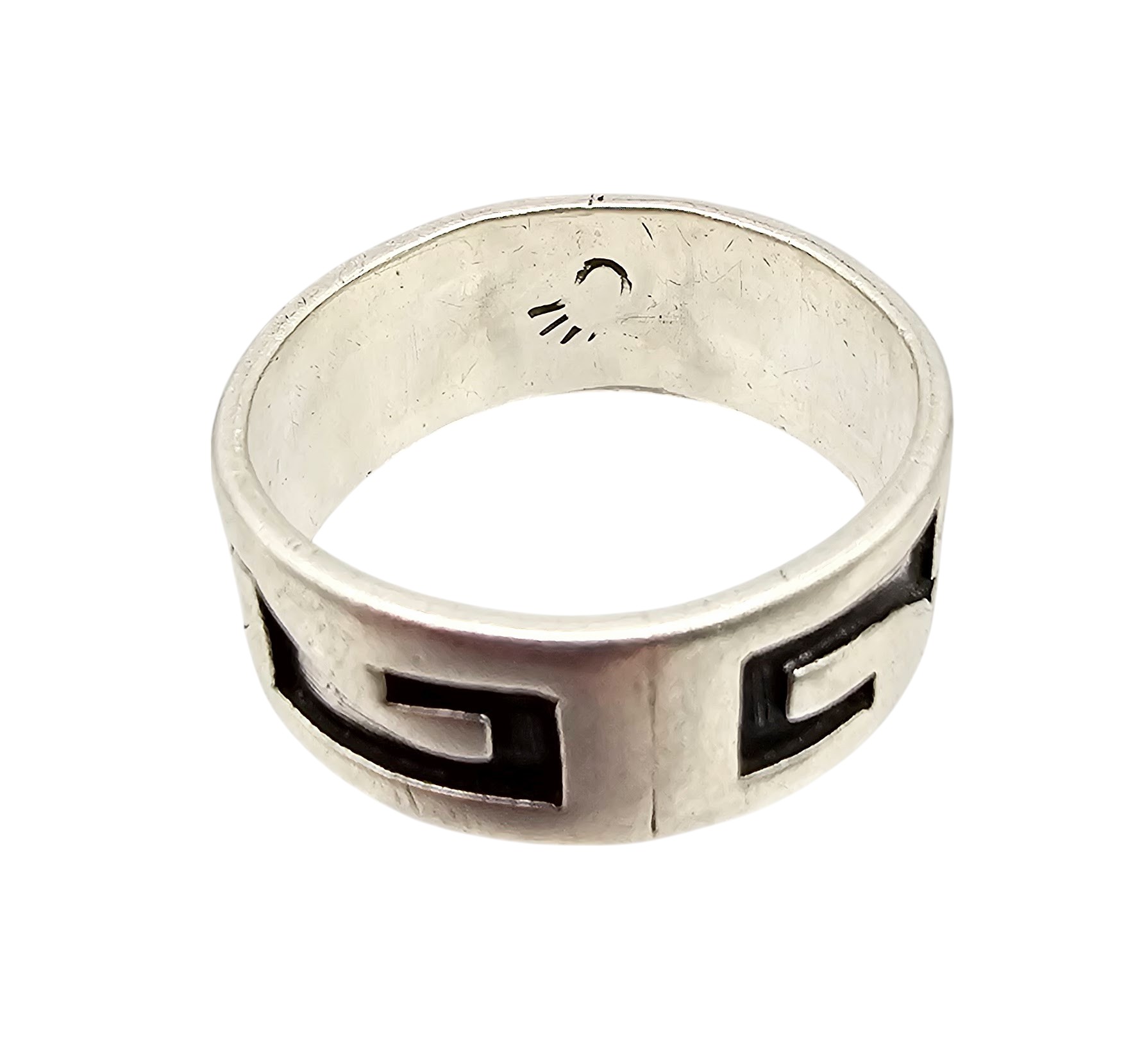 Signed Hopi? Sterling Silver Aztec Style Ring Size 8.5 4.8 G