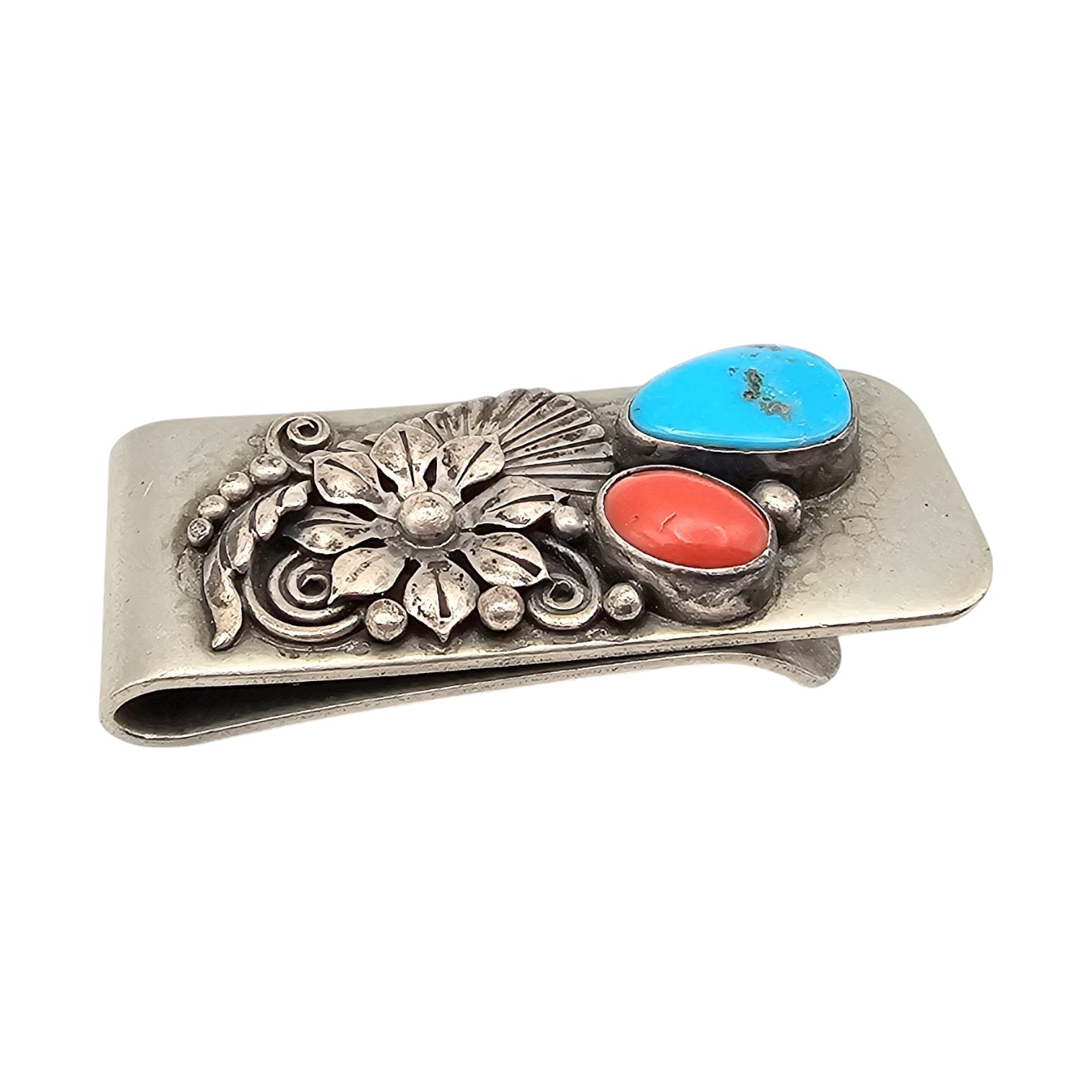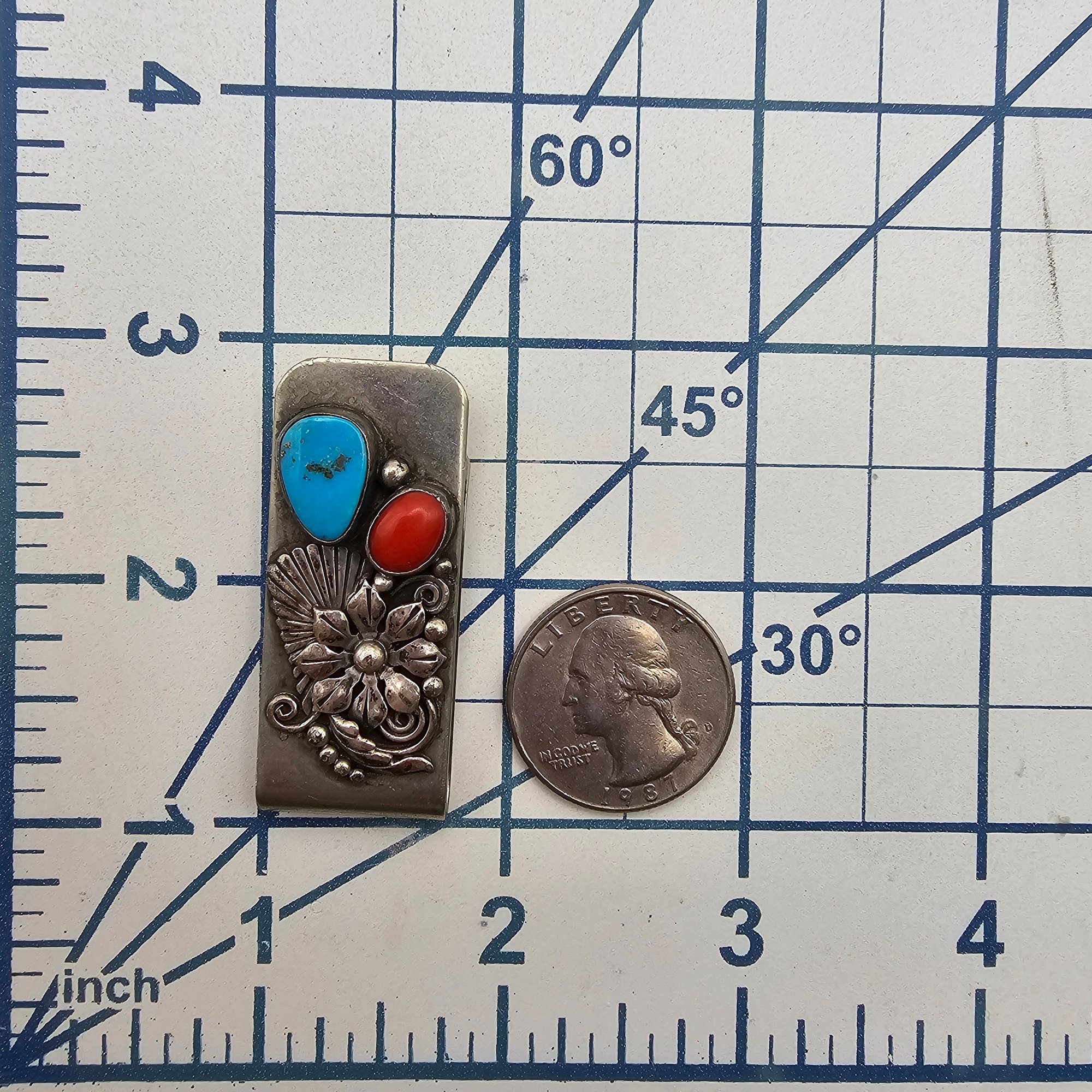 Navajo Coral Turquoise Sterling Silver Top Money Clip 19 G
