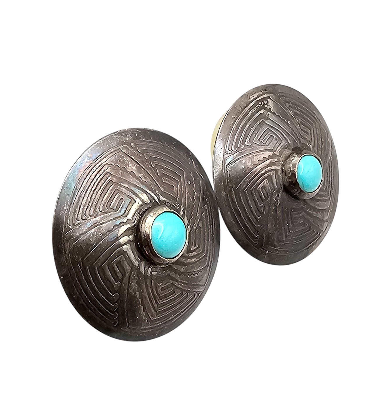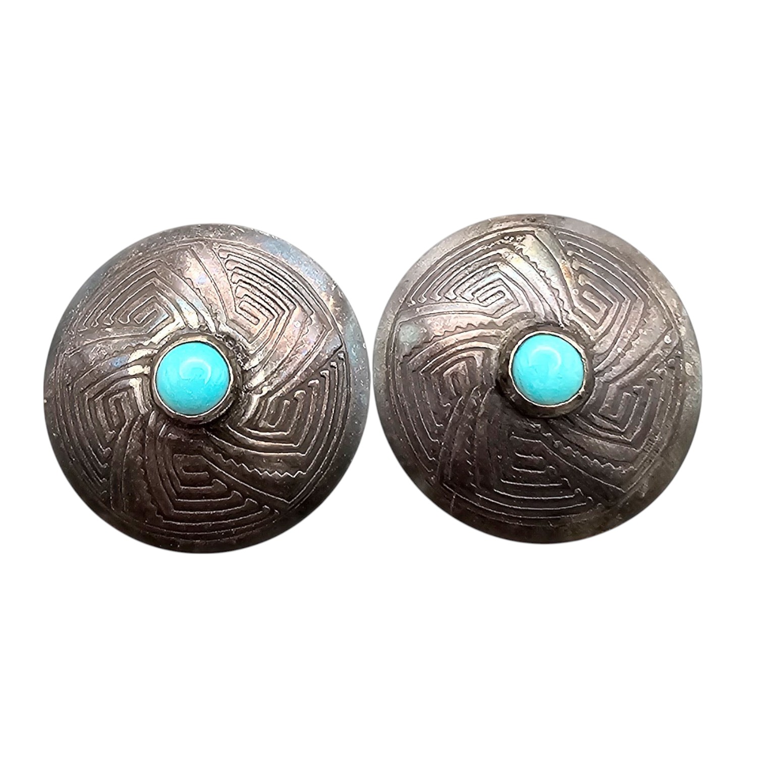 Navajo Turquoise Sterling Silver Concho Disk Earrings 6 G