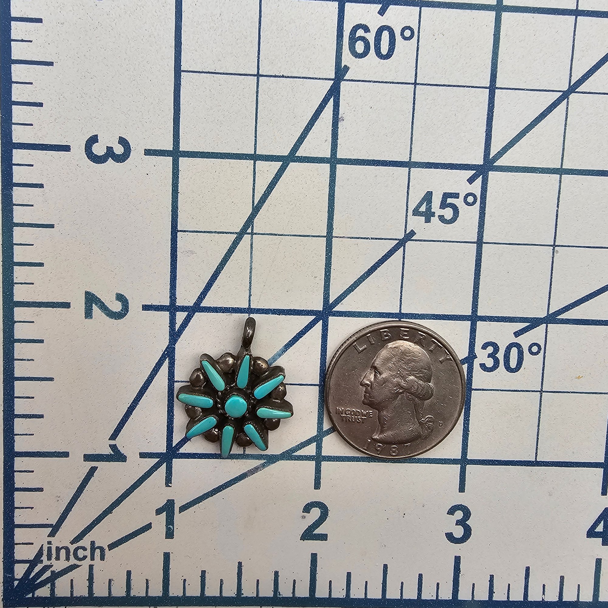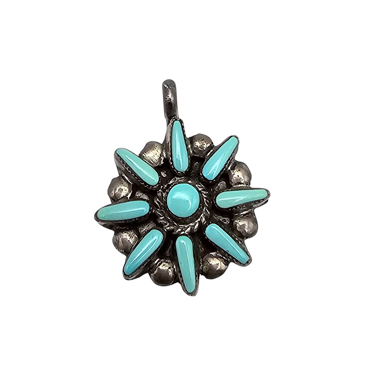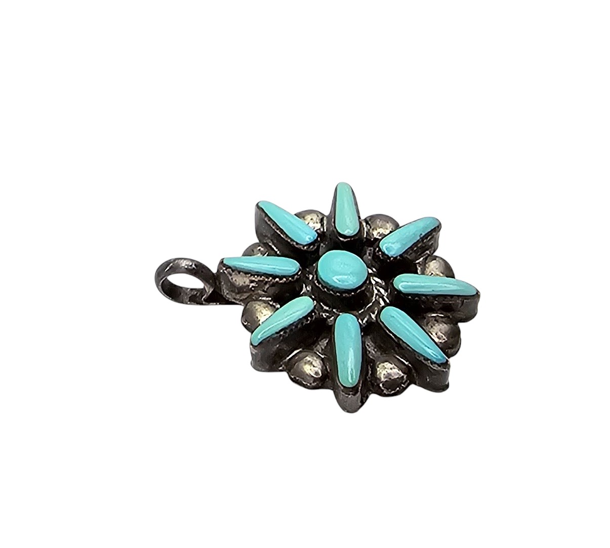 Navajo Turquoise Sterling Silver Petit Point Flower Pendant 3 G