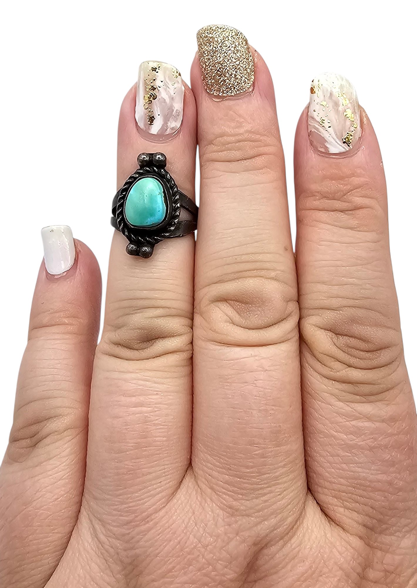 Navajo Turquoise Sterling Silver Ring Size 4 4.2 G
