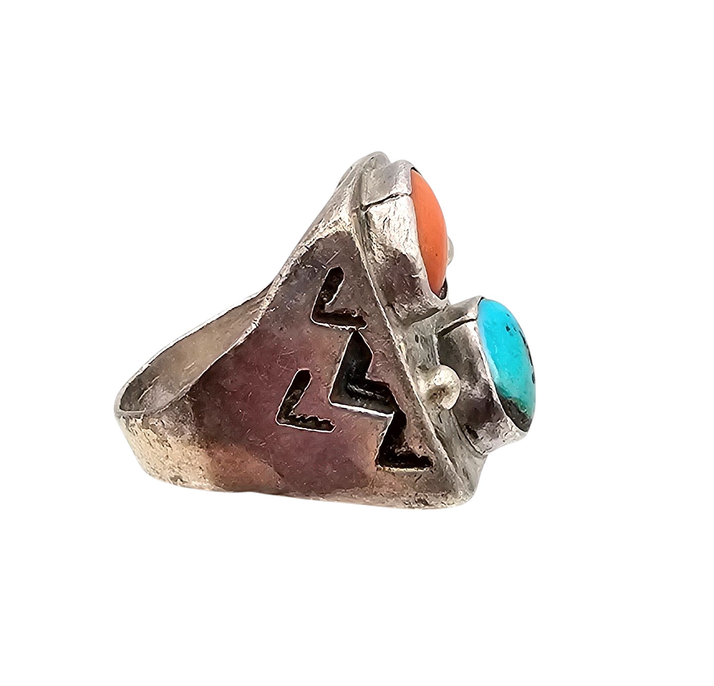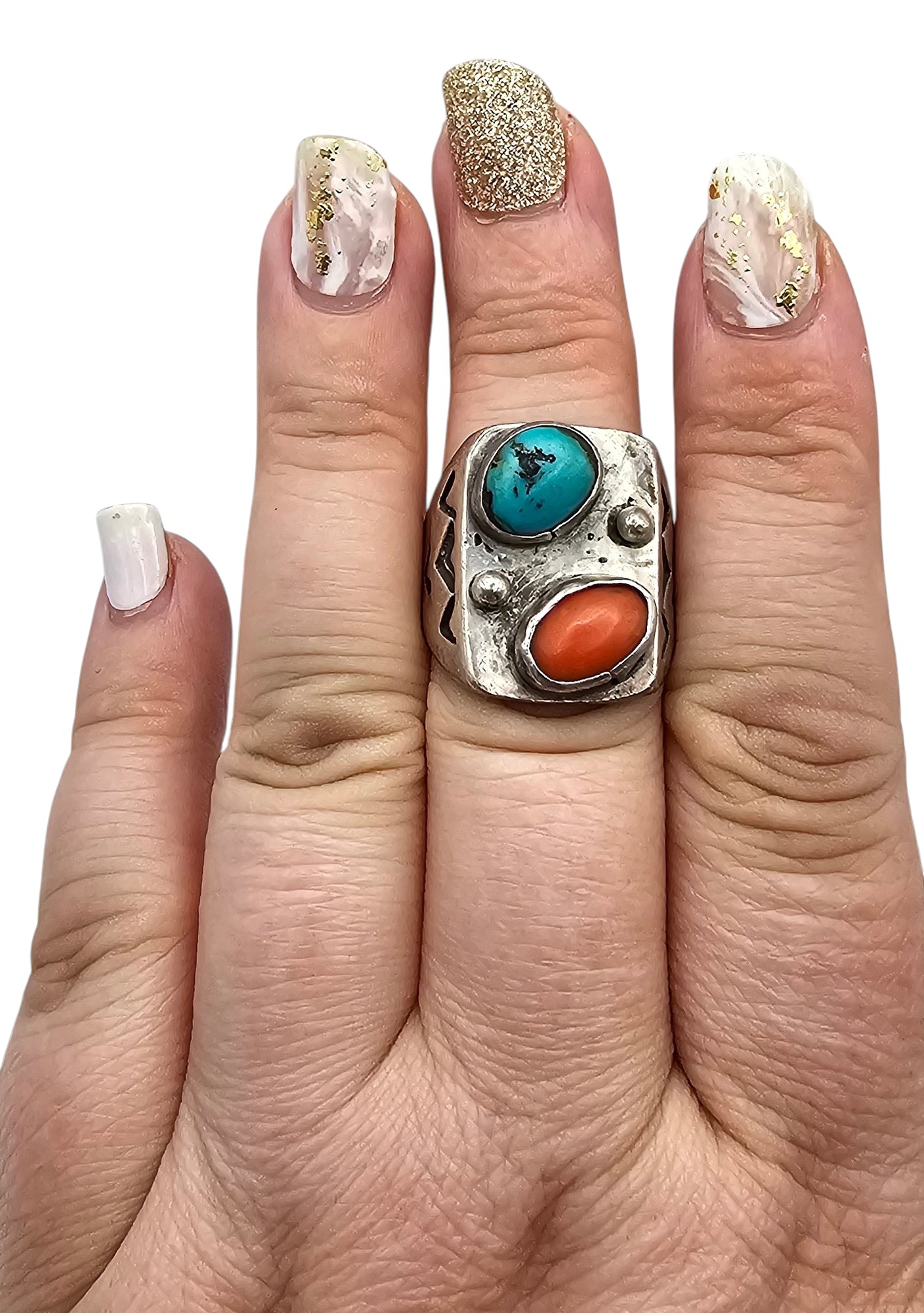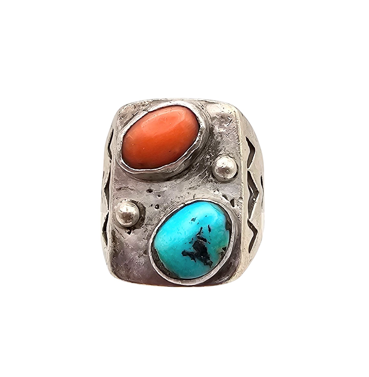 Navajo Turquoise Coral Sterling Silver Ring Size 9.75 13.2 G