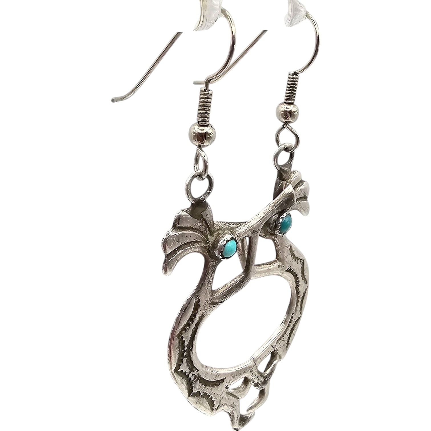 Navajo Turquoise Sterling Silver Kokopelli Dangle Earrings 4.4 G