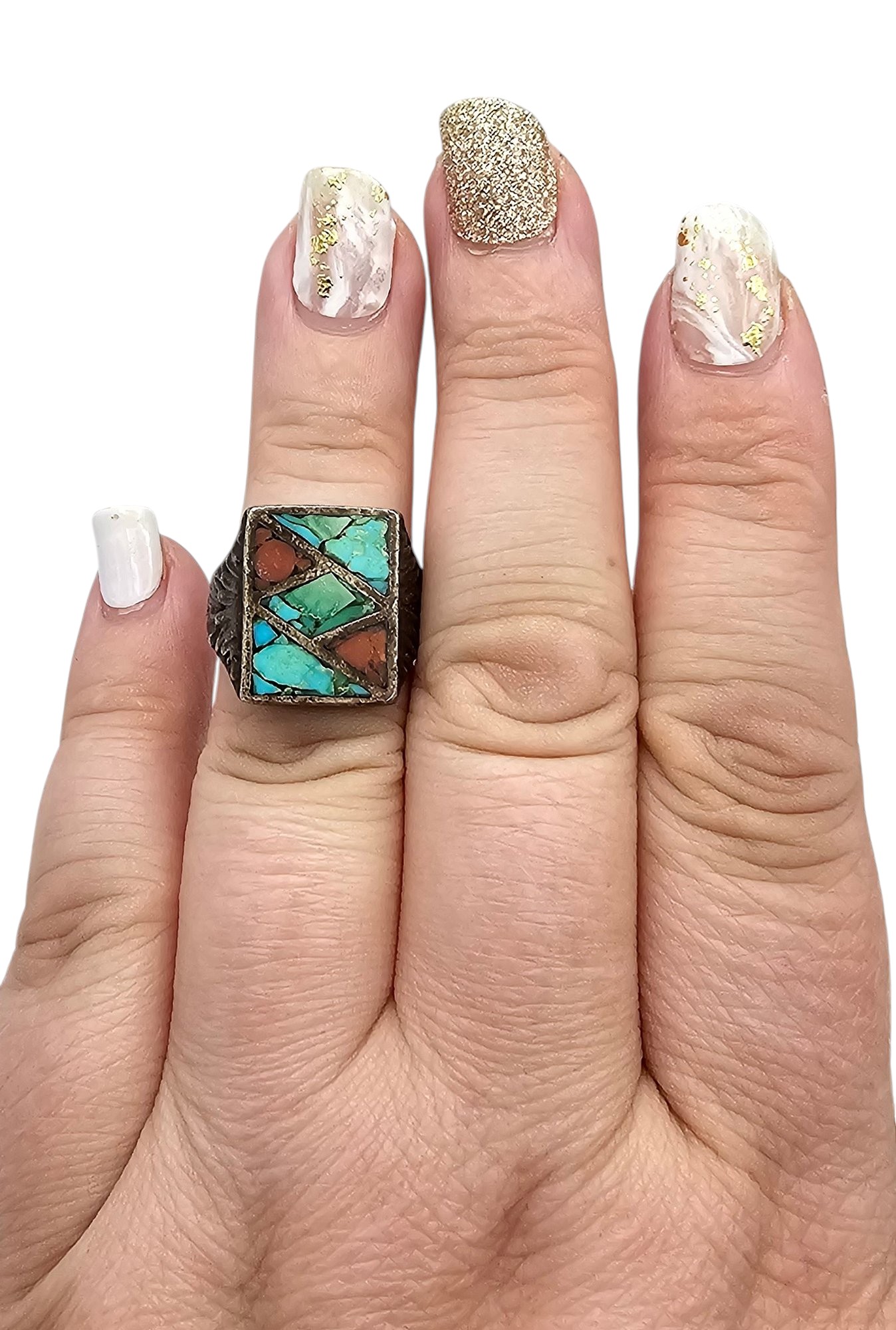 Navajo Coral Turquoise Sterling Silver Ring Size 6 10.5 G
