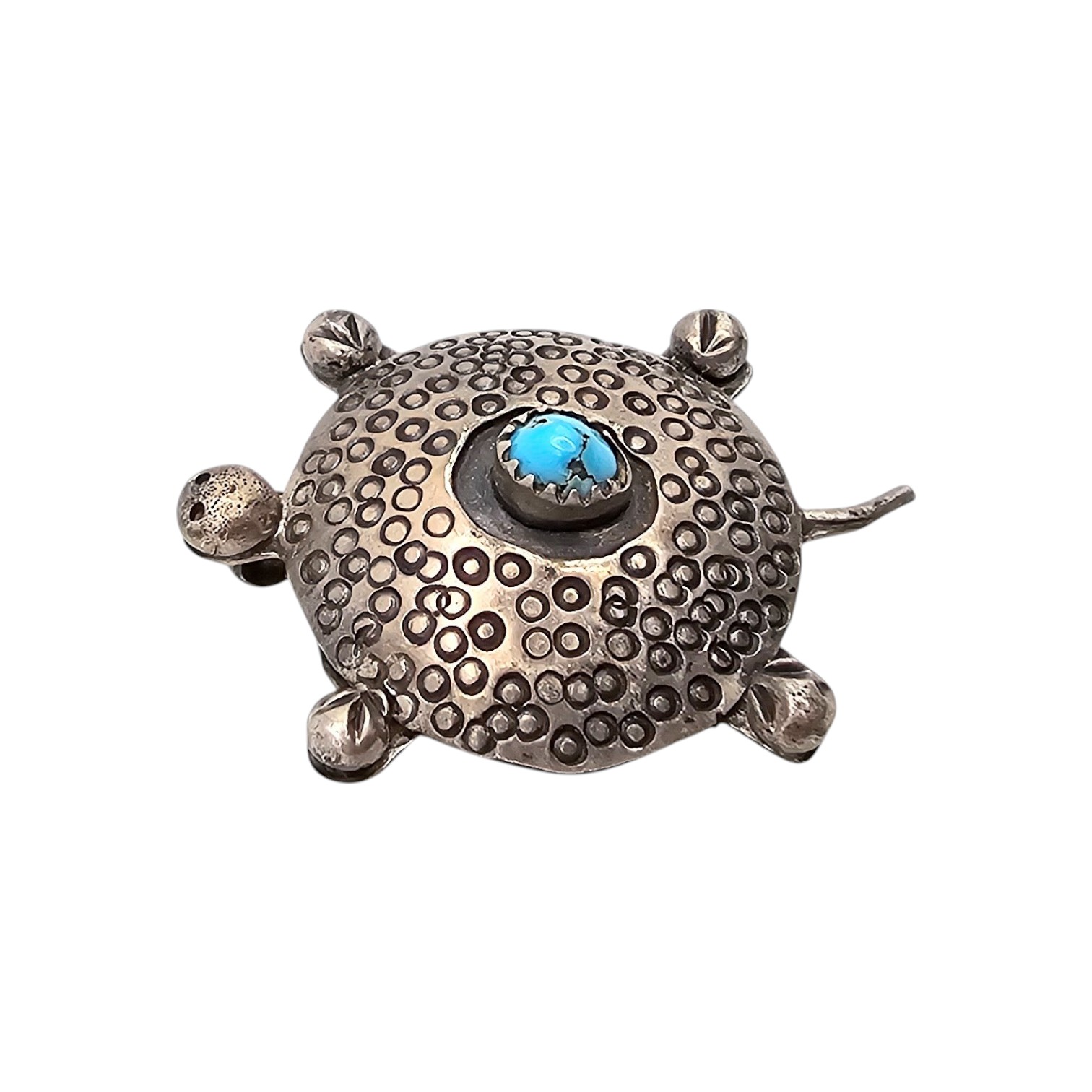 Navajo Turquoise Sterling Silver Stamped Turtle Pendant 8.9 G