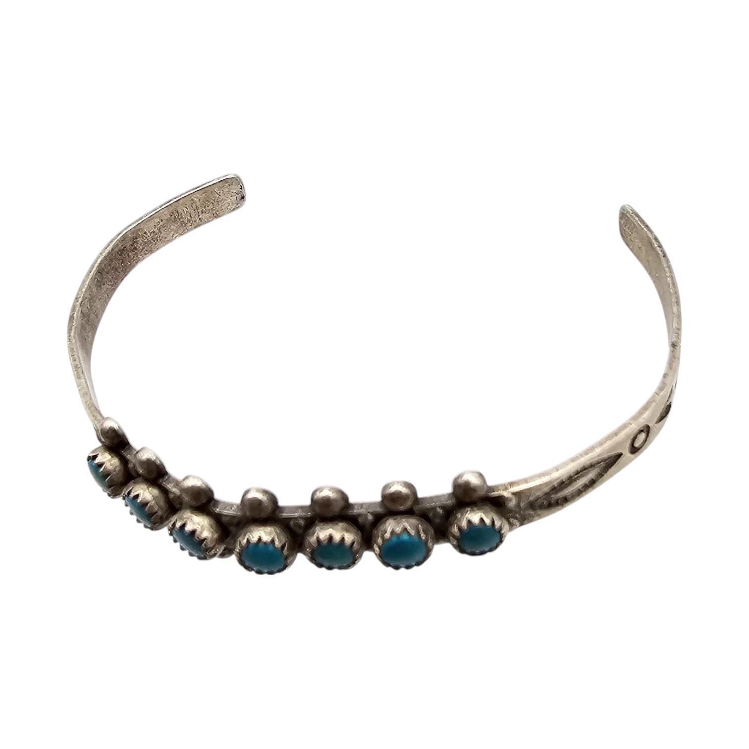 Native Turquoise Sterling Silver Baby Cuff Bracelet 4.4 G