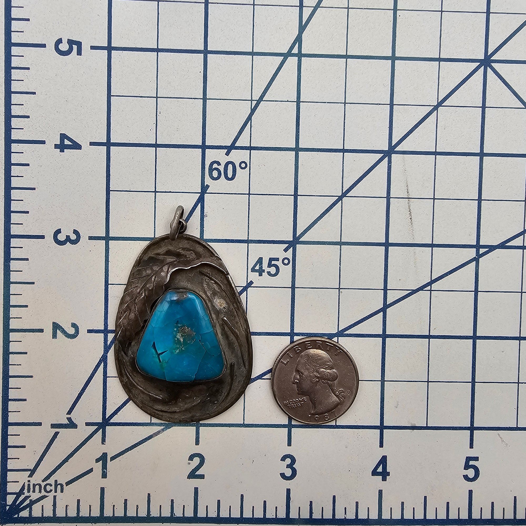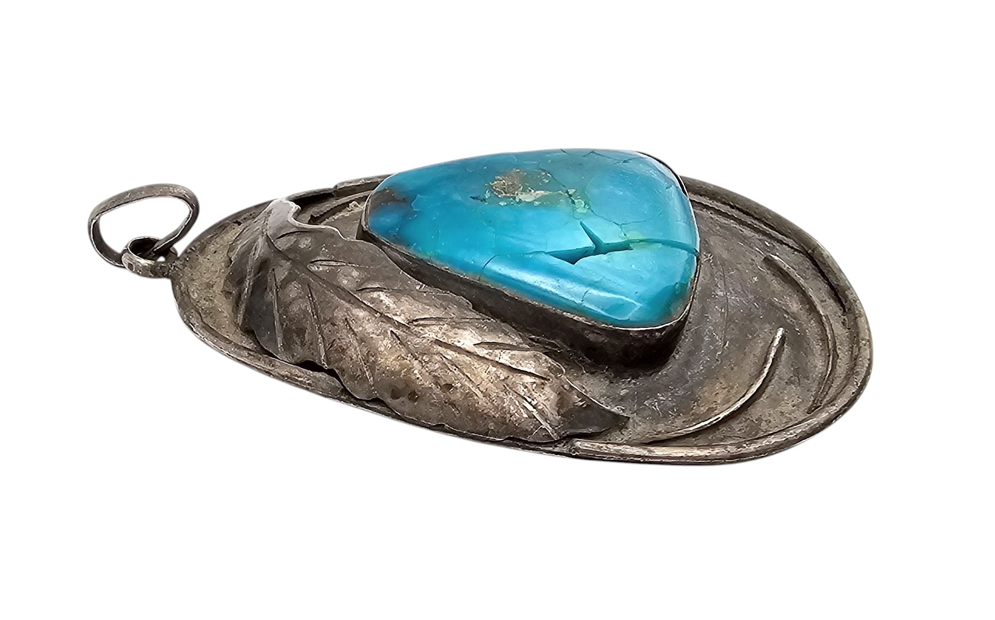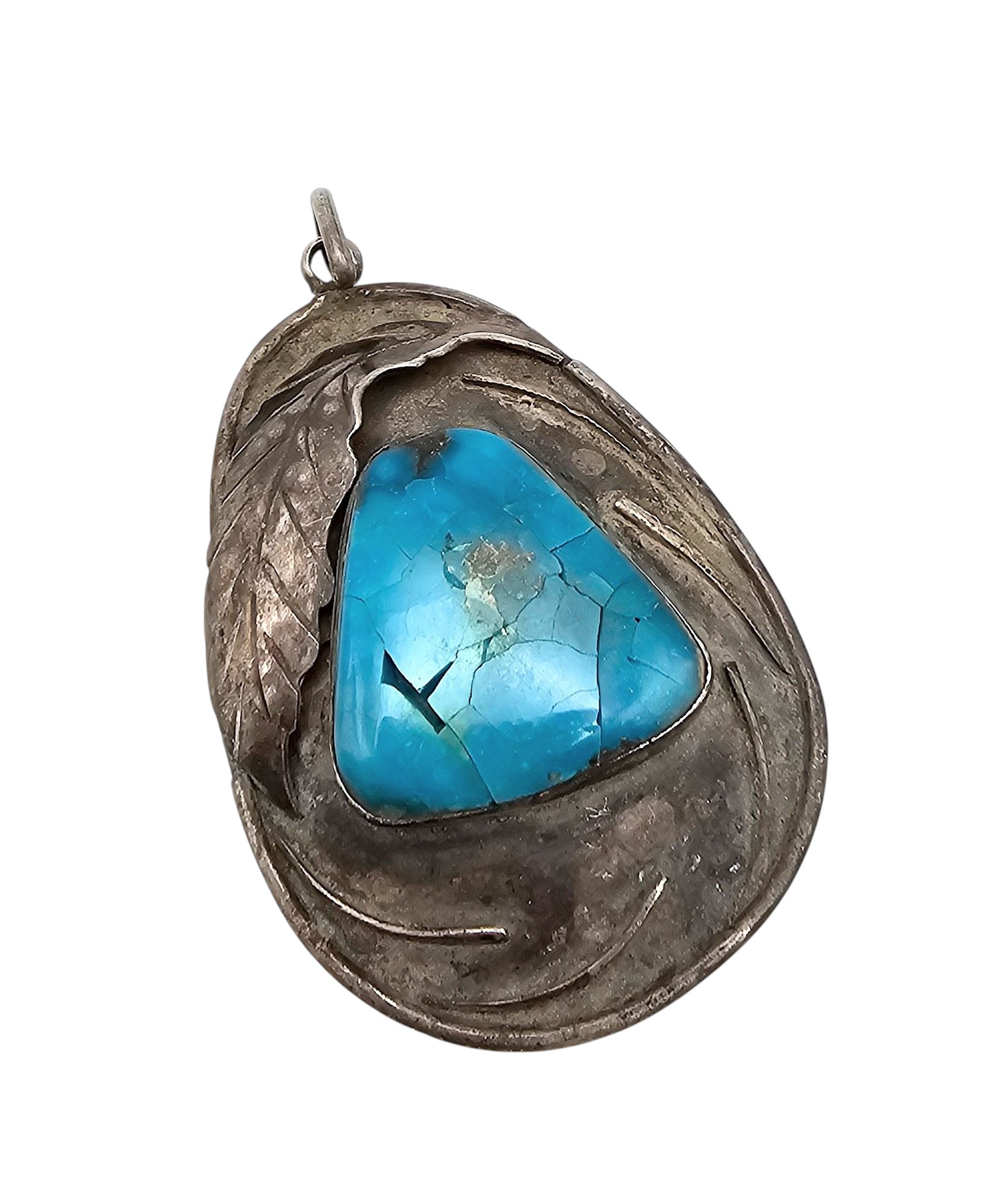Navajo Turquoise Sterling Silver Pendant 15.1 G cracked stone