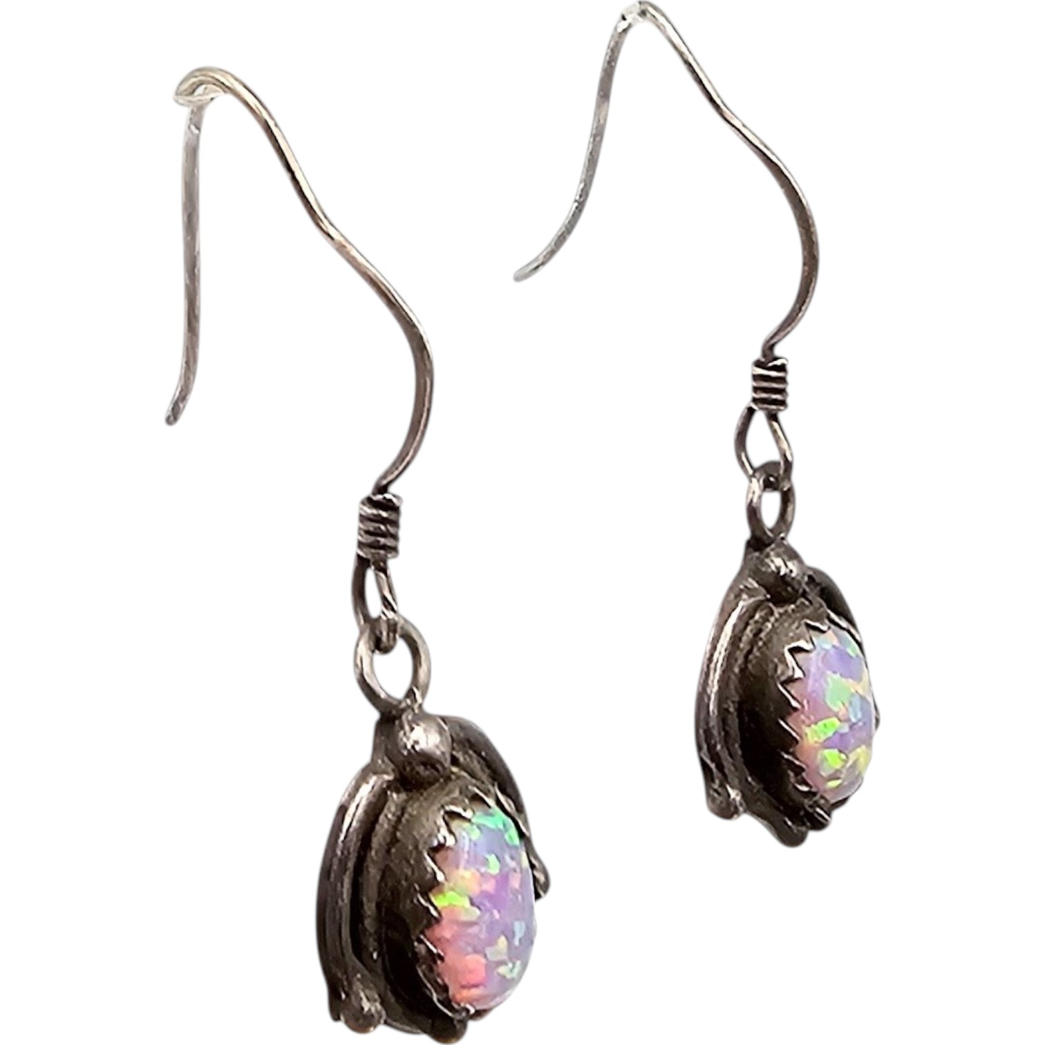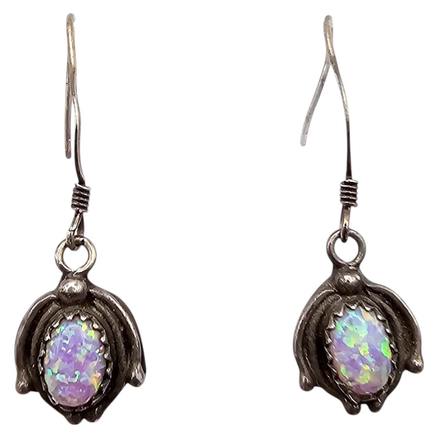 Native Opal Sterling Silver Dangle Earrings 2.1 G