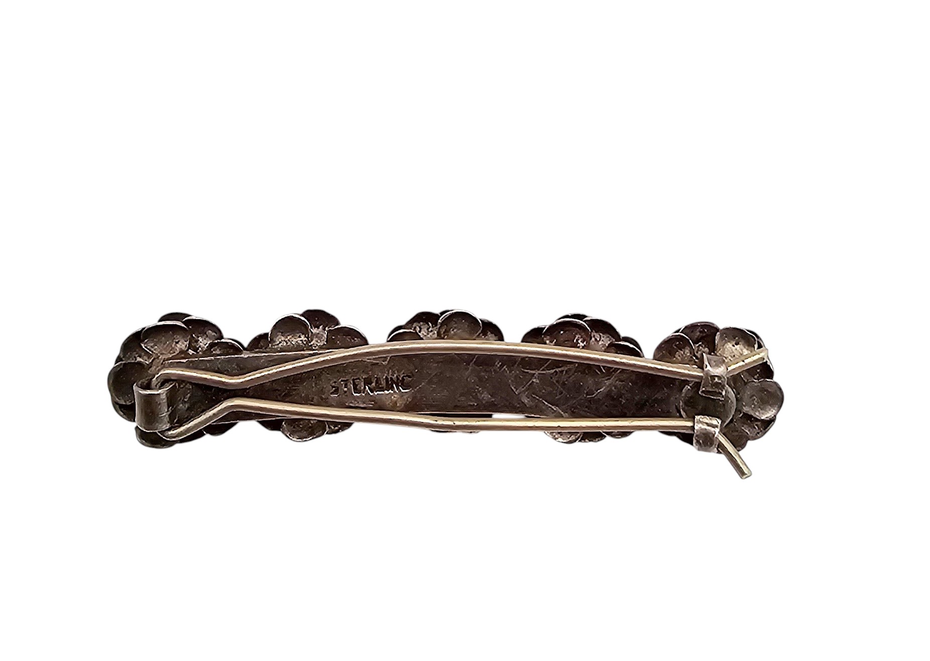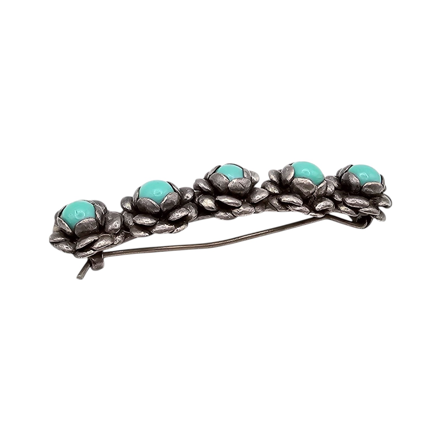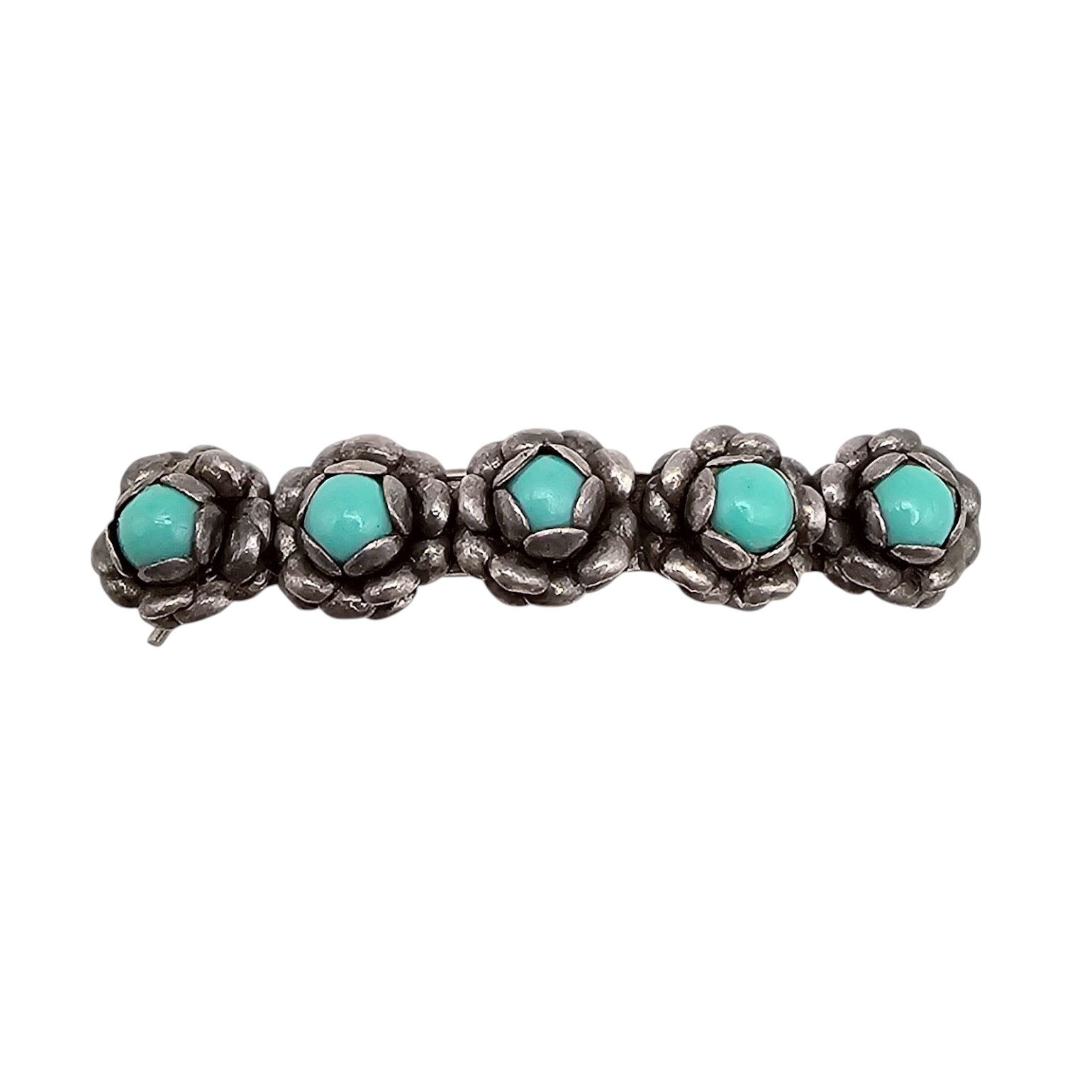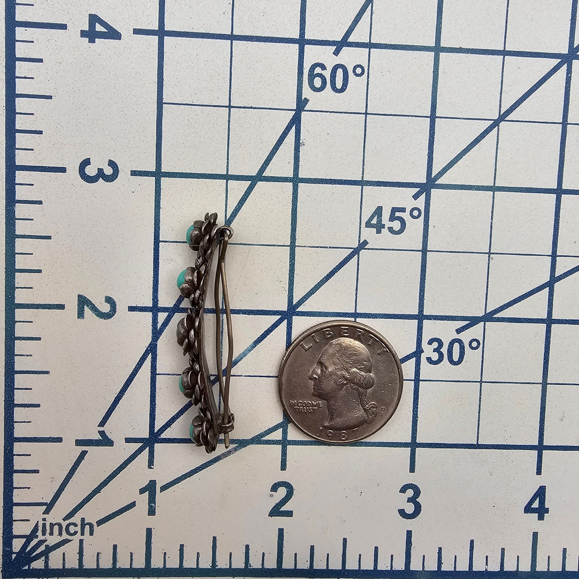 Native Turquoise Sterling Silver Floral Hair Barrette Clip 4.8 G