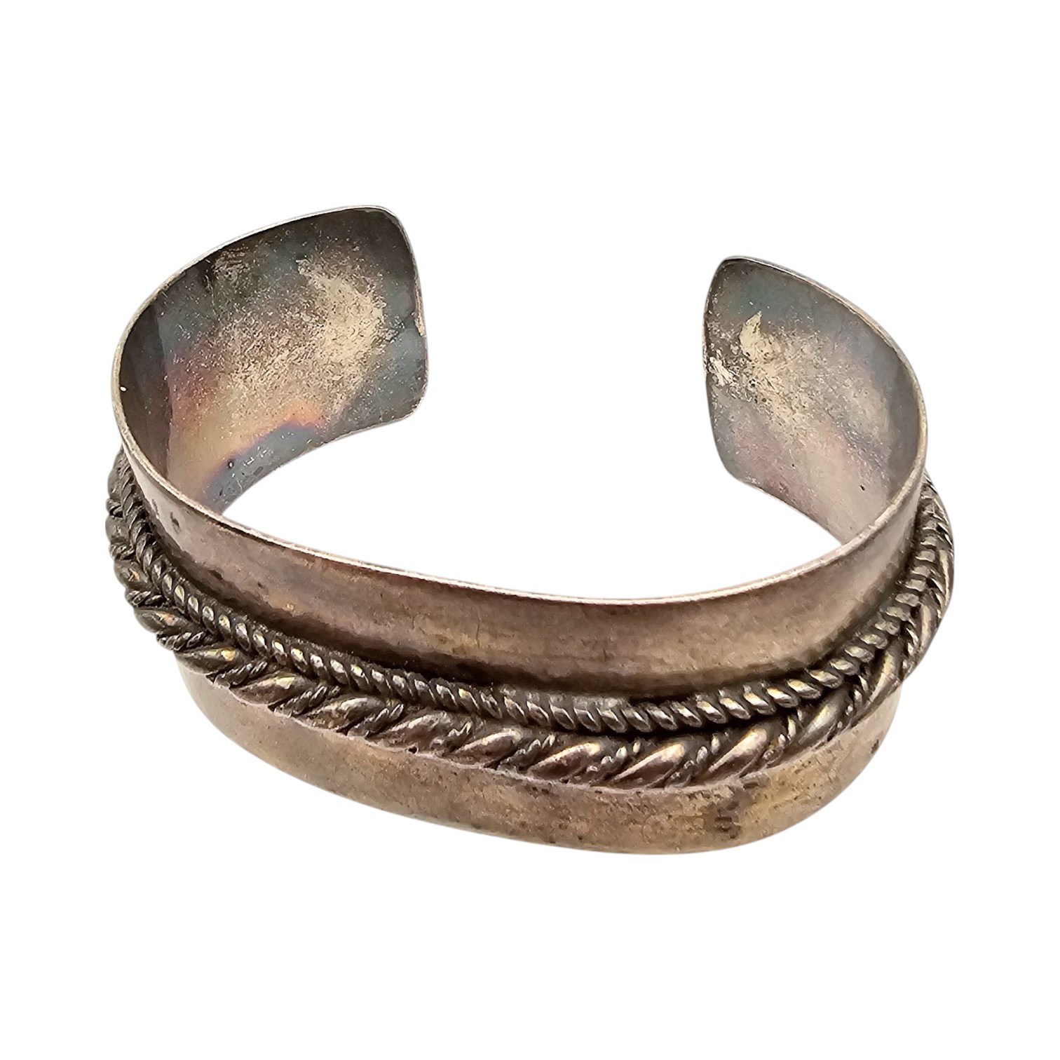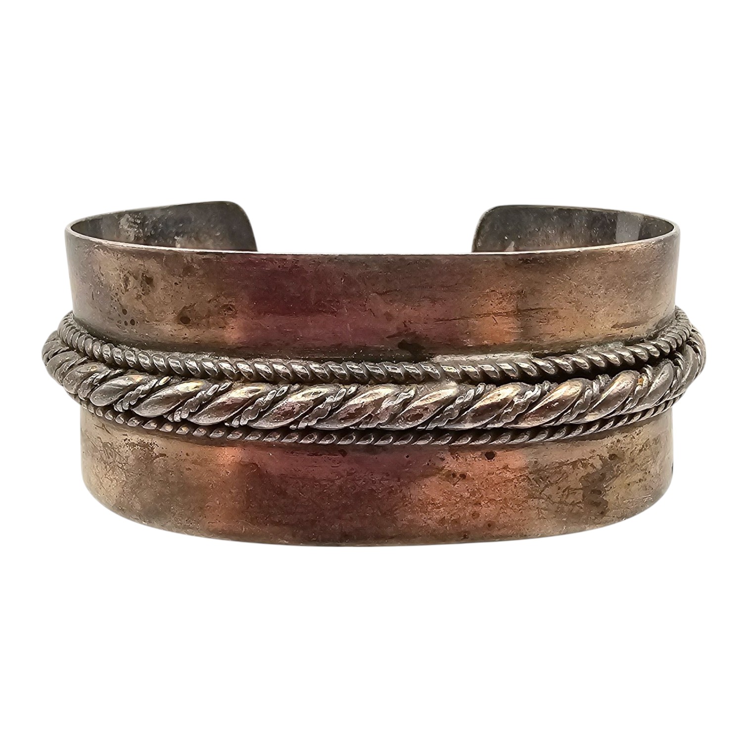 Native Sterling Silver Rope Center Cuff Bracelet 56 G