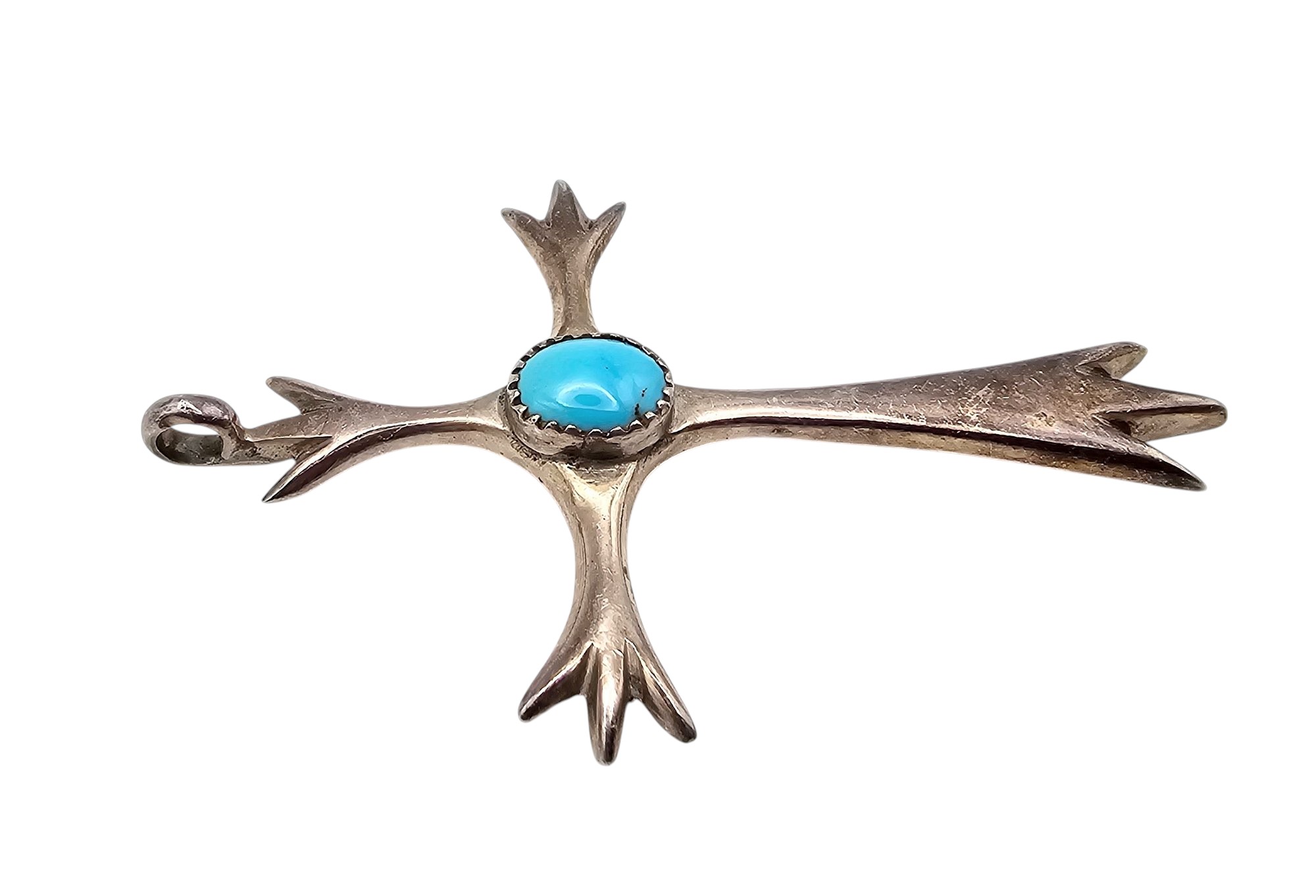 Navajo Turquoise Sterling Silver Cross Pendant 10.5 G