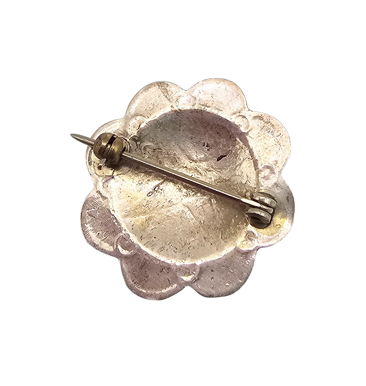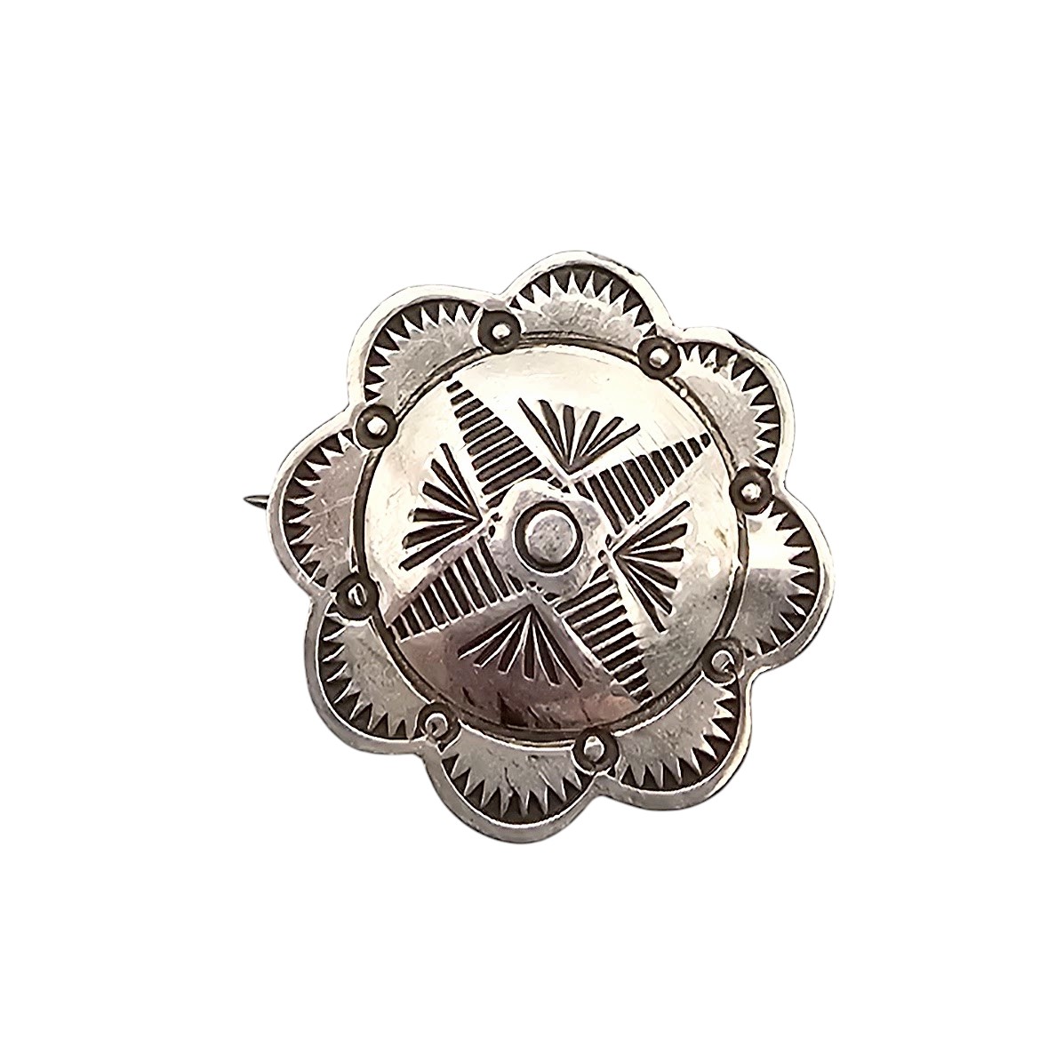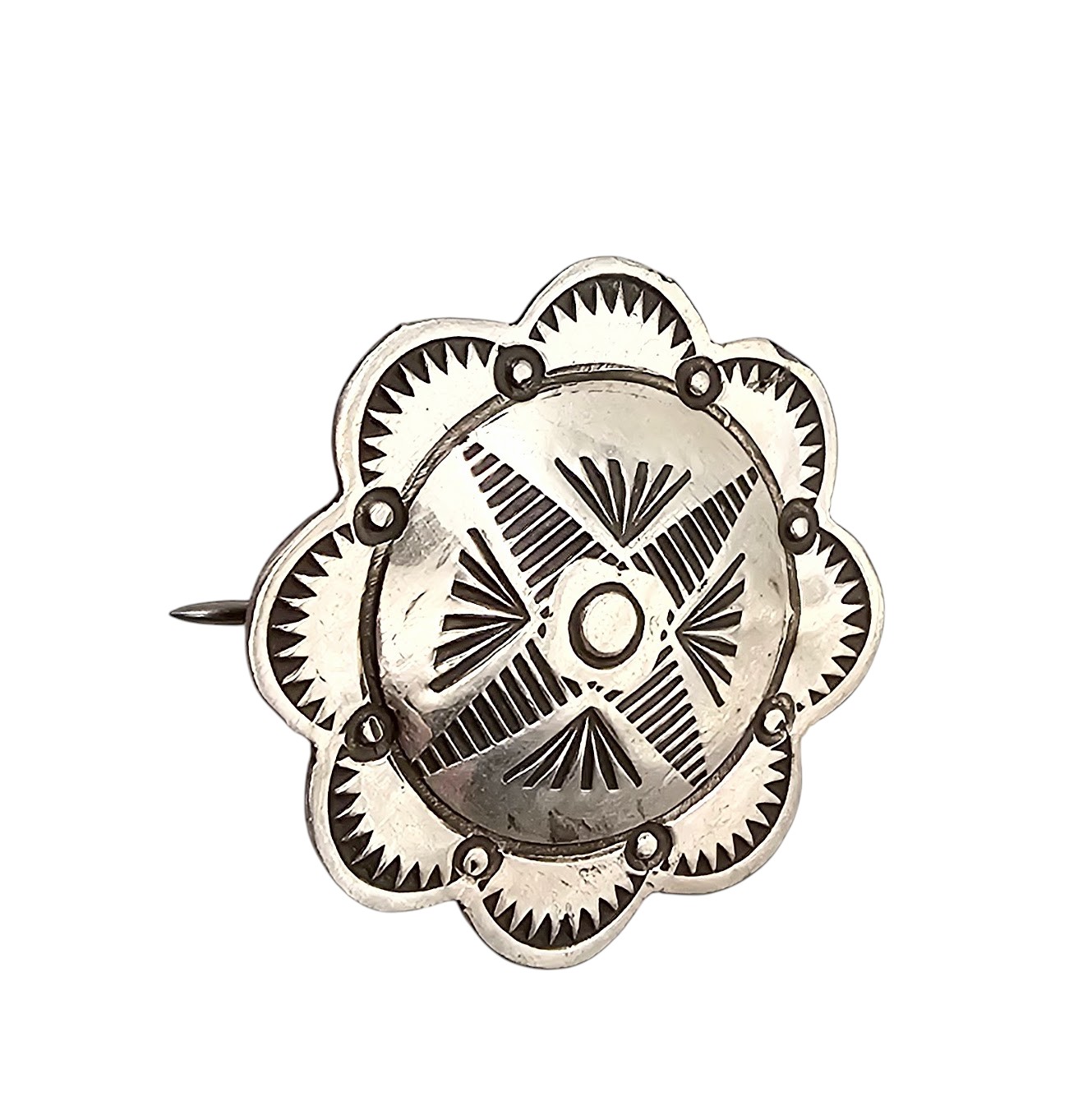 Navajo Sterling Silver Stamp Work Concho Brooch 3 G