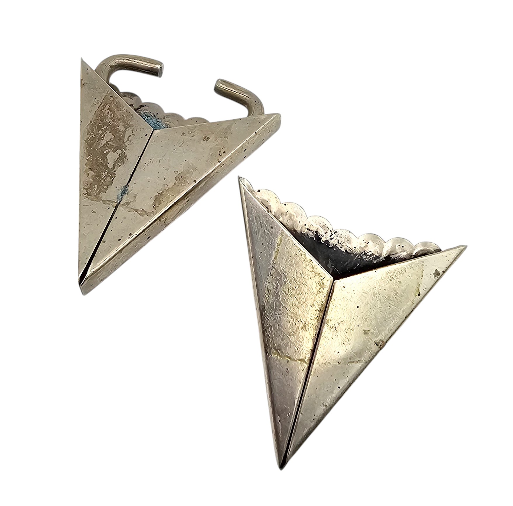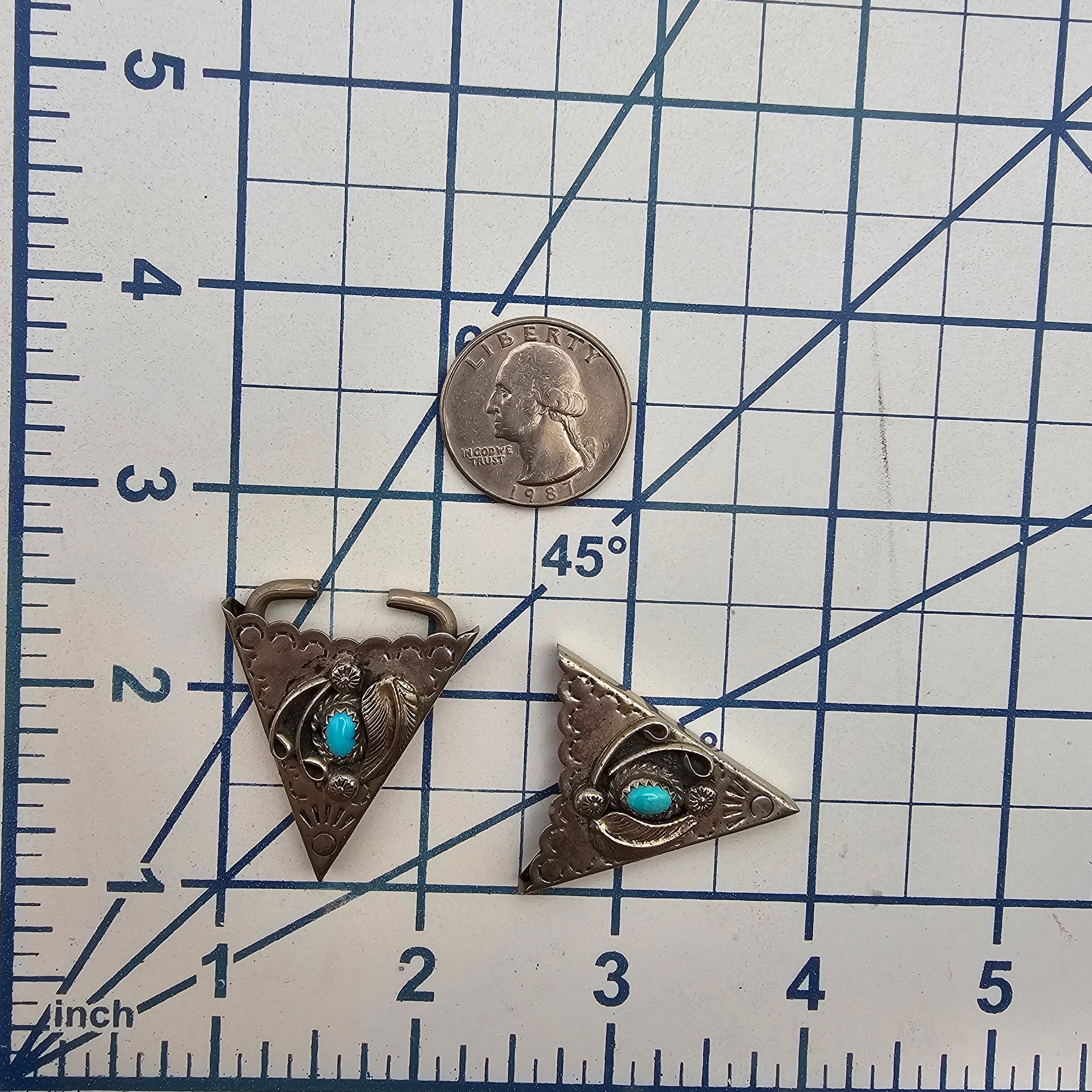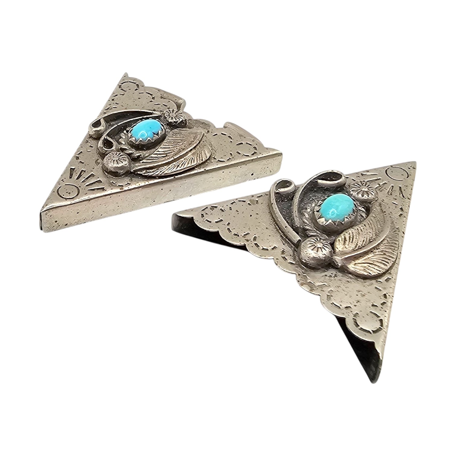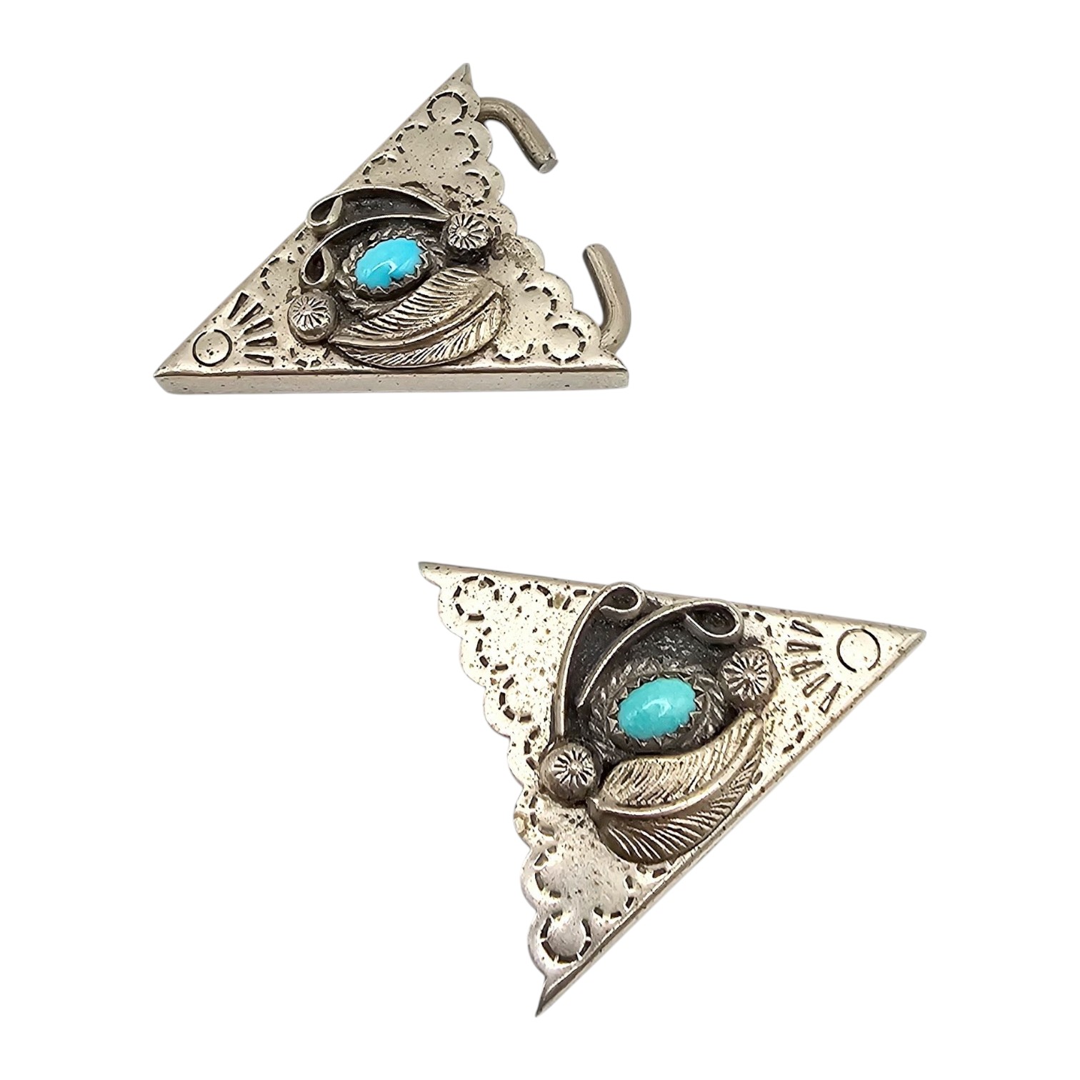Navajo Turquoise Sterling Silver Stamp Work Belt Ends 13.3 G