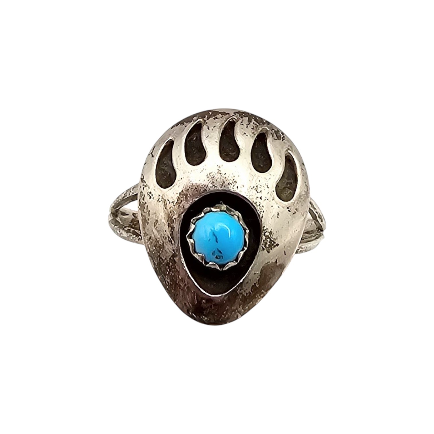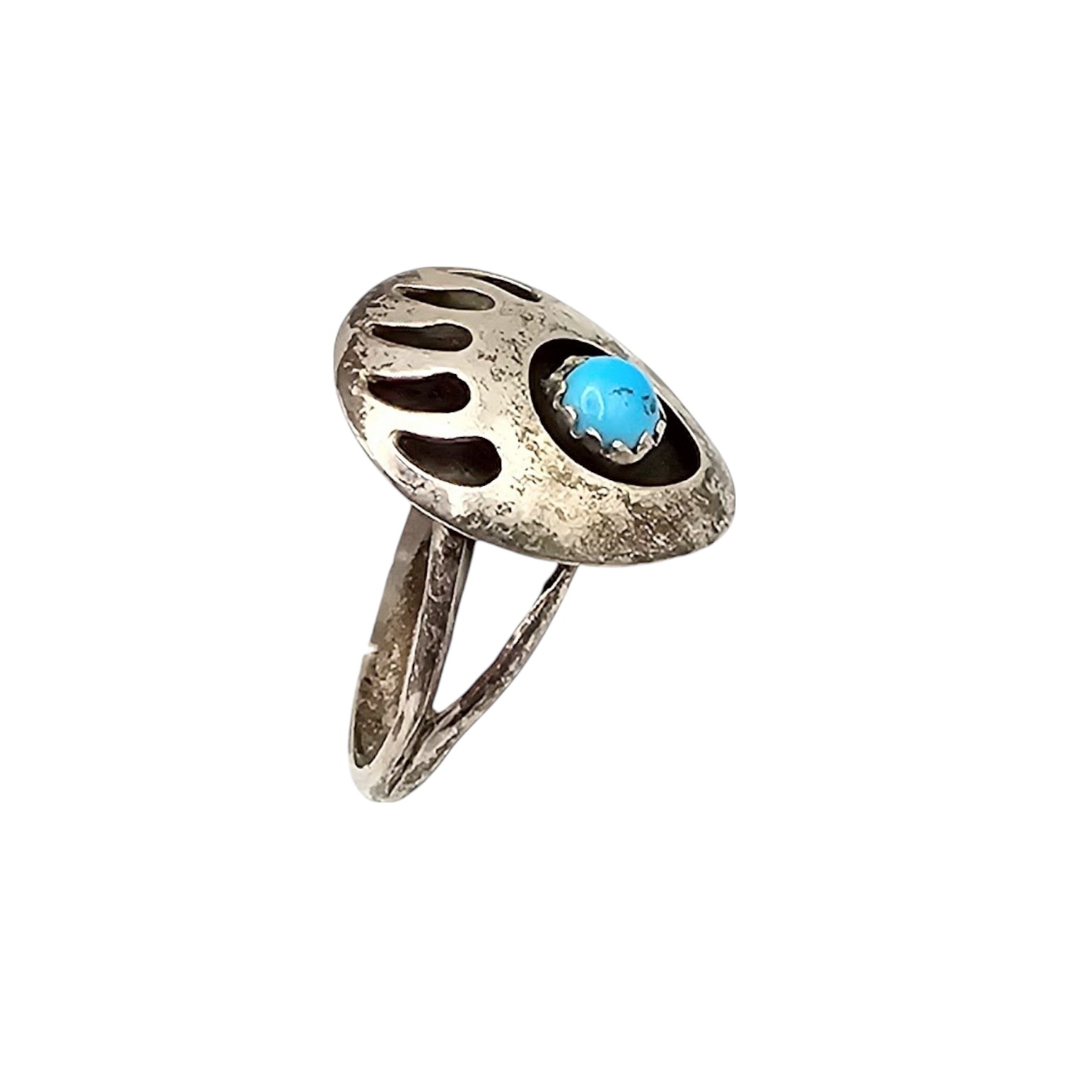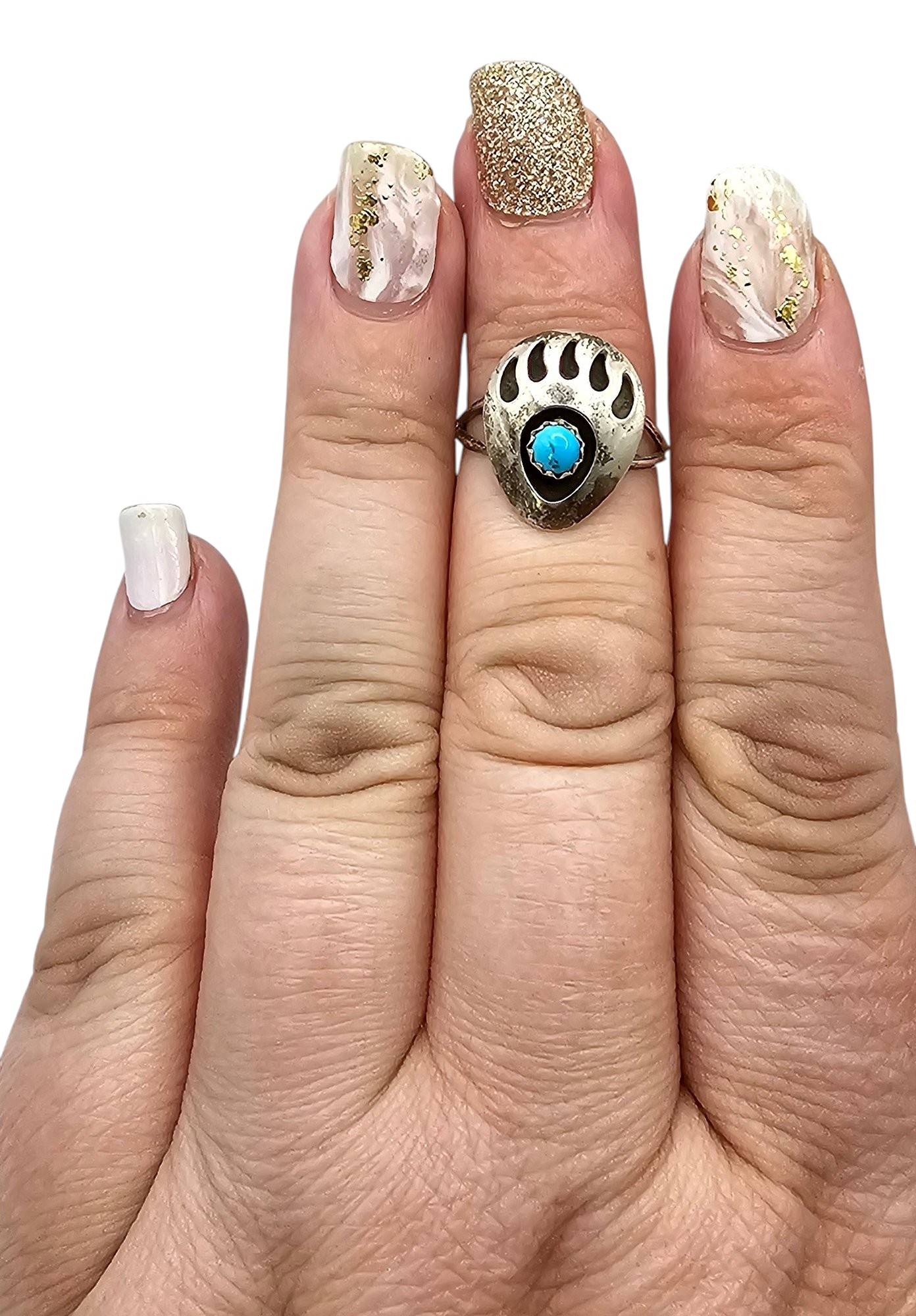 Navajo Turquoise Sterling Silver Bear Paw Ring Size 6 1.6 G