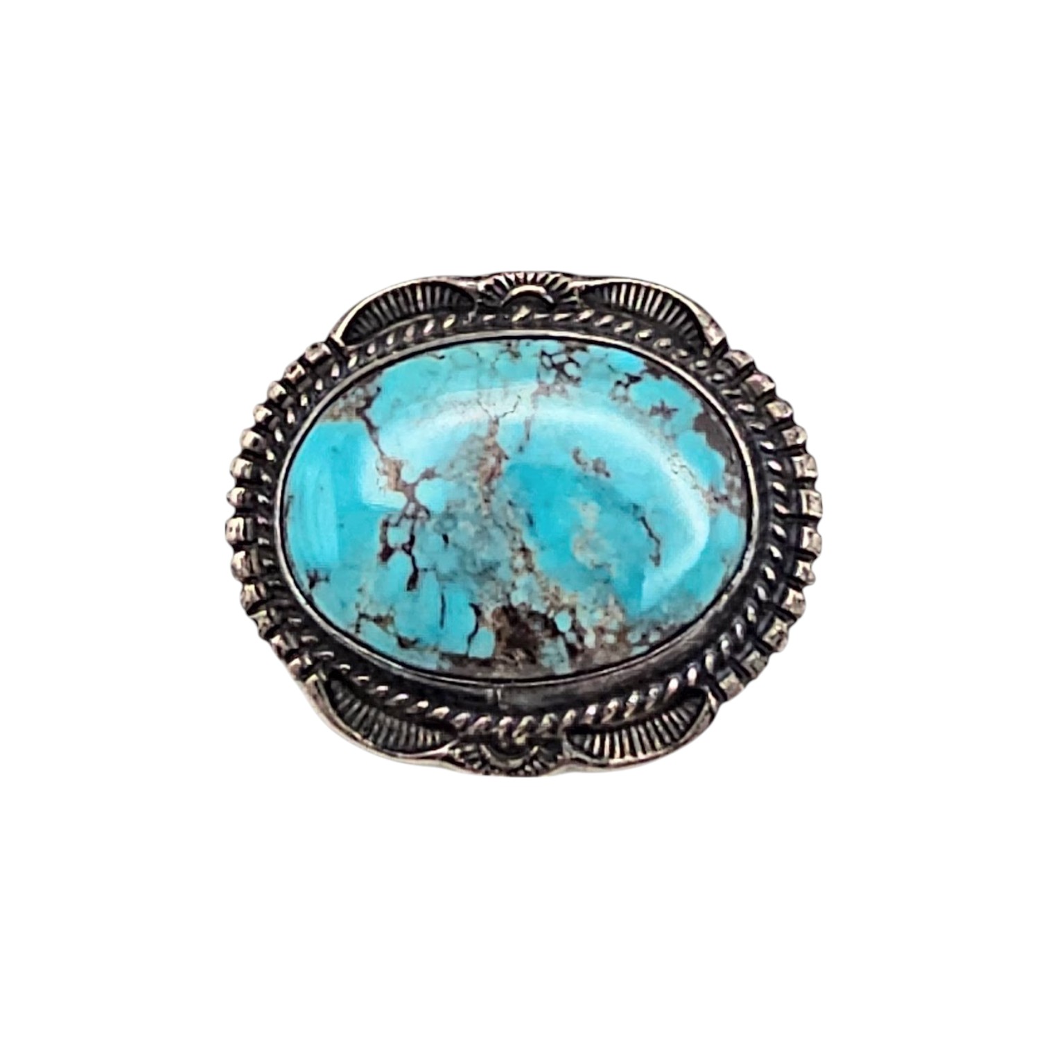 Signed LRD Native Turquoise Sterling Silver Brooch 6.8 G