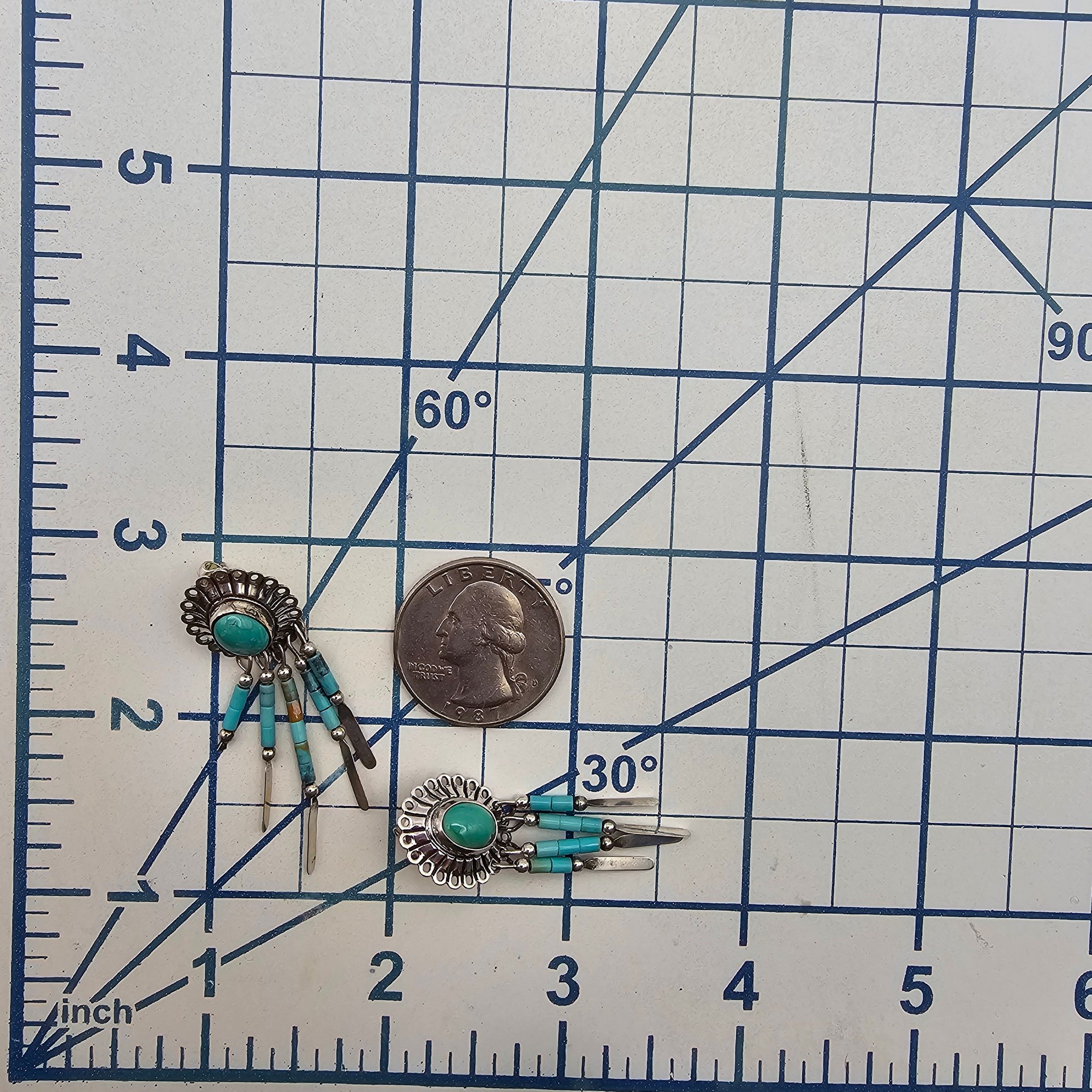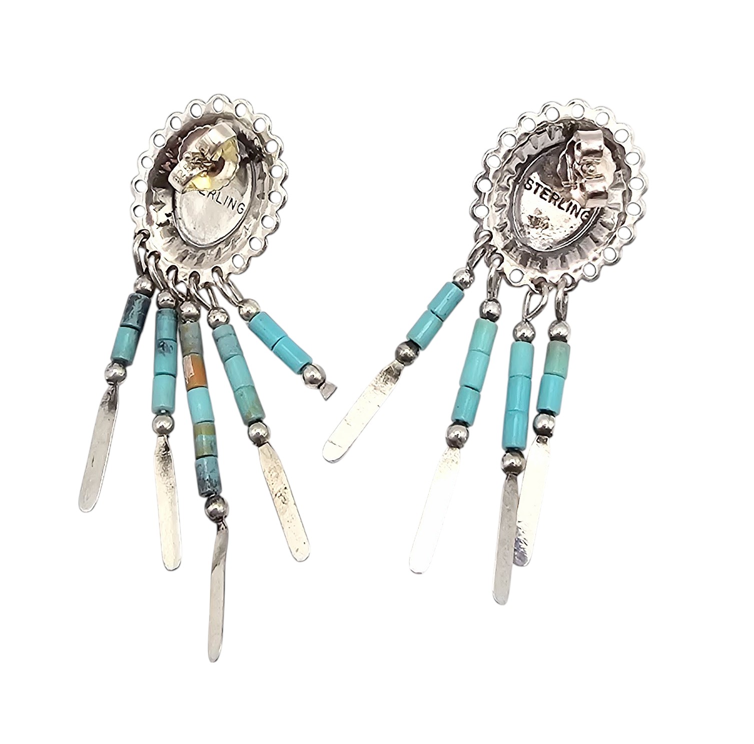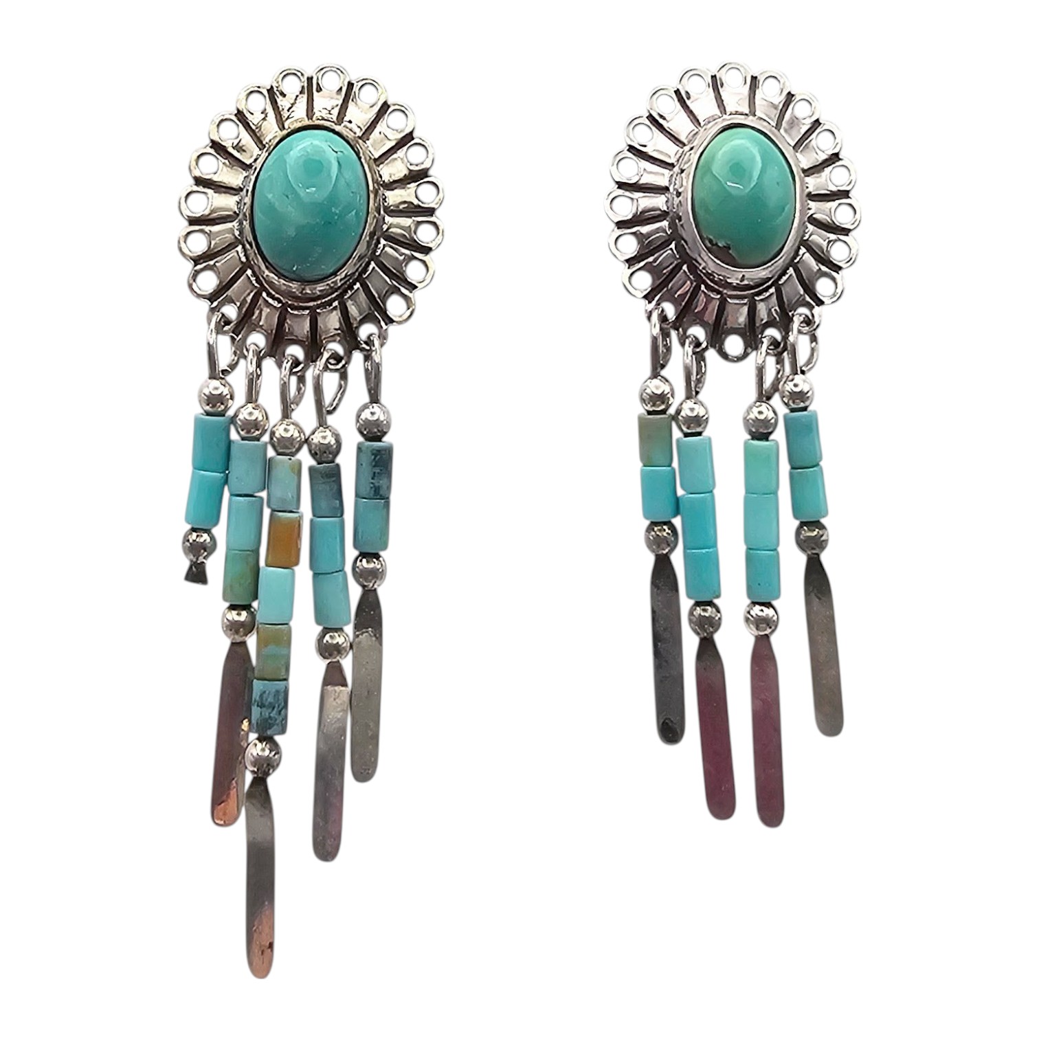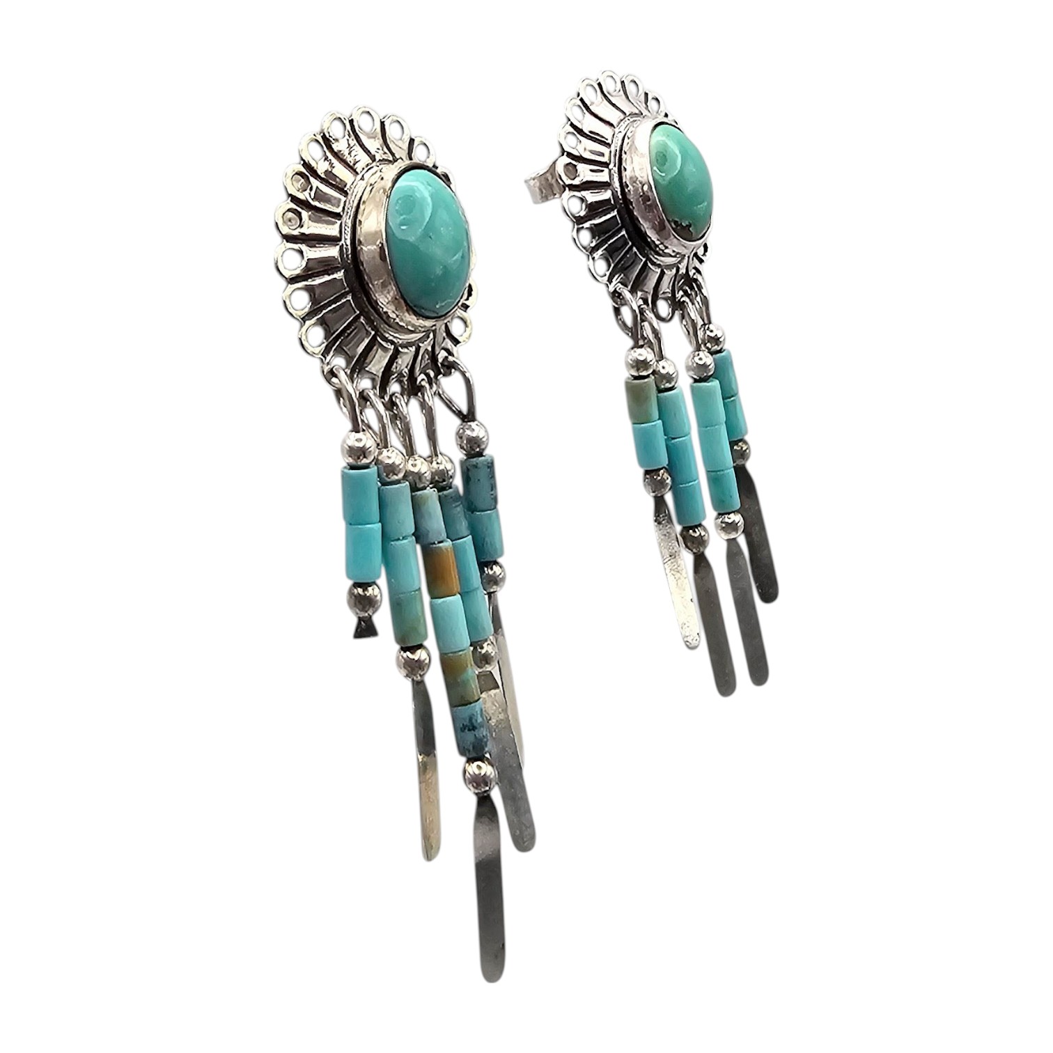 Native Turquoise Sterling Silver Fringe Dangle Earrings 4.8 G as is