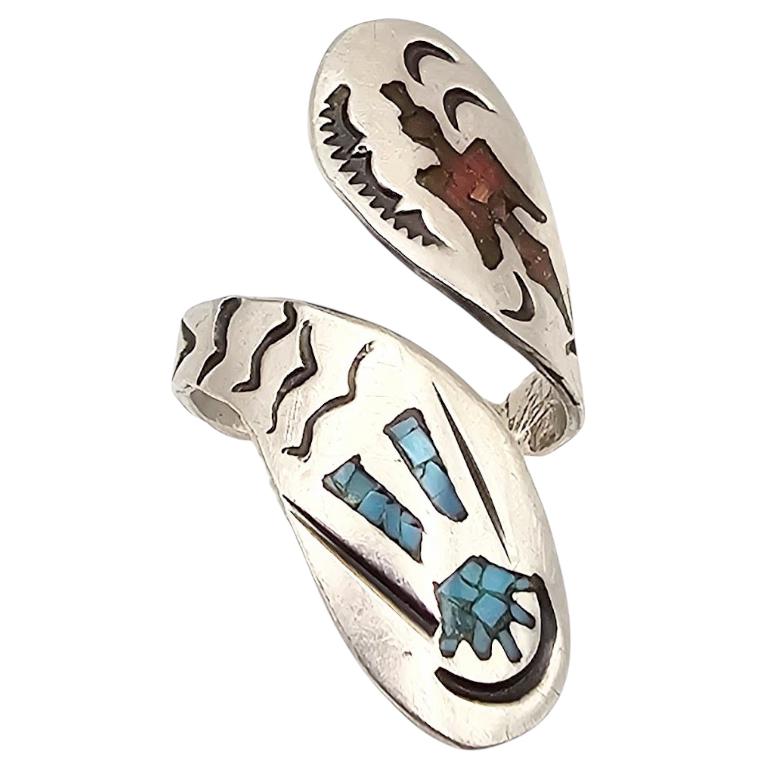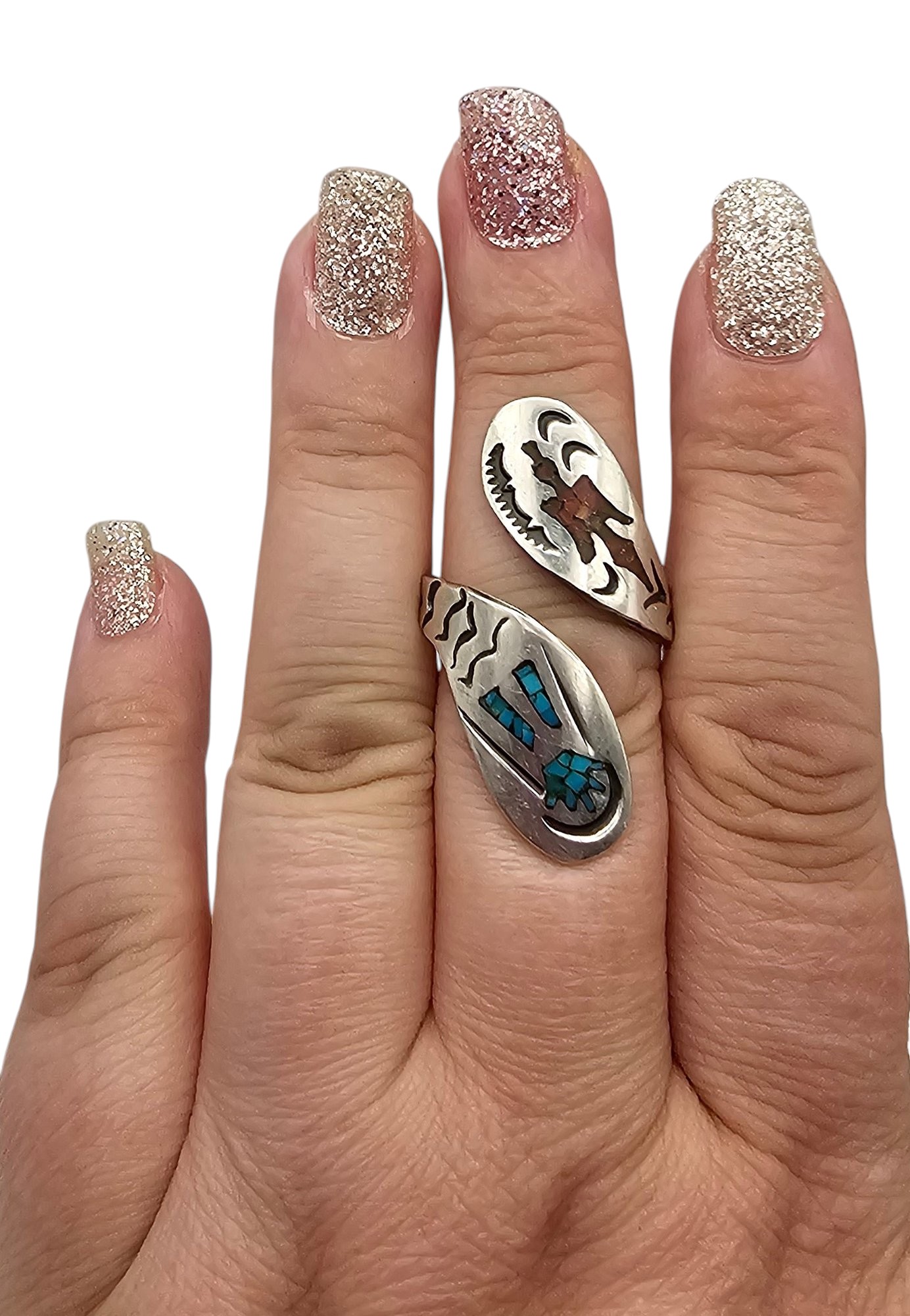 Navajo Crushed Turquoise Coral Sterling Silver Wrap Ring Size 8 7.1 G