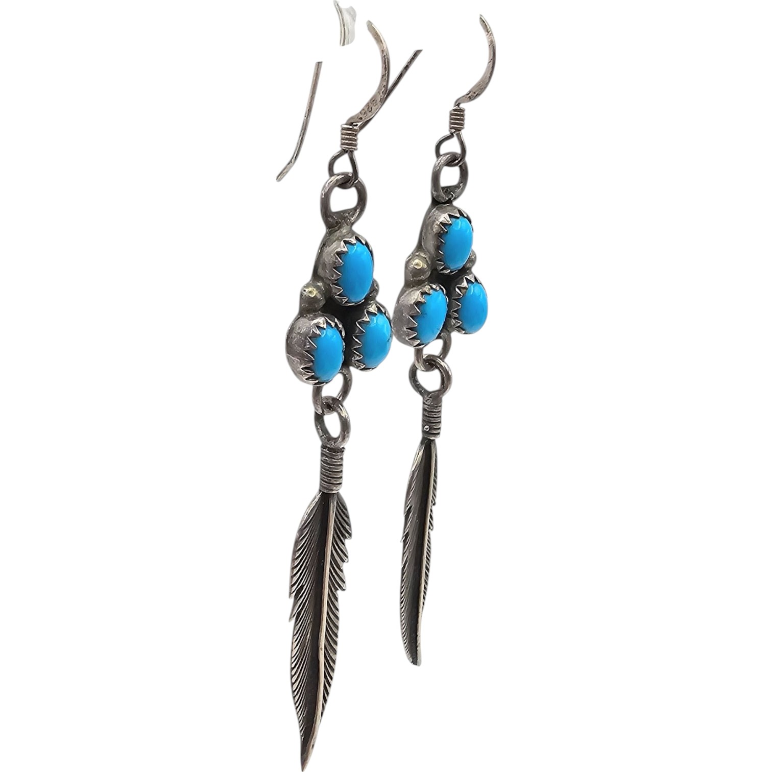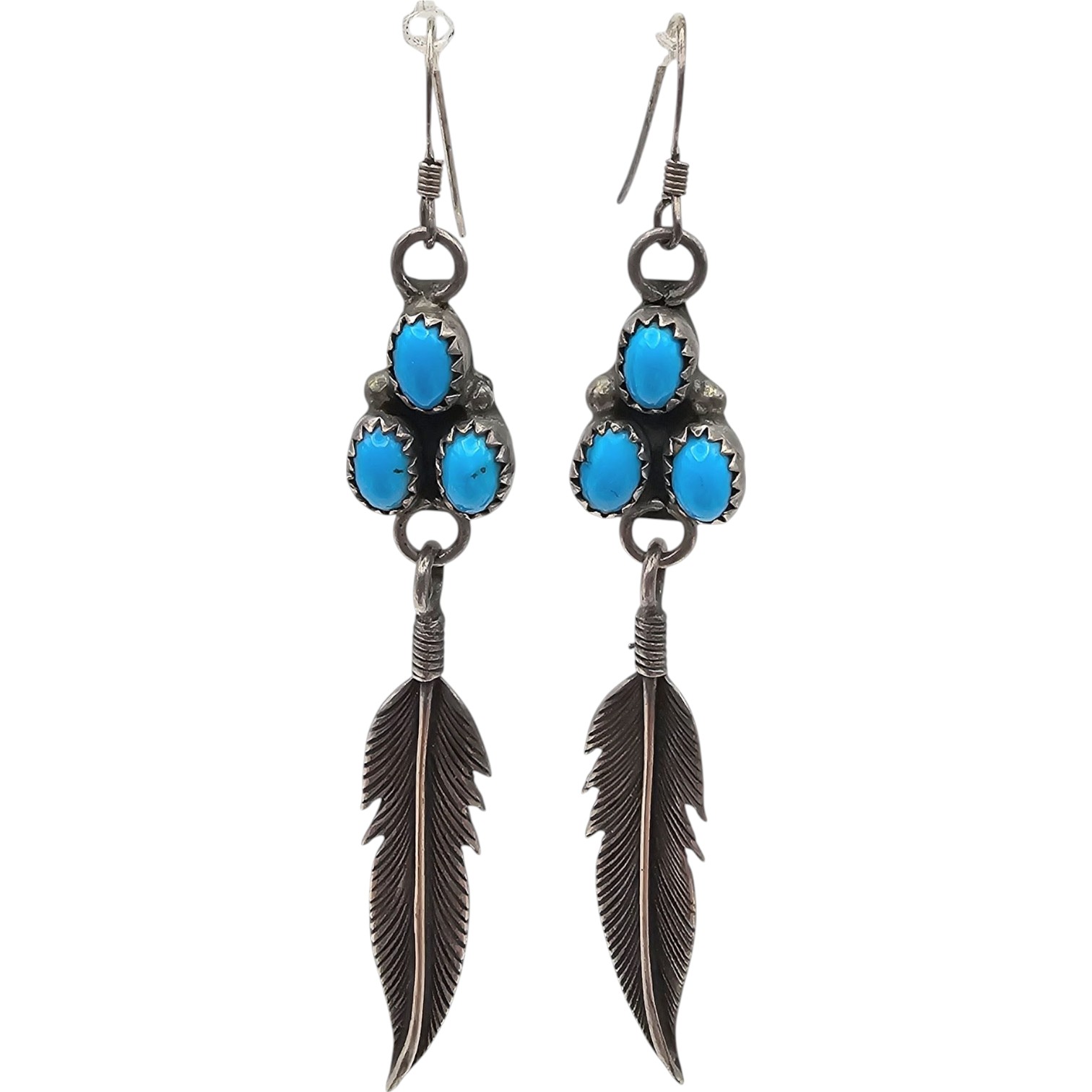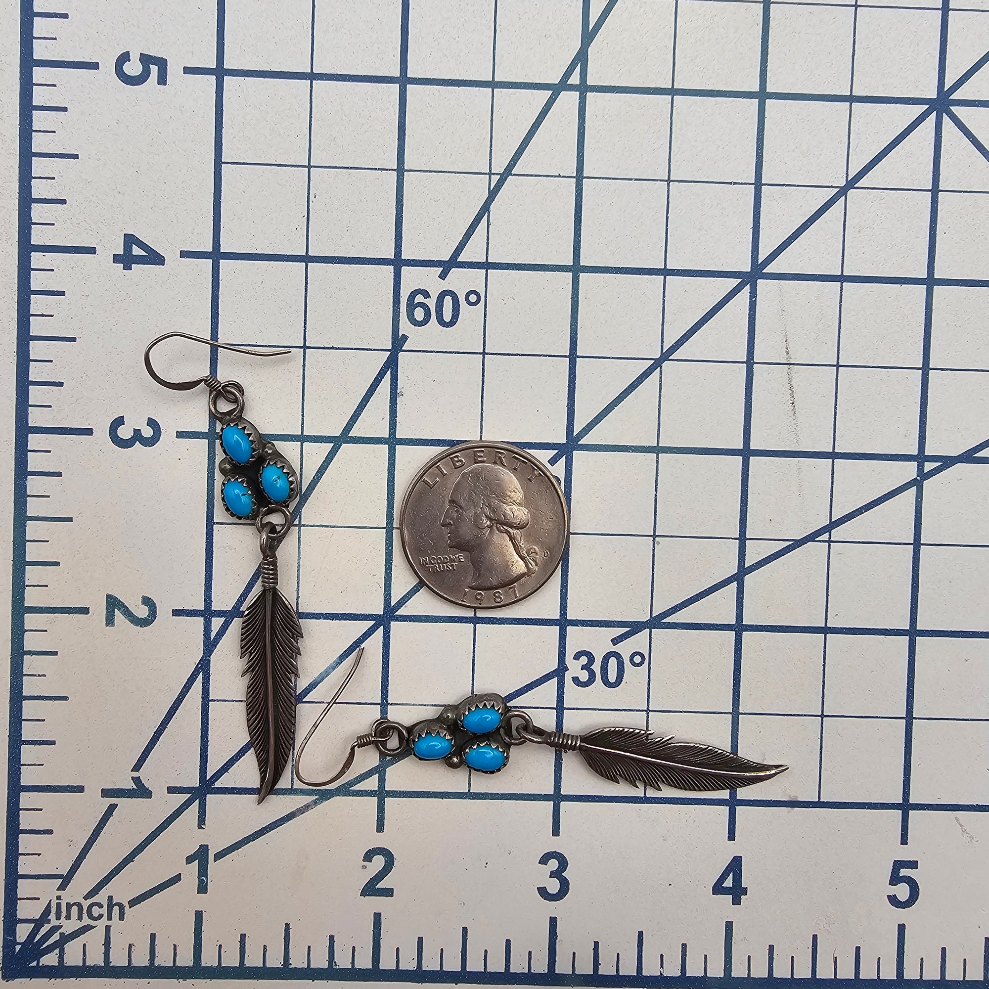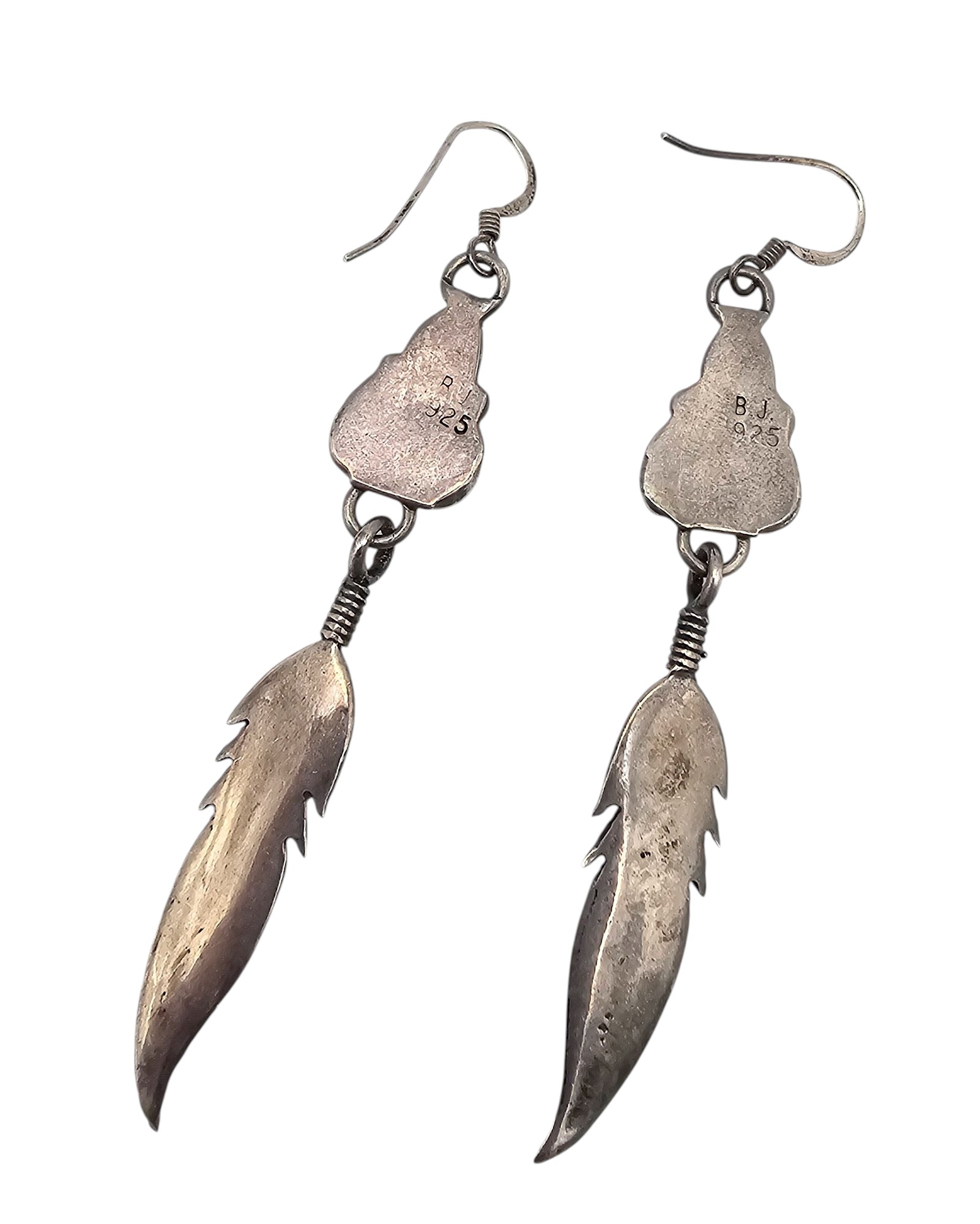 Signed B Native Turquoise Sterling Silver Feather Dangle Earrings 6.8 G