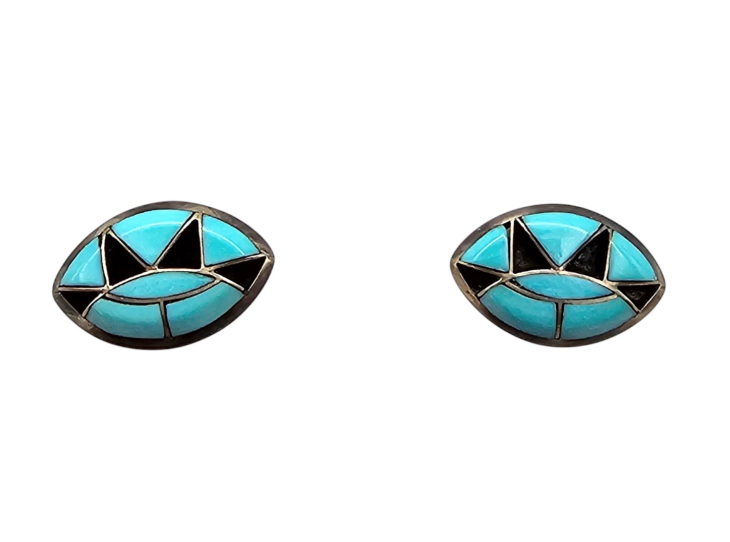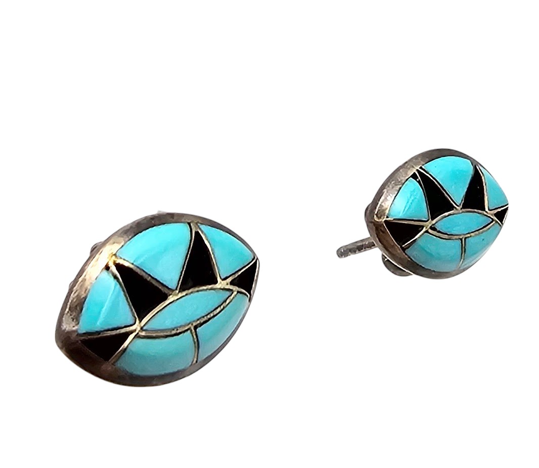Navajo Turquoise Onyx Sterling Silver Inlay Earrings 1.9 G