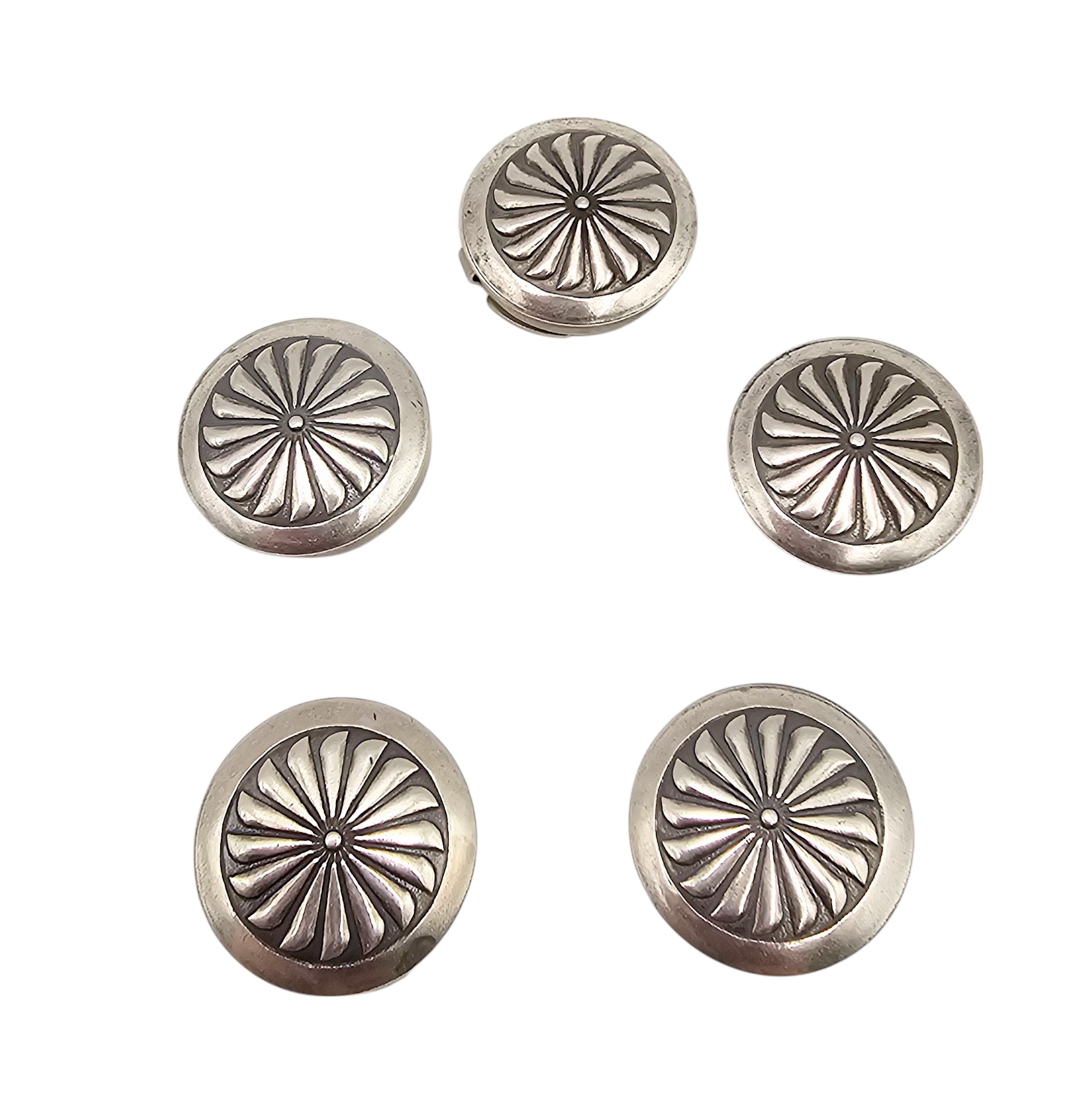Navajo Sterling Silver Floral Shield Button Covers Lot of 5 18 G