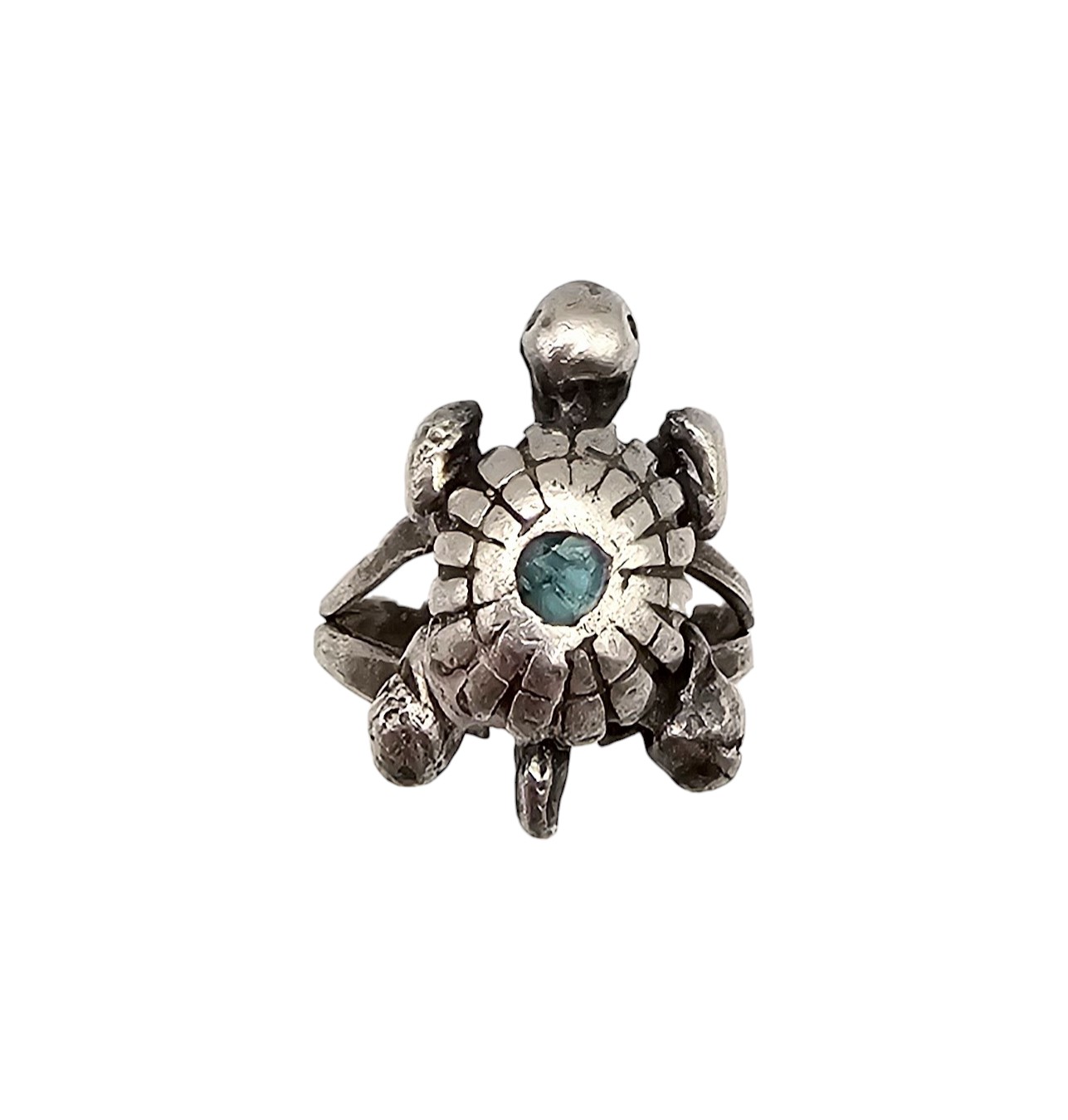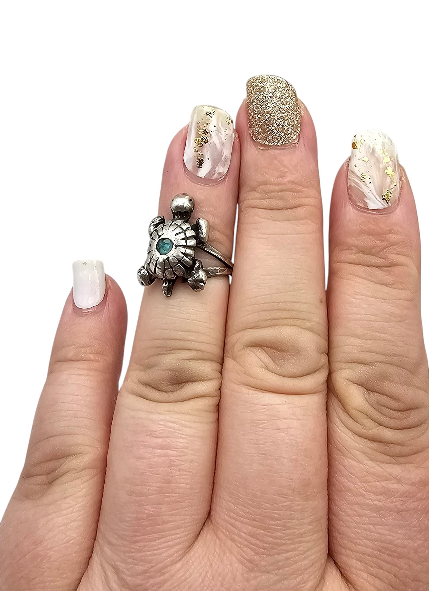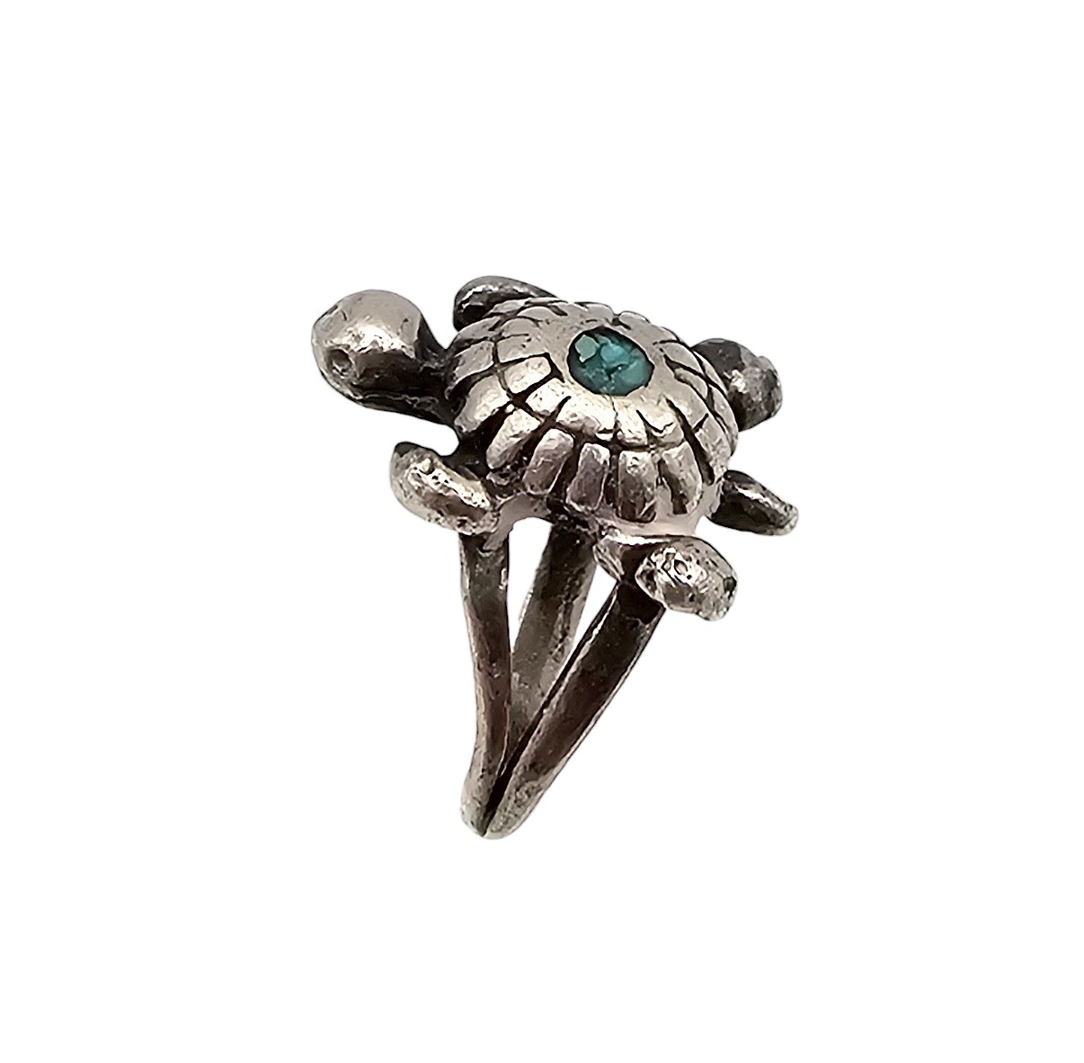 Native Crushed Turquoise Sterling Silver Turtle Ring Size 3.5 5.4 G