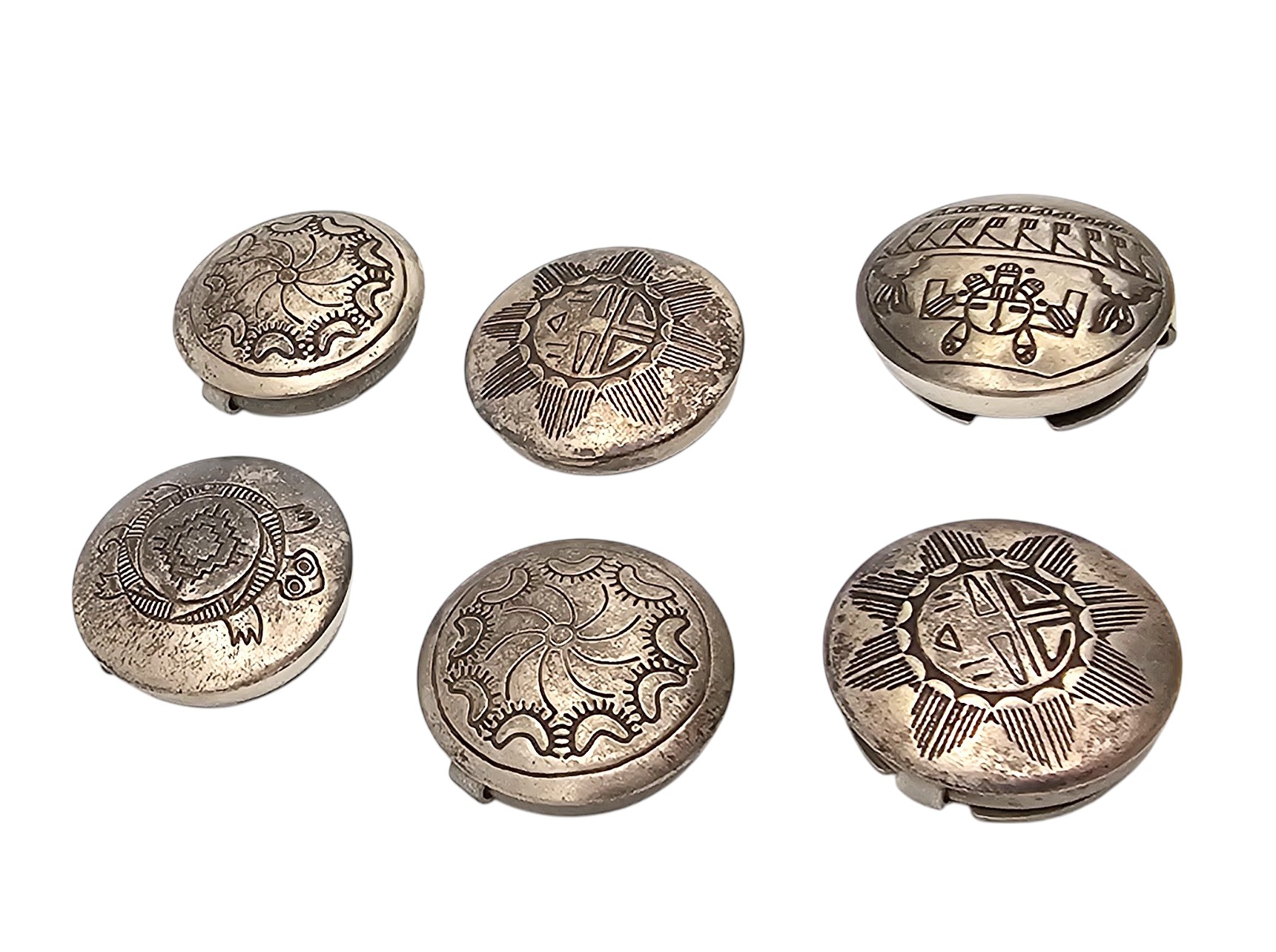 Zuni Sterling Silver Button Covers Variety Lot of 6 21.4 G