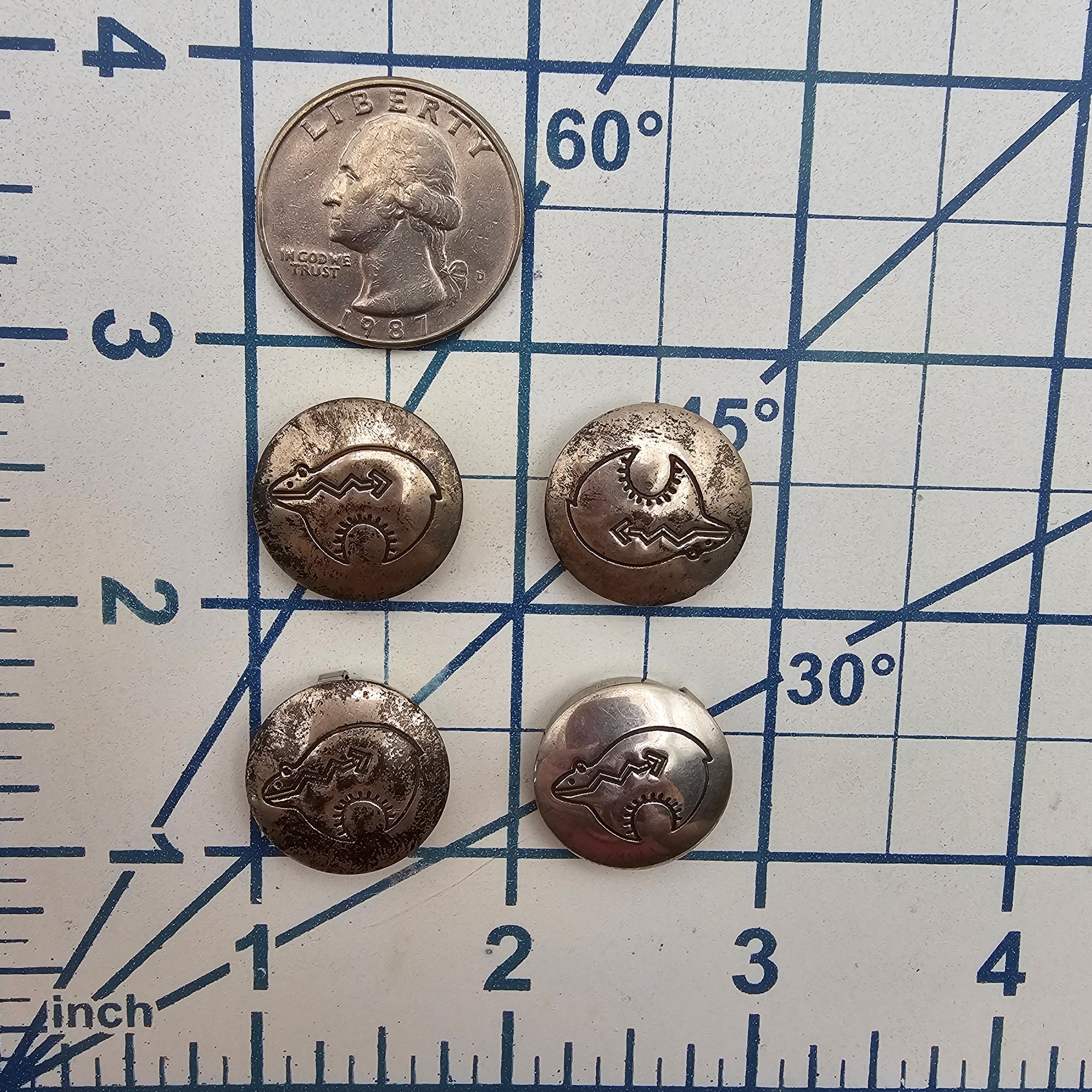 Navajo Sterling Silver Fetis Bear Button Covers Lot of 4 14 G