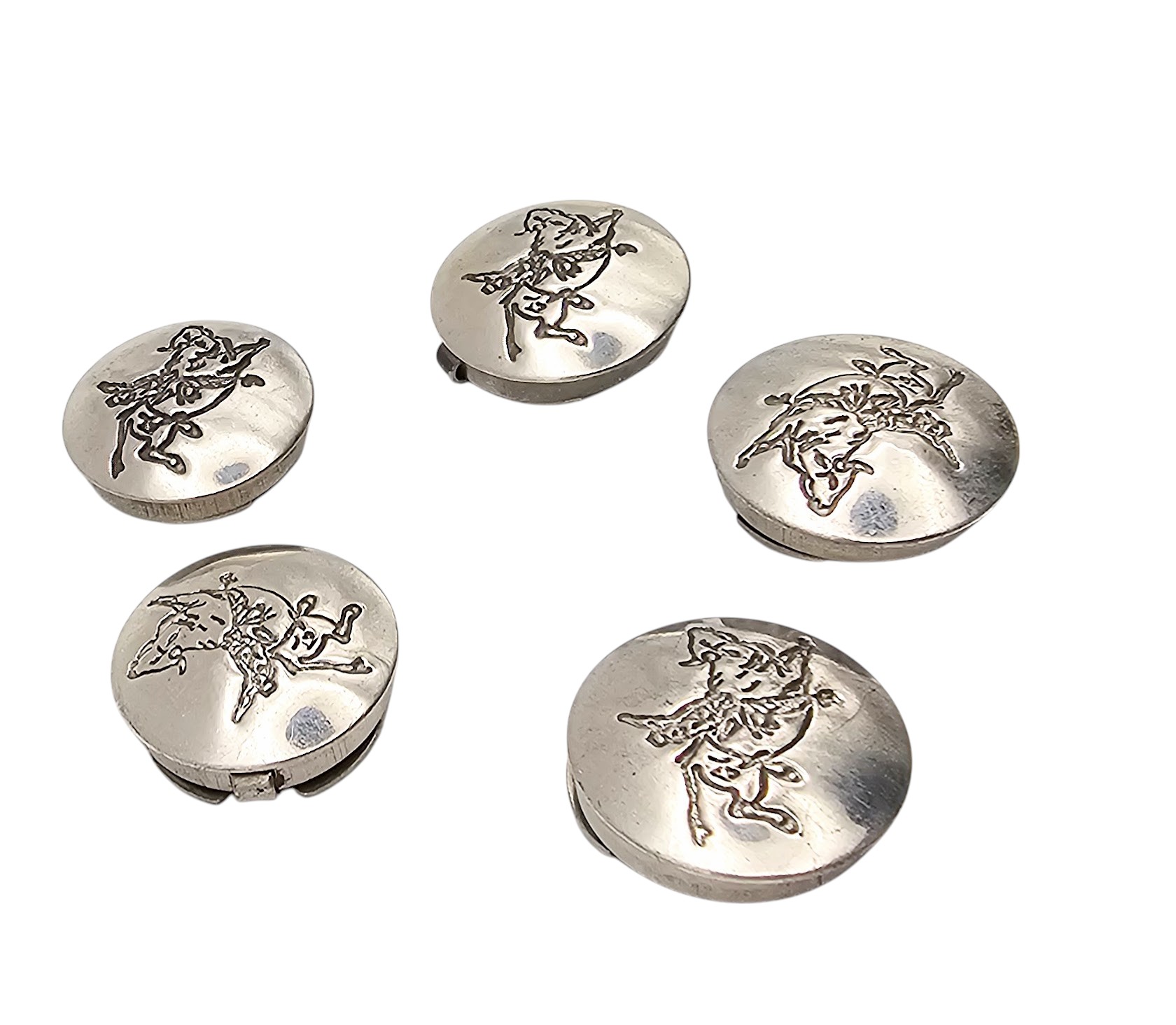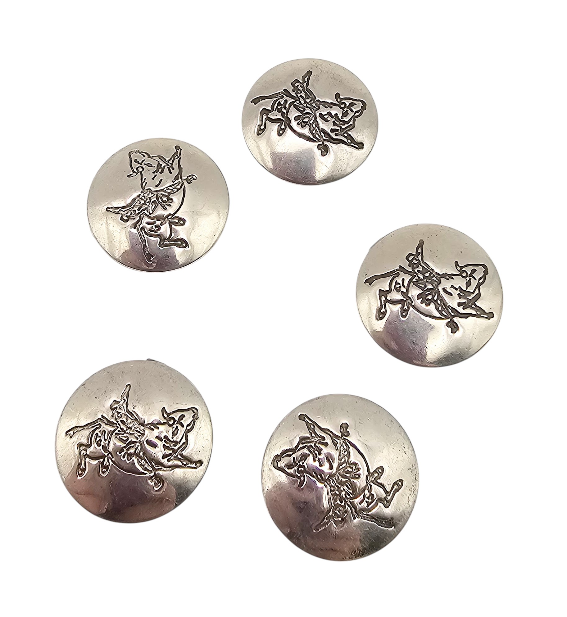 Southwestern Sterling Silver Bull with Rider Button Covers Lot of 5 18 G