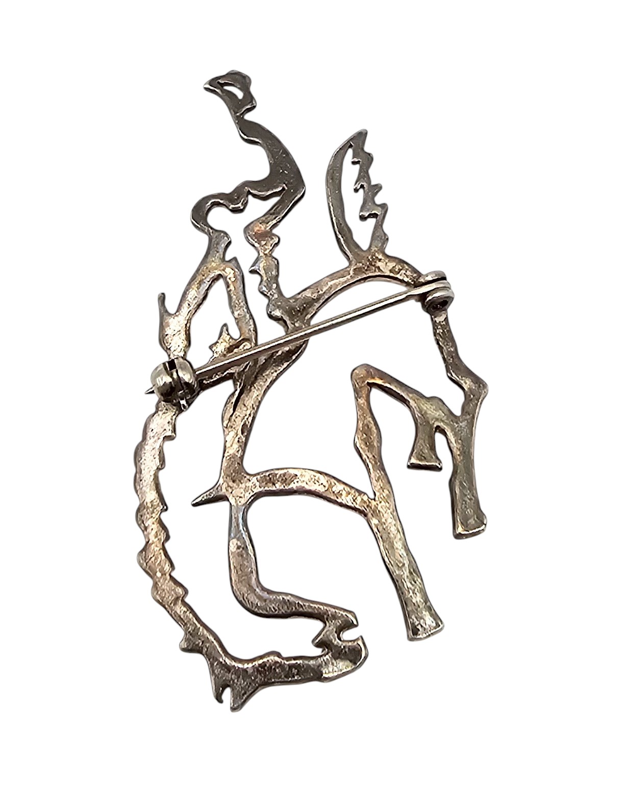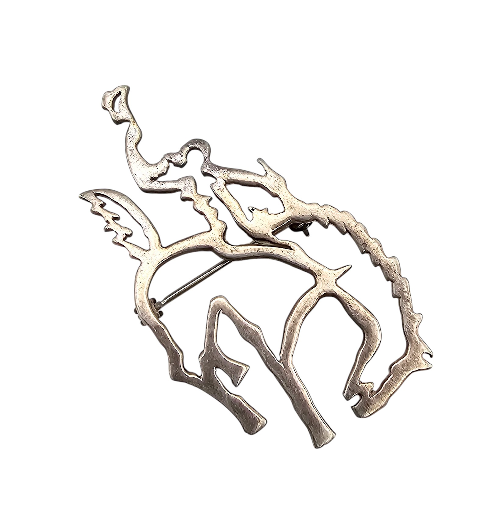 Native Sterling Silver Rider on Bronco Brooch 5.4 G