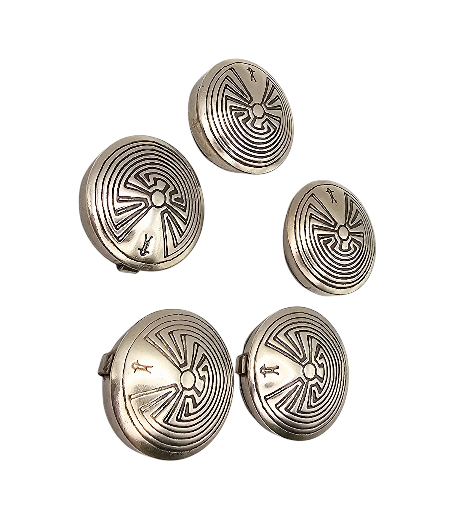 Hopi Sterling Silver Man in the Maze Button Covers Lot of 5 17.4 G