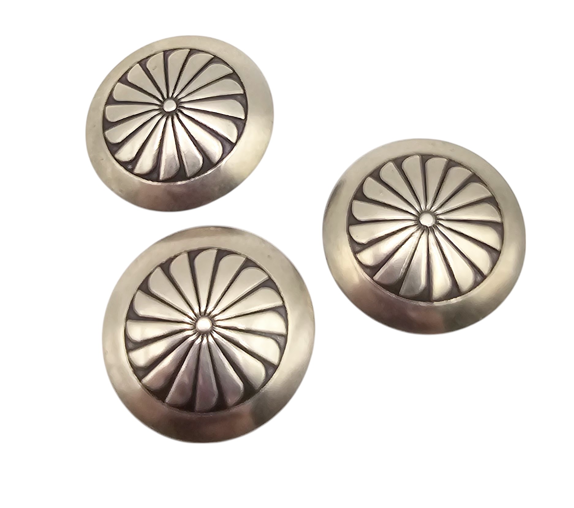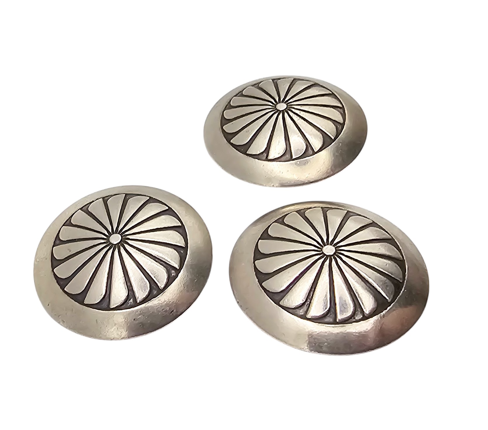 Navajo Sterling Silver Floral Shield Button Covers Lot of 3 17.3 G