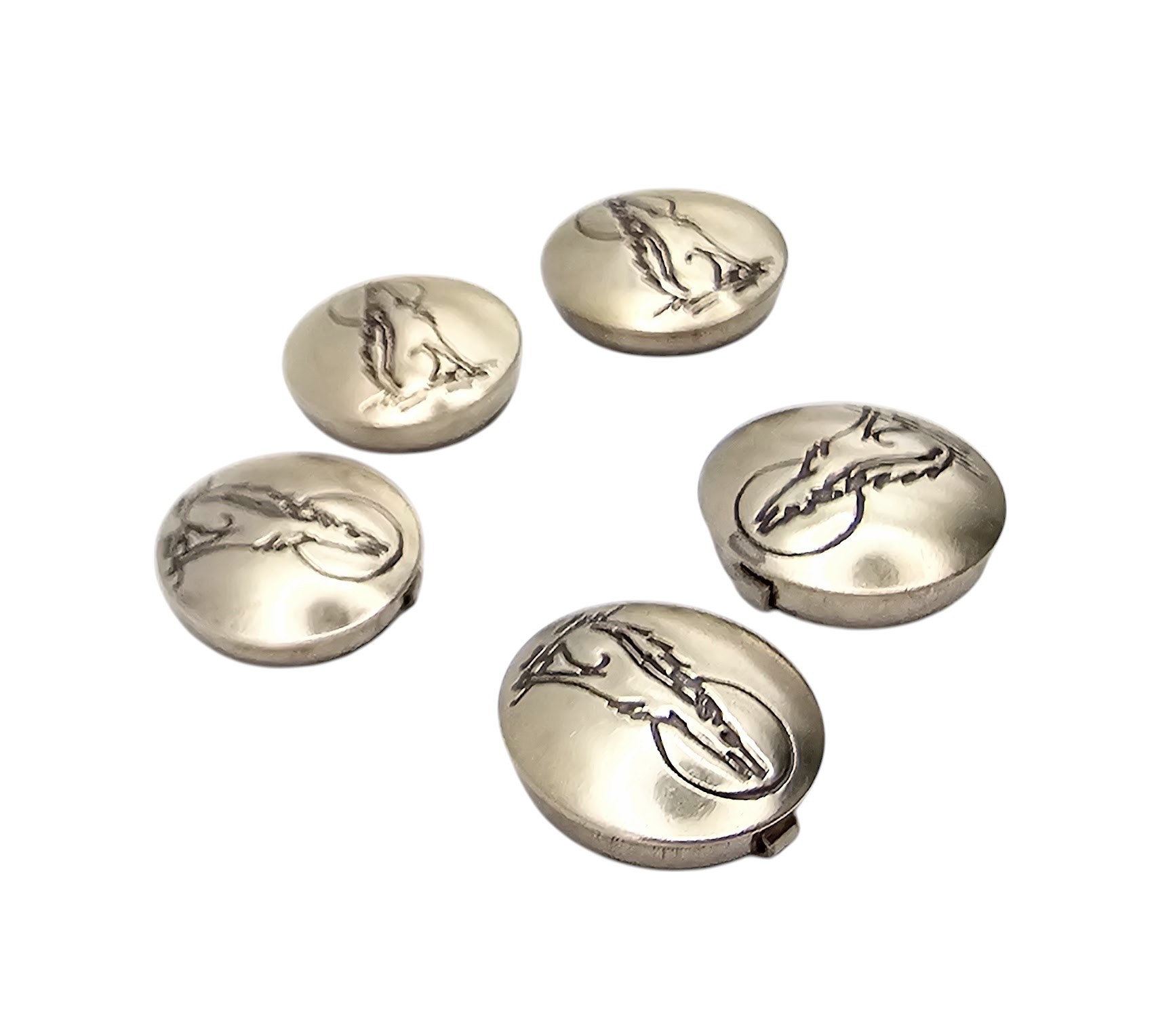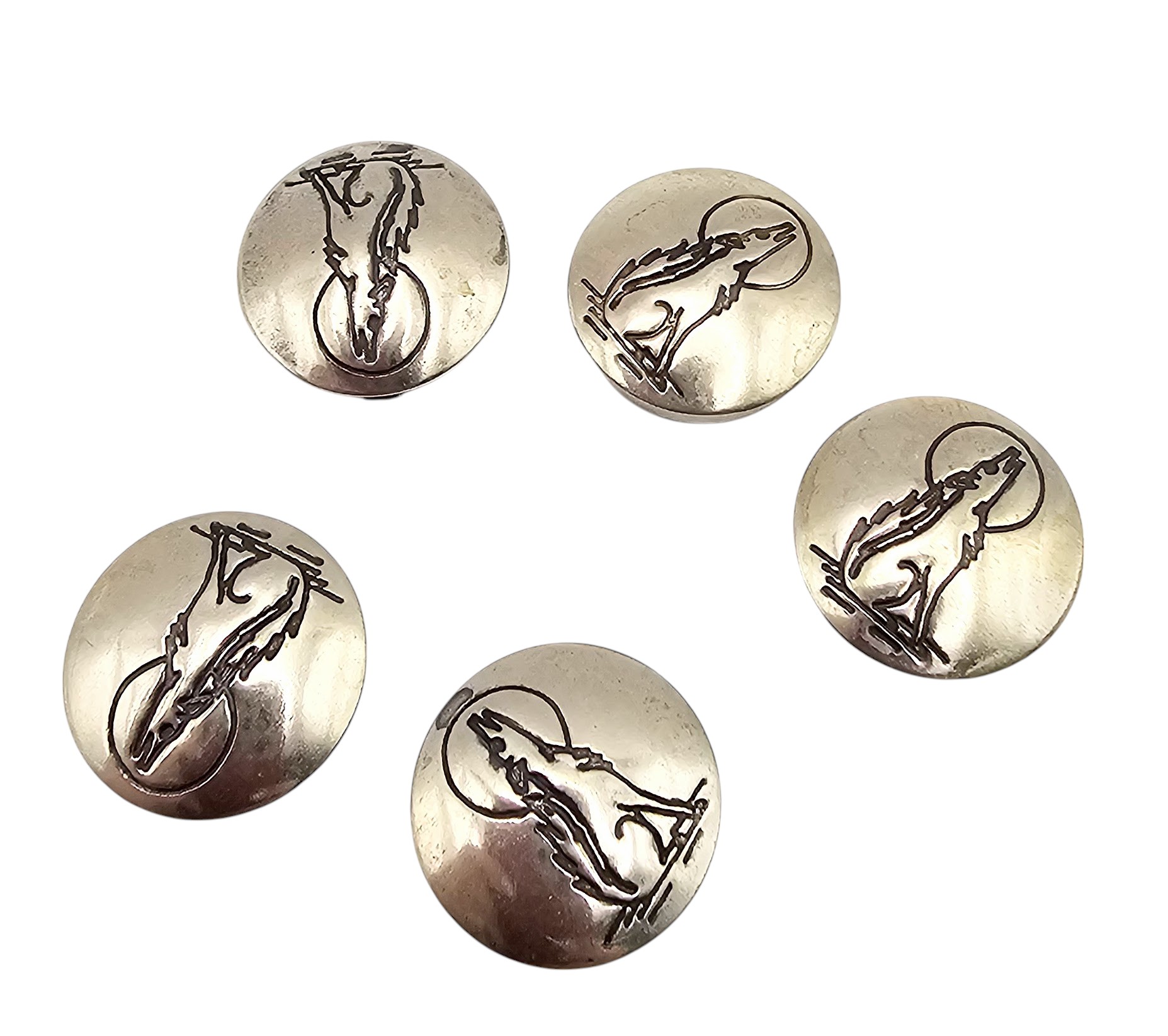 Navajo Sterling Silver Coyote Howling at the Moon Button Covers Lot of 5 17.7 G