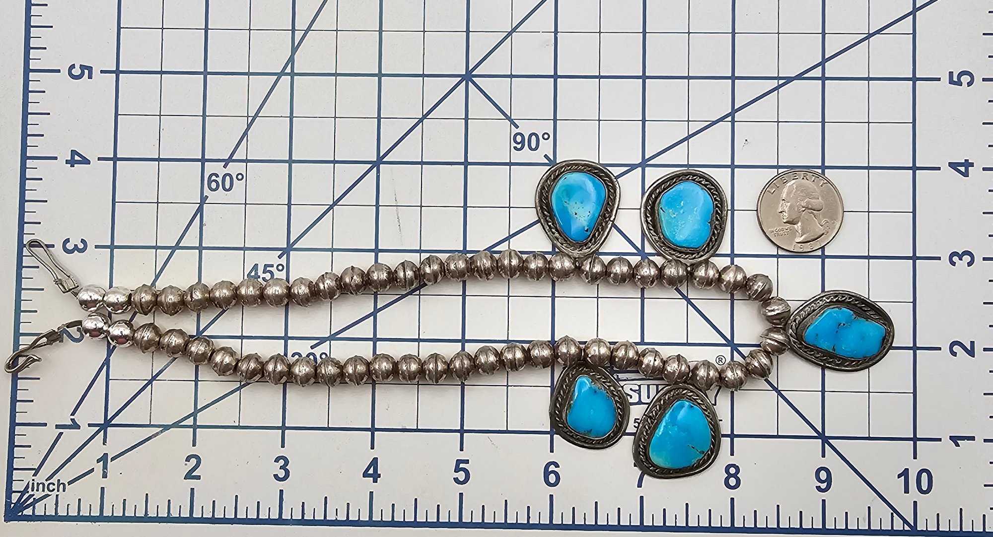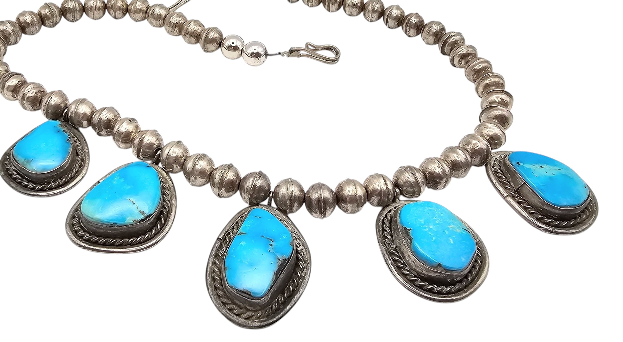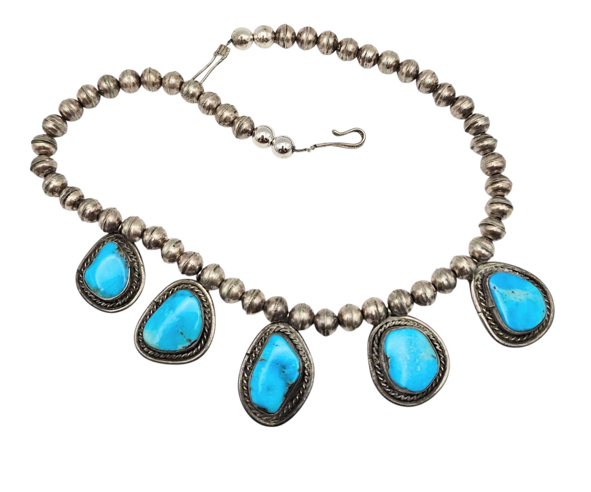 Navajo Turquoise Sterling Silver Handmade Station Necklace 53.2 G