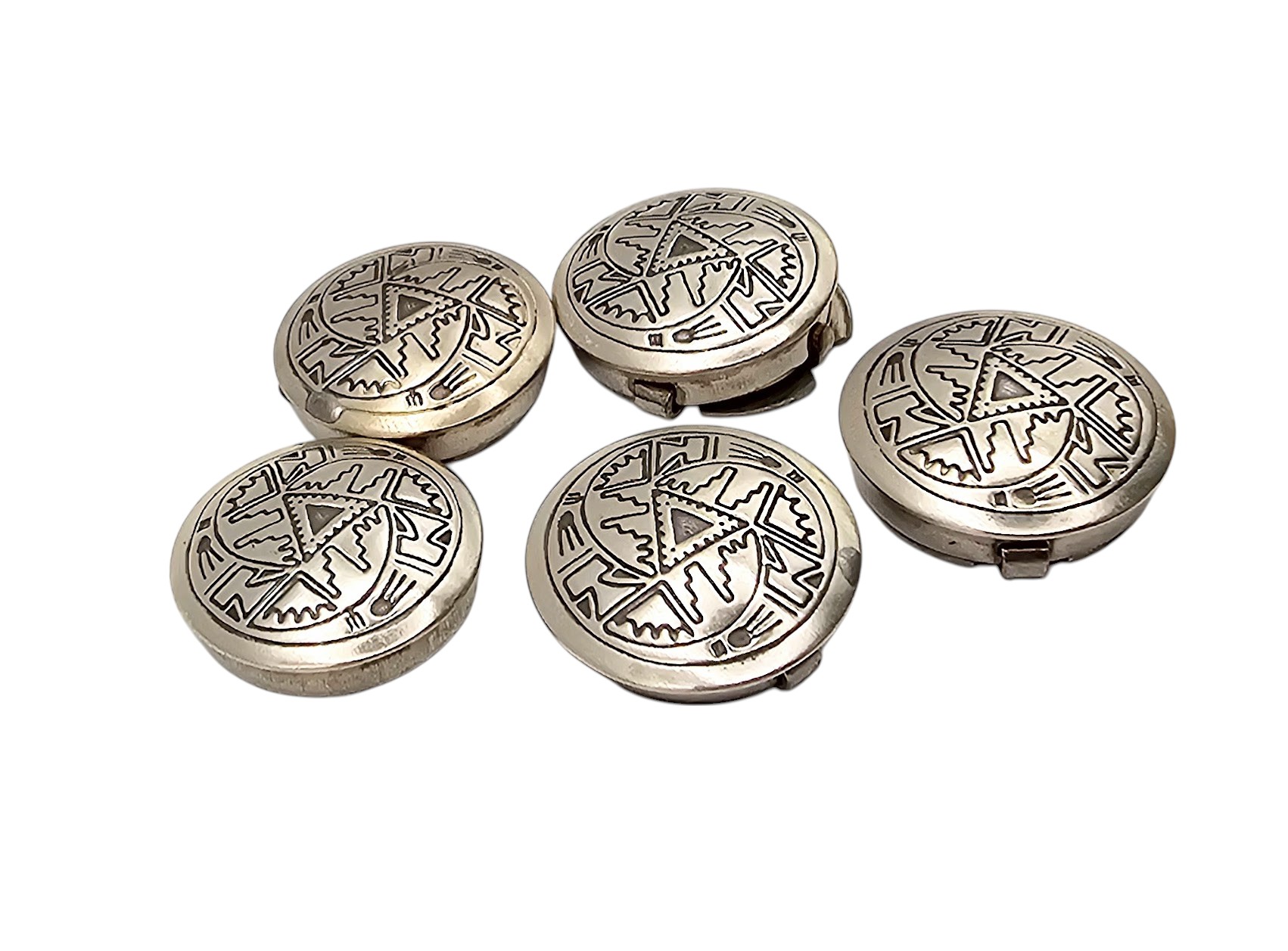 Native Sterling Silver Stamp Work Button Covers Lot of 5 17.3 G
