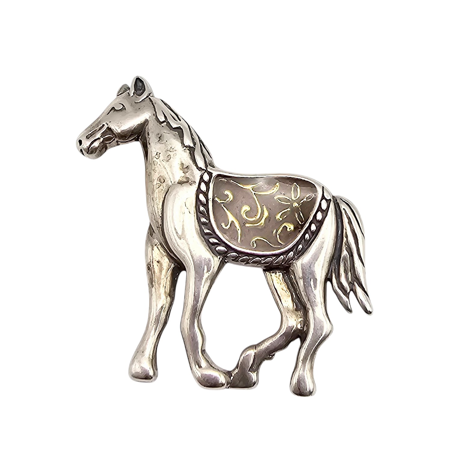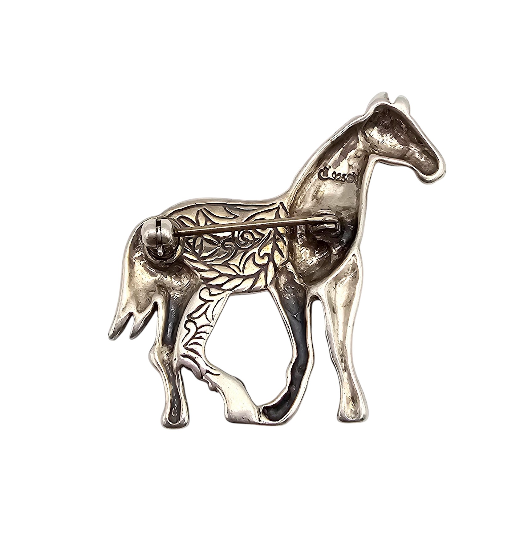 Carolyn Pollack Relios Enamel Sterling Silver Southwestern Horse Brooch 10.2 G