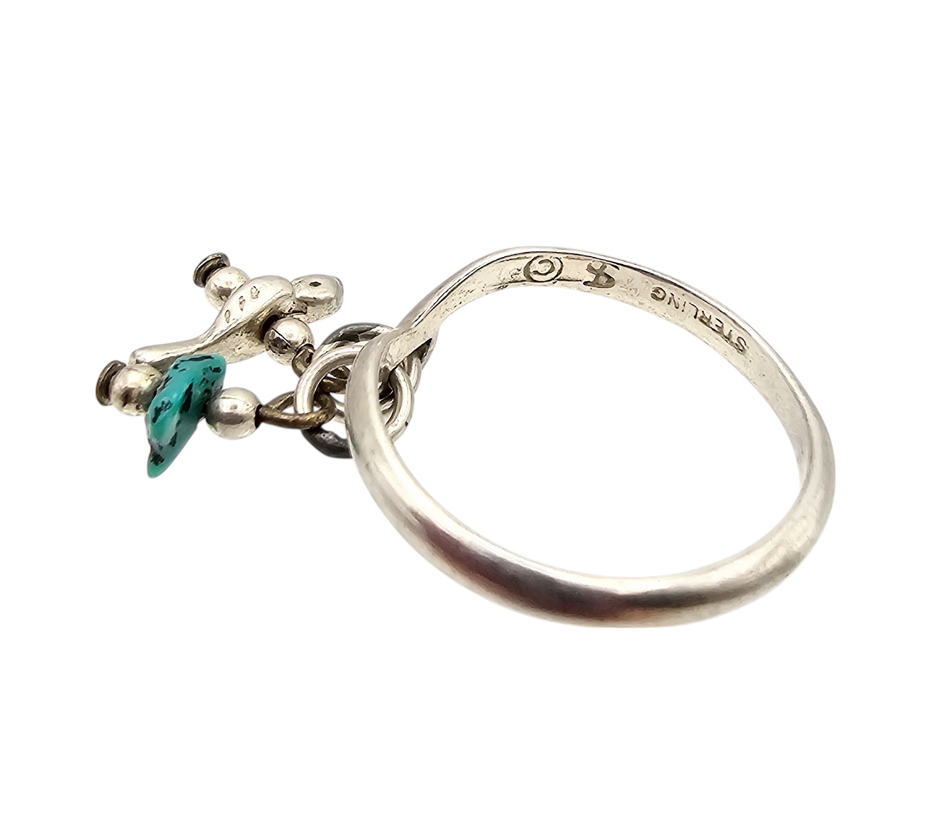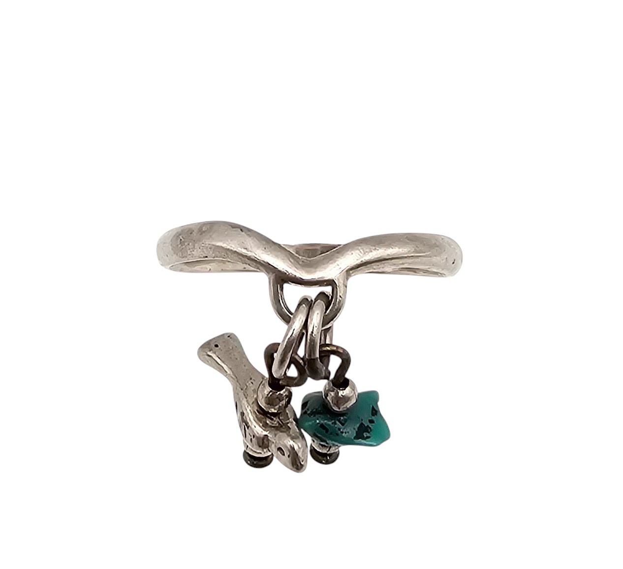 Shubes Manufacturing Turquoise Fetish Bird Dangle Ring Size 5.5 2 G