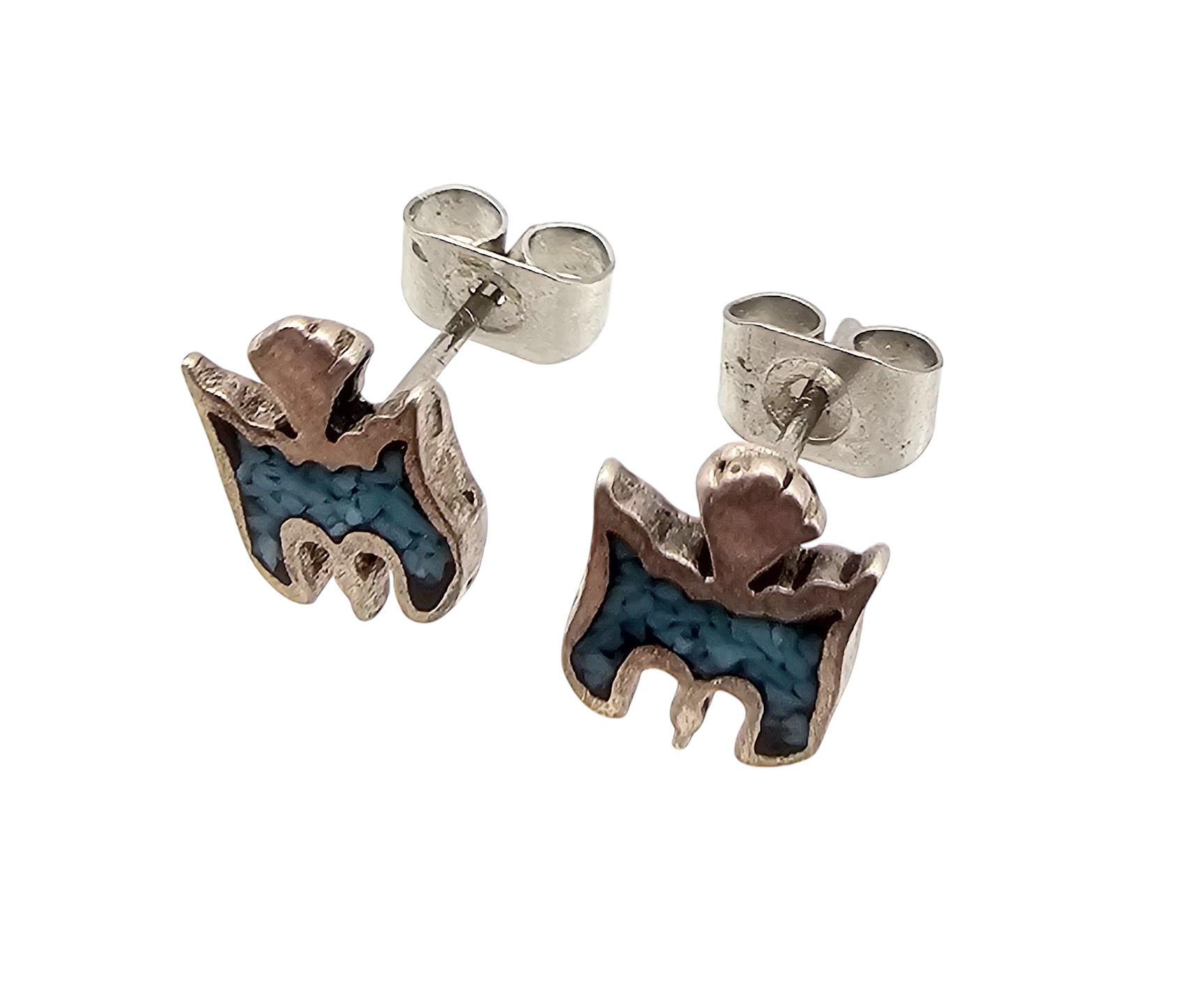 Navajo Crushed Turquoise Sterling Silver Thunderbird Earrings 1.1 G