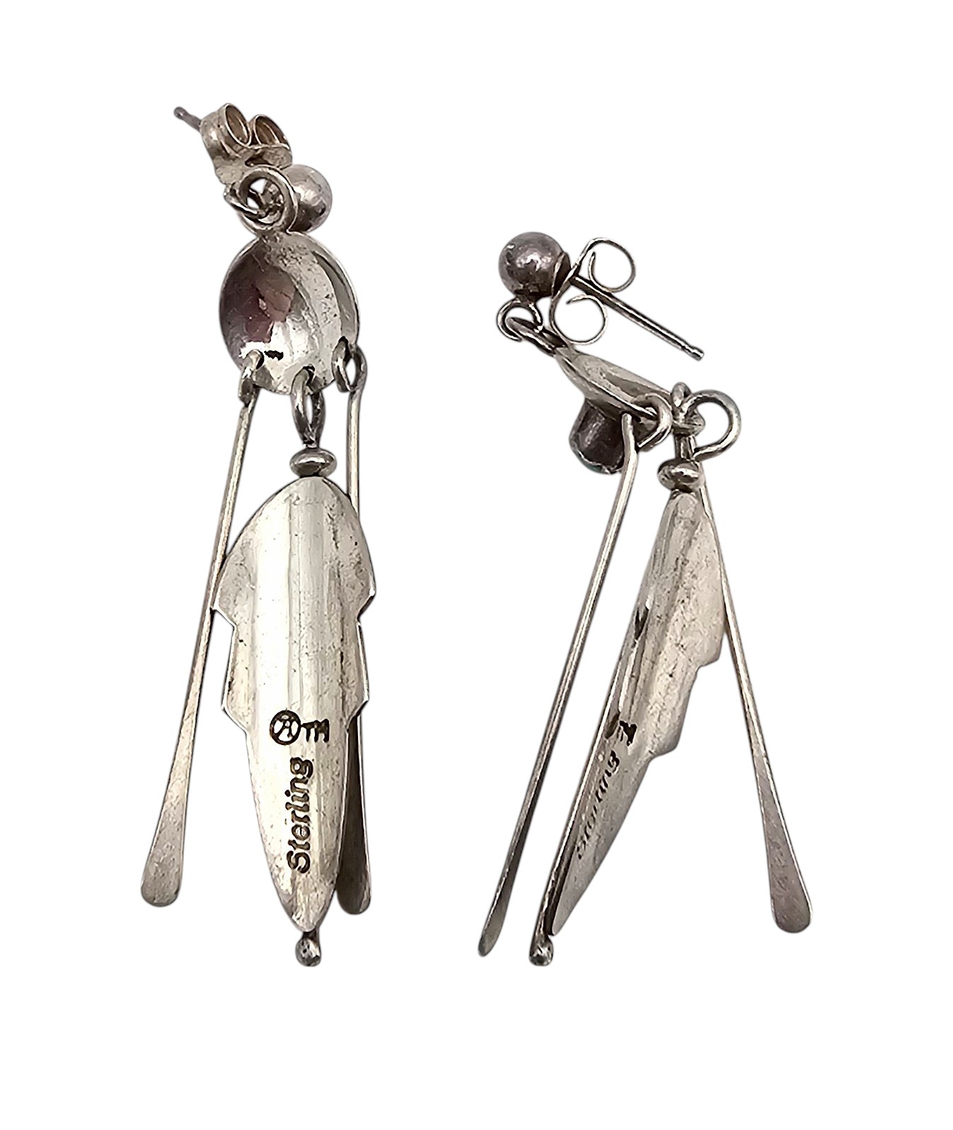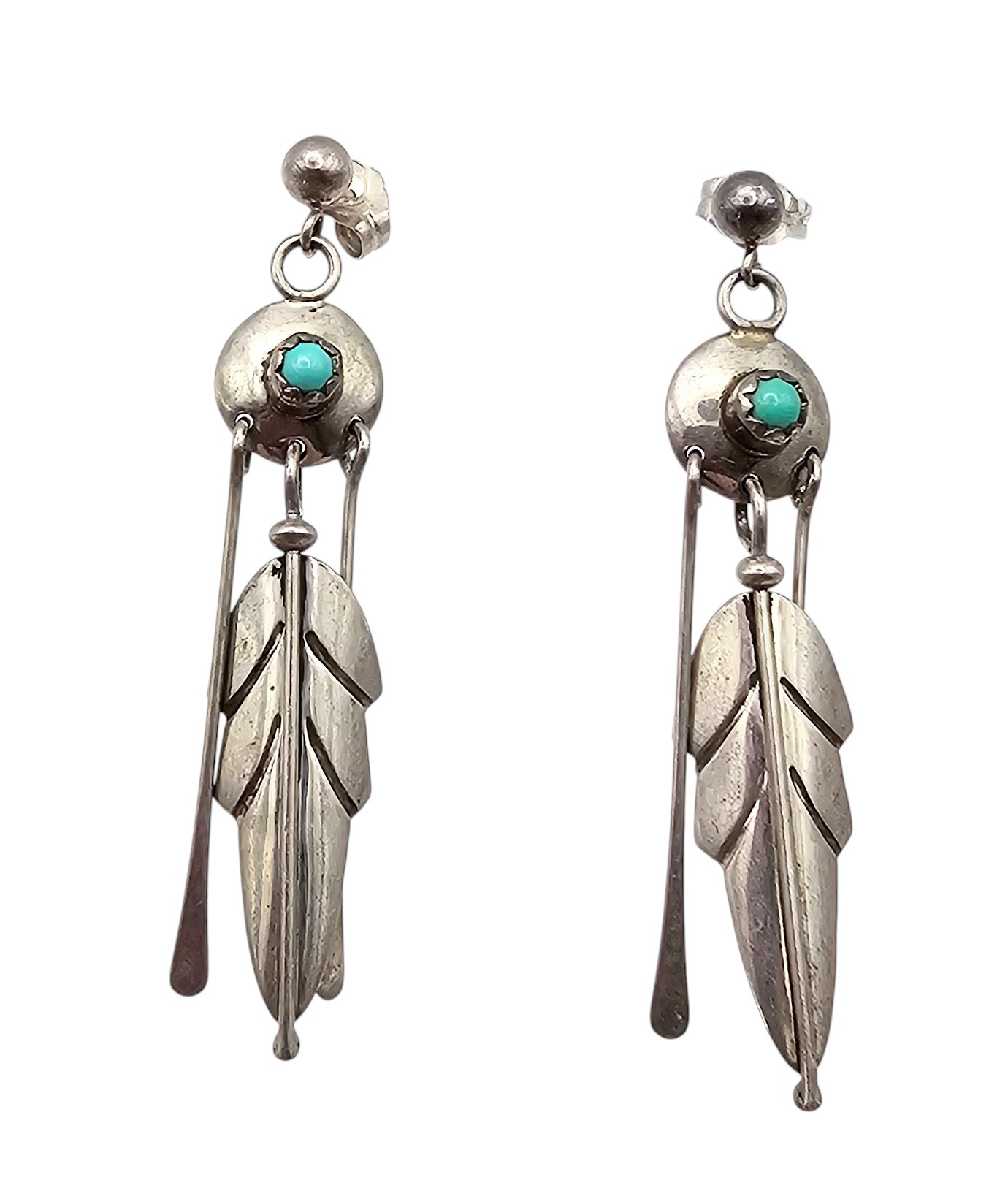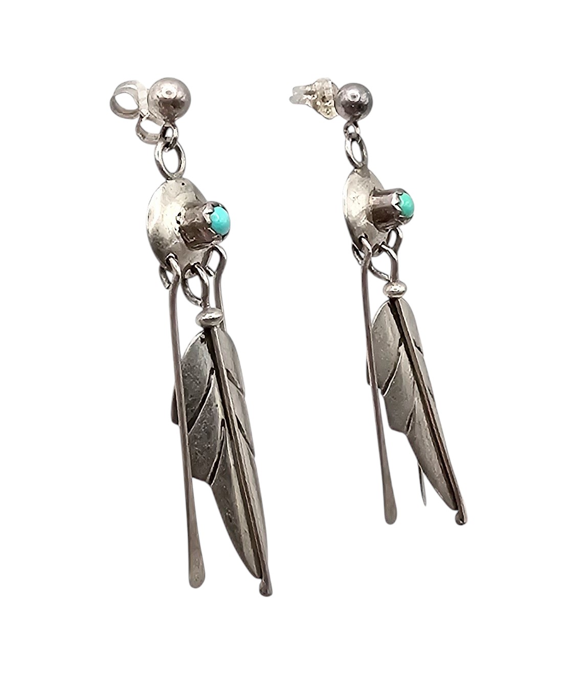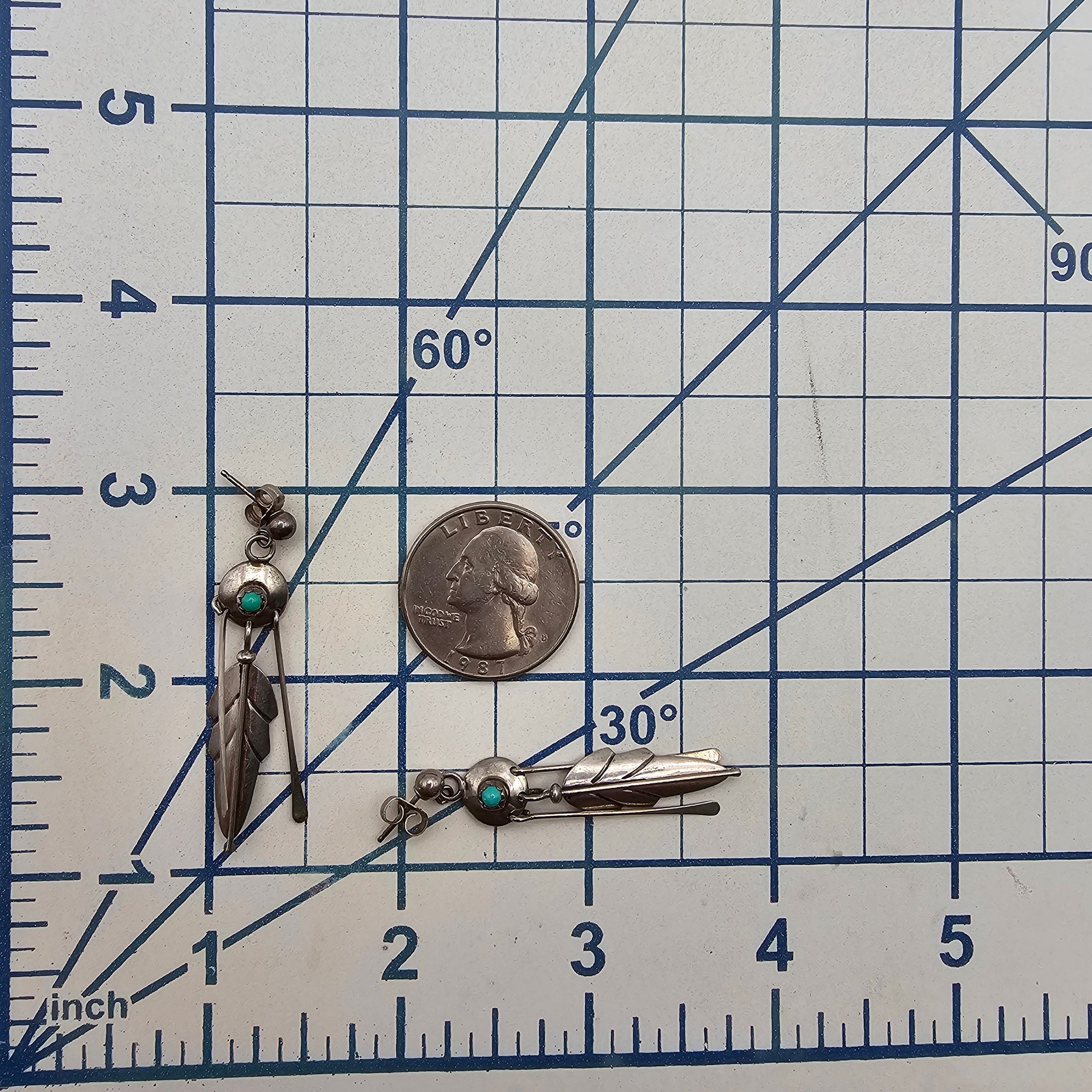 Signed A Southwestern Turquoise Sterling Silver Feather Dangle Earrings 3.9 G
