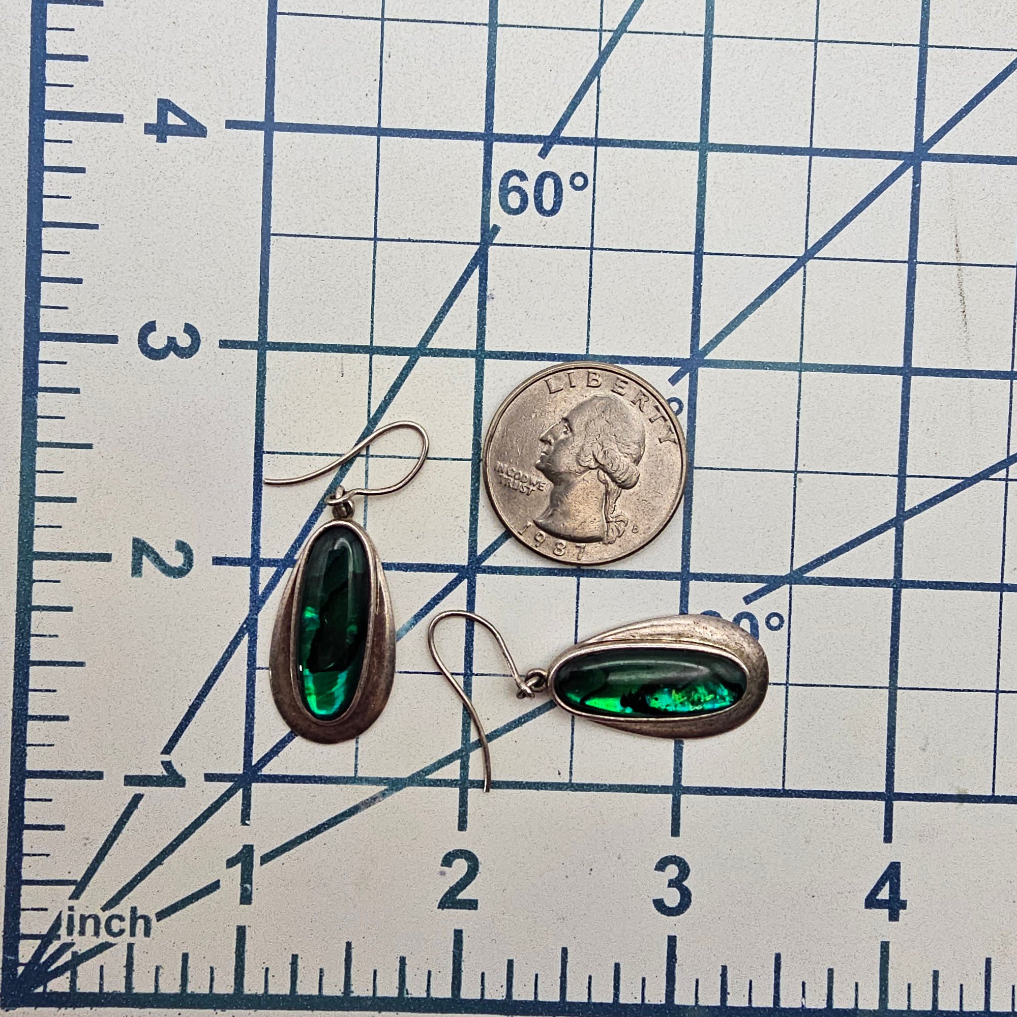 Southwestern Abalone Sterling Silver Dangle Earrings 6.7 G