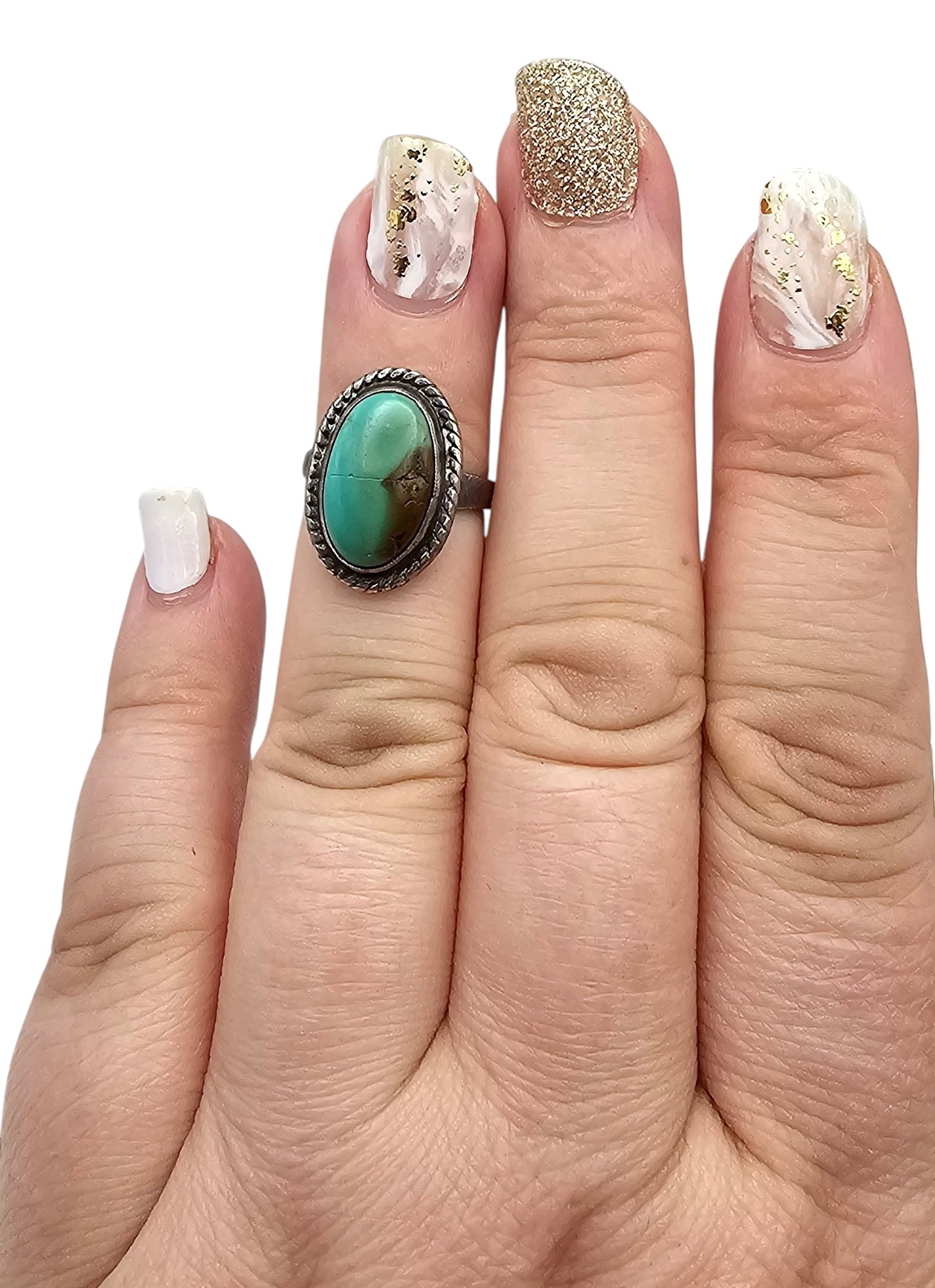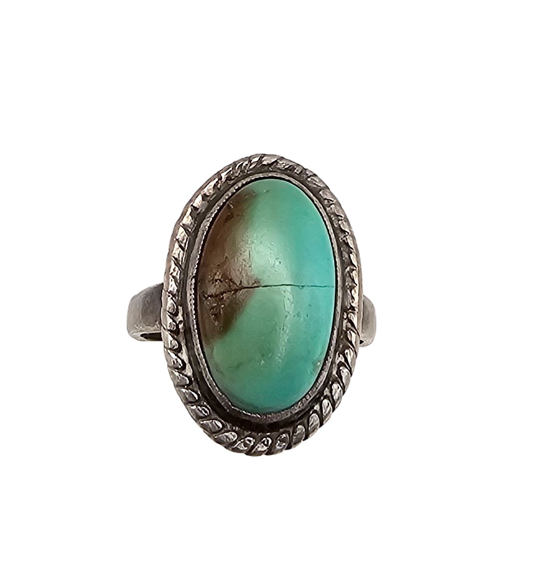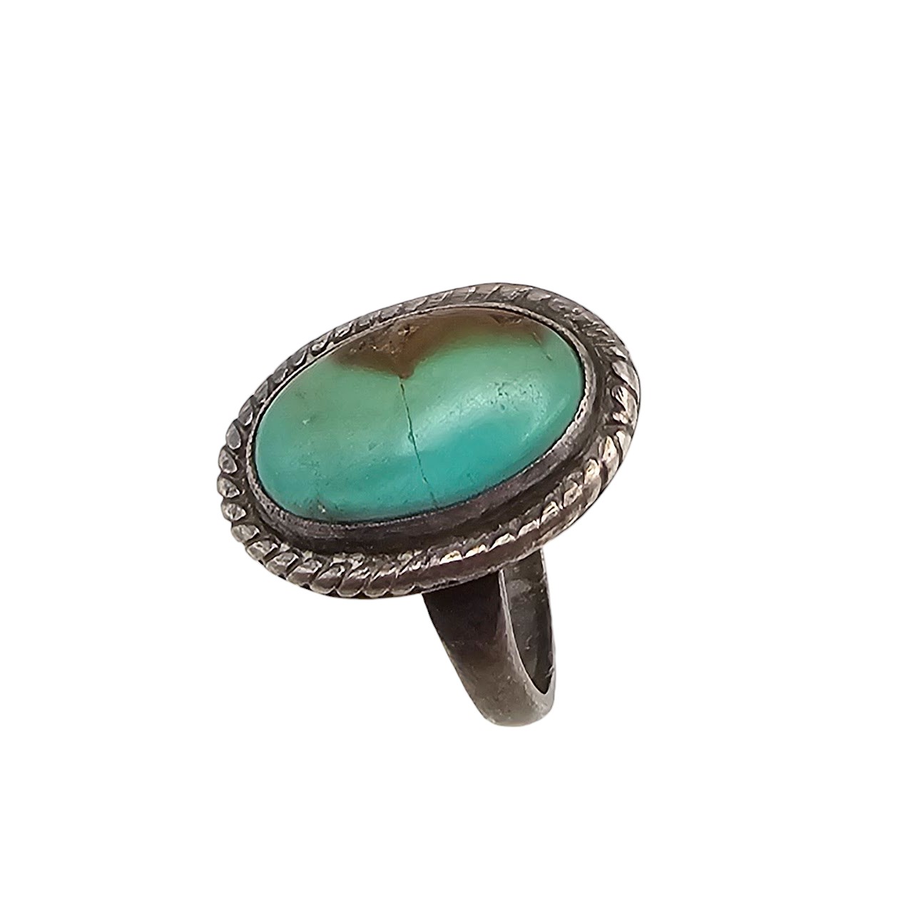 Navajo Turquoise Sterling Silver Ring Size 3.75 4.2 G, As-is cracked stone